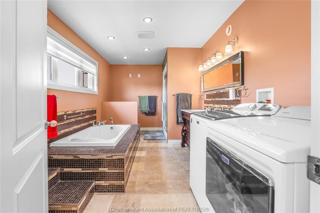 • Climate-controlled garage provides extra storage or project space.