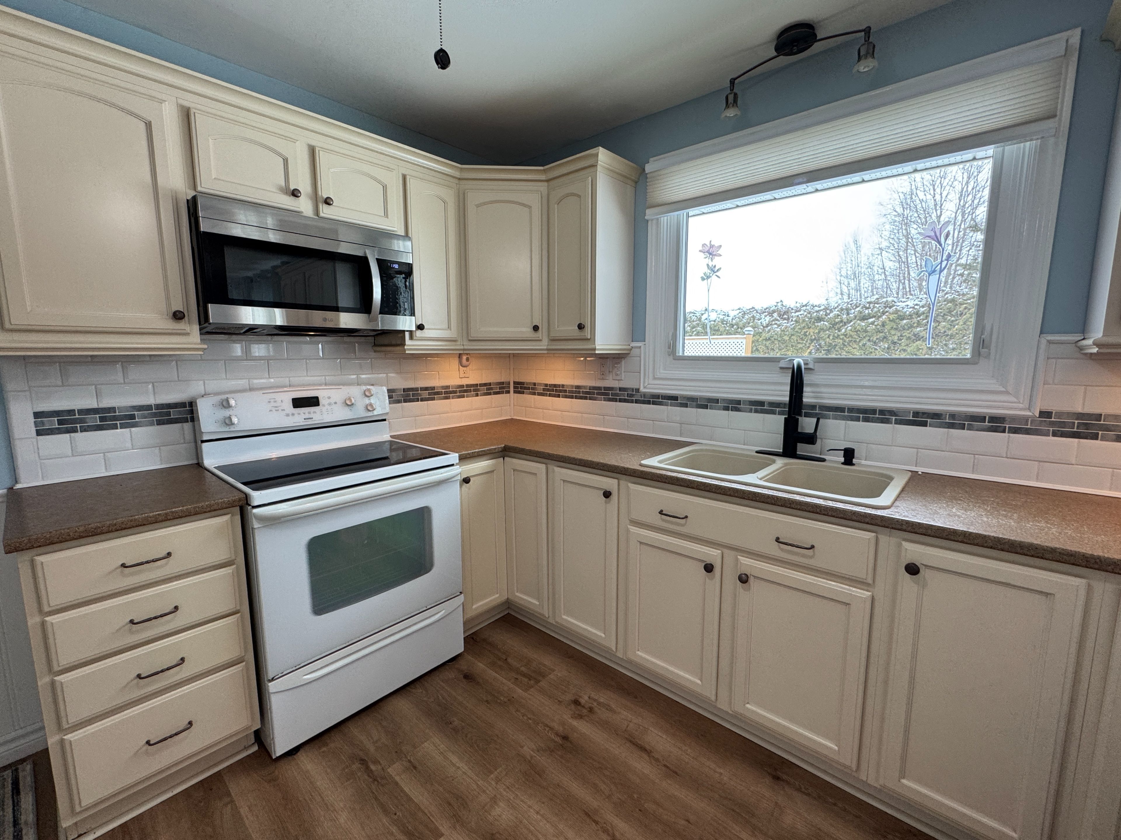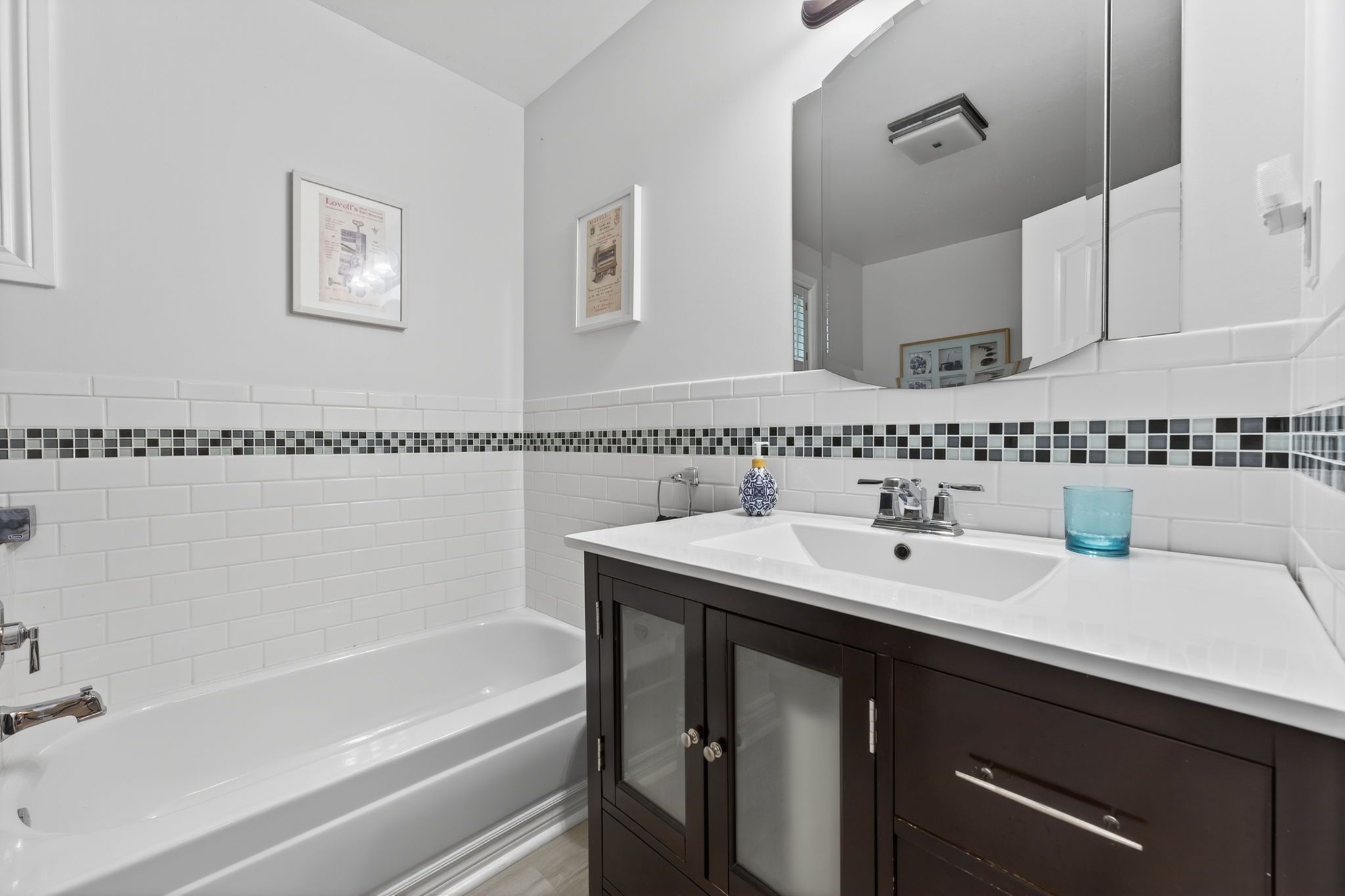 • Updated 5-piece bathroom with a relaxing soaker tub.