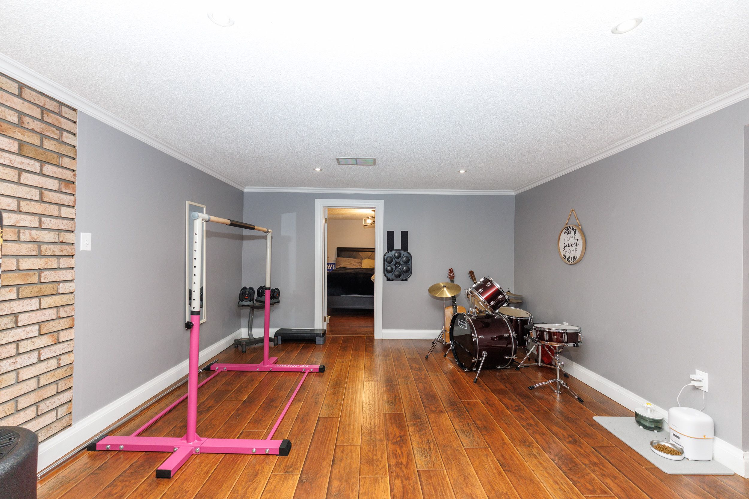 • Lower level includes family room with wood fireplace and a private bedroom.