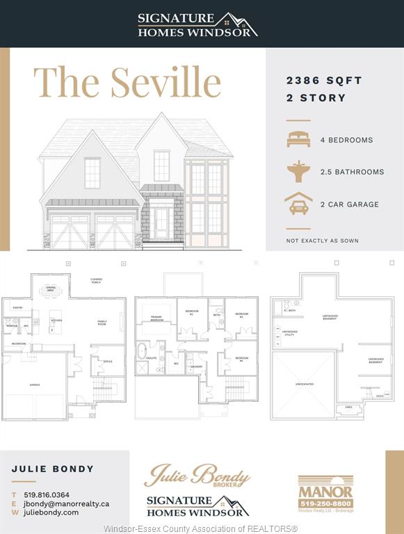Welcome to canard valley in mcgregor. We have one lot only and its a beauty! Backing onto the treed lot area signature homes windsor proudly presents our "seville model" . We have several other models available to choose from construction has not yet begun so you can design your home with us or check out all our models at www. Signaturehomeswindsor. Com this 2 sty design home features gourmet kitchen w/lrg centre island featuring granite/ stone counters thru-out and huge walk in kitchen pantry with cabintry and countertops. A beautiful dining area overlooking rear yard with view of conservation and spacious covered rear porch. Open concept family room with modern style fireplace. 4 upper level bedrooms. Main floor bedroom or flex room to be an office or extra rec room . Stunning master suite with tray ceiling, ensuite bath with his & her sinks with custom glass surround shower with freestanding gorgeous tub. Not exactly as shown photos/ floor plan previous model l/s related to owner. Hst rebate for april 1, 2026 to march 31st 2027 is reflected in list price , all rebates are assigned to the builder.