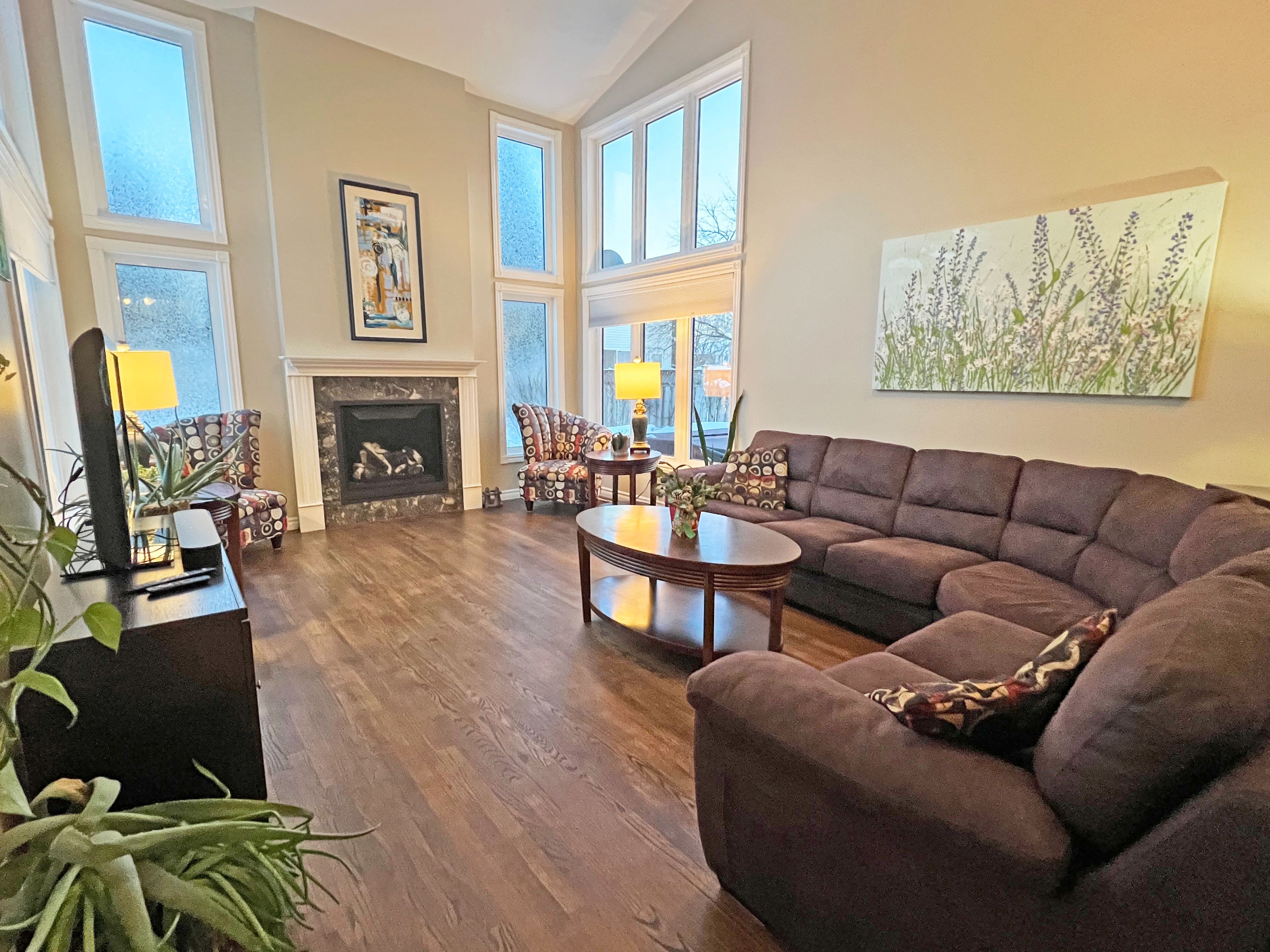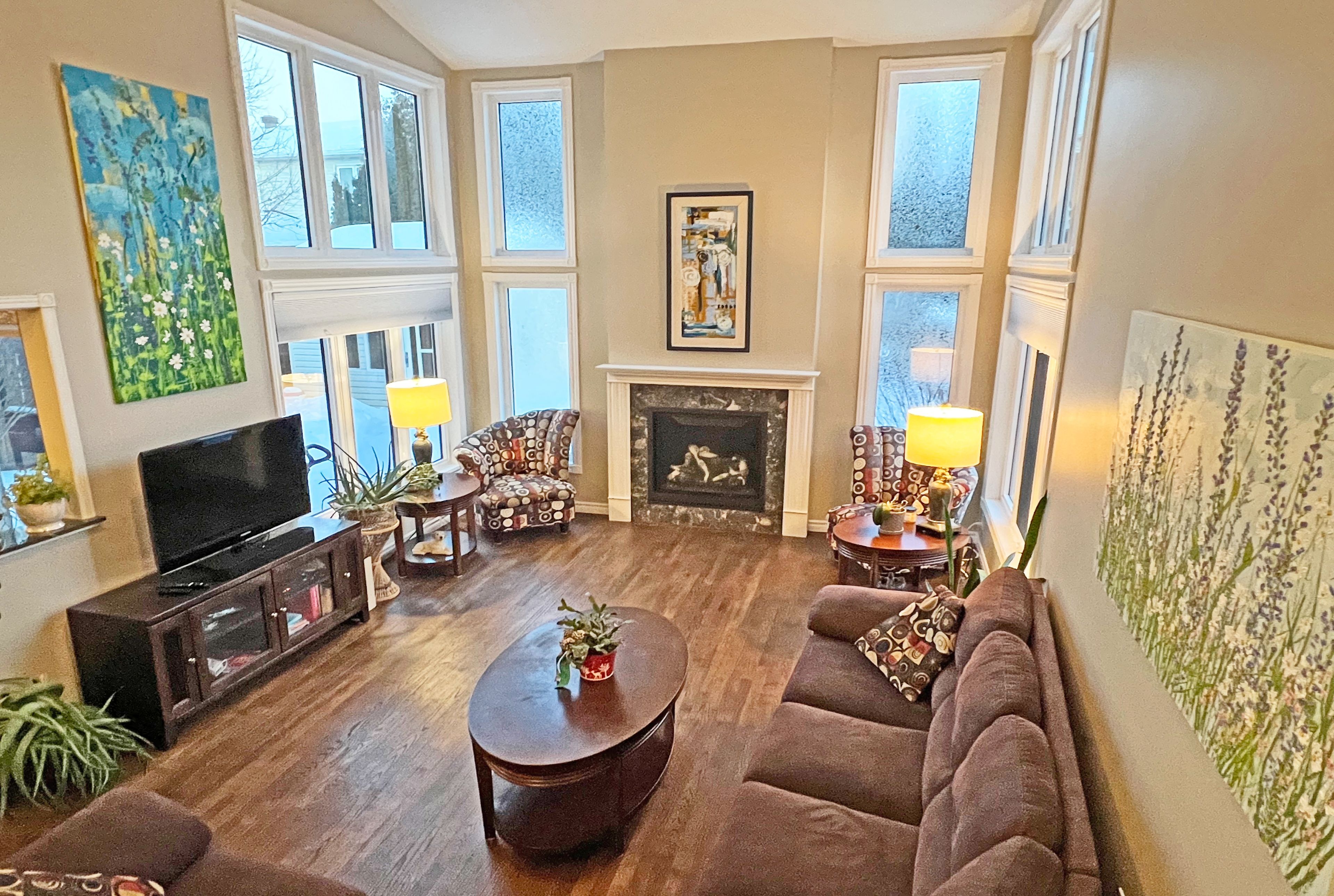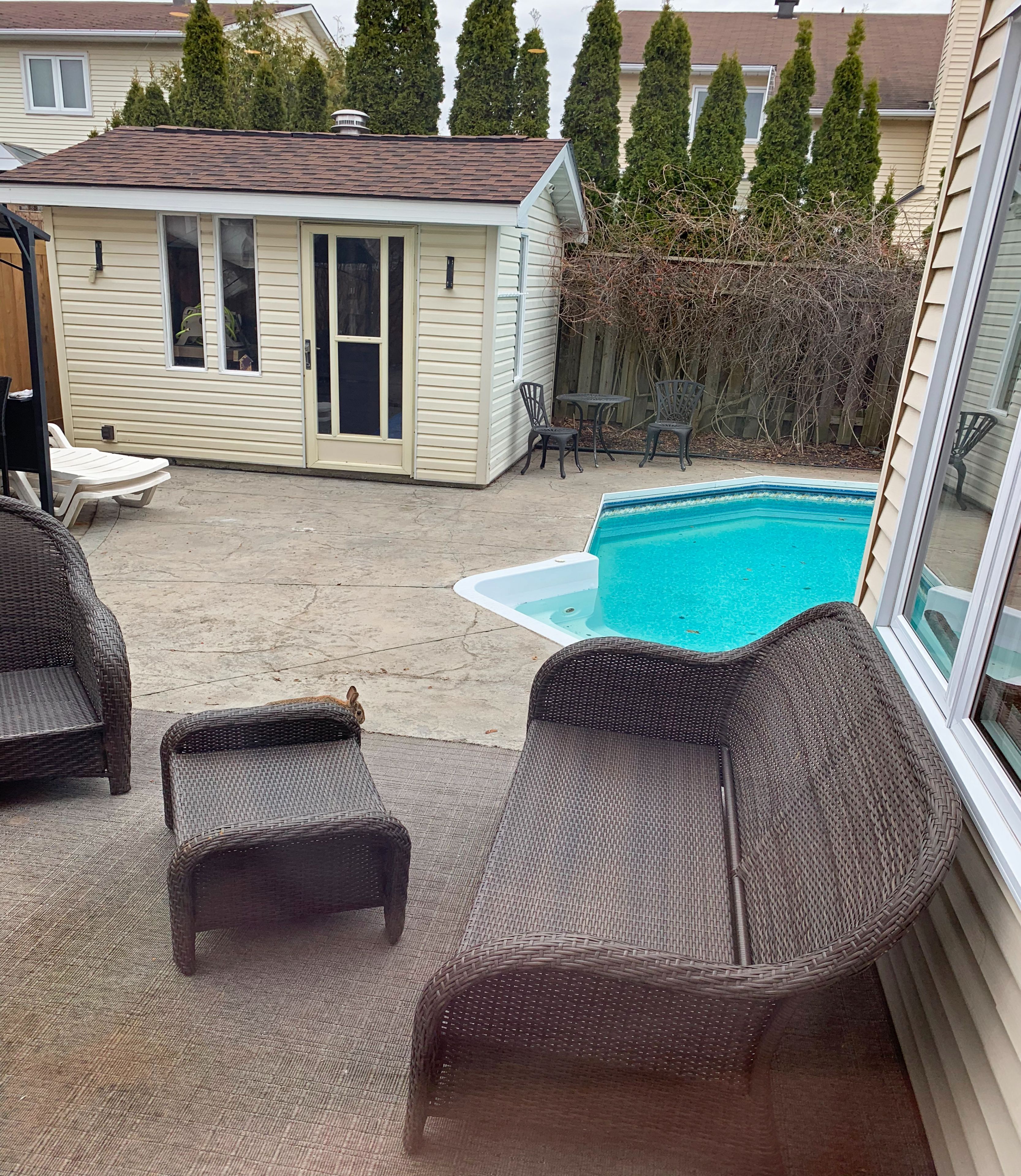 Welcome to this simply elegant and pristine home located in the heart of the sought-after fallingbrook neighbourhood in orleans. Close to excellent schools, bus transit, hwy 174, and shopping. This popular coscan cranston model showcases true pride of ownership and has been beautifully renovated over the years. Step into the grand foyer featuring a retiled bi-colour entrance (2020). Immediately striking is the unique winding staircase, centrally positioned, with mixed metal and wood balusters on both sides-an impressive architectural focal point. To the right, the formal living/piano room is painted in a bold, vibrant red with a large bay window and ample space for entertaining. To the left, elegant french-doors open into a spacious formal dining room complete with pot lights and a statement light fixture. The kitchen features oak cabinetry with under-cabinet lighting, ceramic granite backsplash, and coordinating granite countertops. All kitchen appliances were replaced in 2020. At the rear of the home, enjoy the stunning two-story family room highlighted by a new gas fireplace (2020), a modern remote-controlled light/ceiling fan, and four large windows fitted with new blinds (2024). The main floor laundry has also been renovated and includes a new washer and dryer (february 2025). Upstairs, the spacious primary bedroom offers an ensuite bathroom and a california-style walk-in closet with built-in drawers and shelving. Three additional generous bedrooms and a full main bathroom complete the upper level. The basement provides a finished recreation room with a built-in bar, a crafting room that could also serve as a fifth bedroom, plus a large storage area and workshop. Relax and entertain in your private backyard oasis featuring an in-ground heated saltwater pool and a hot tub, surrounded by stamped concrete, lush ferns, and mature bushes-perfect for enjoying time with family and friends. A complete list of features & improvements are available upon request.