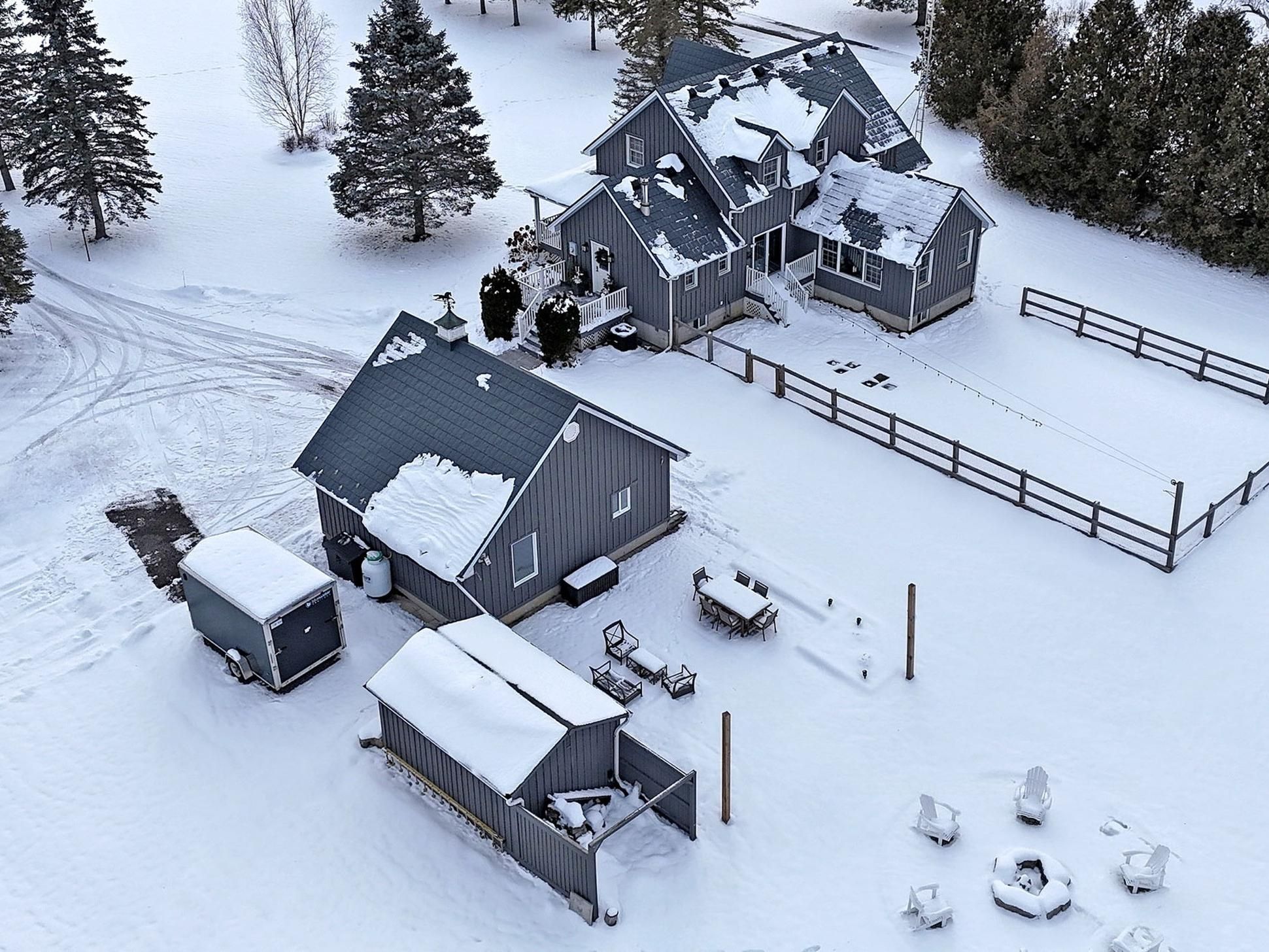 4+1 bedroom modern country home that sits on 2. 31 acres of beautifully landscaped grounds, surrounded by rolling meadows, woodlands, and the serene countryside of rural uxbridge. Boasting exceptional curb appeal, a long lamp-lit driveway leads to an elegant board and batten exterior, a welcoming front porch, and vibrant floral gardens during the warmer months. Inside, the luxury home features a shiplap-accented foyer which opens to a refined sunken family room with hardwood flooring, fireplace, and an 11' vaulted ceiling. The elegant spacious kitchen features stainless steel appliances, granite countertops, a mosaic stone backsplash, under-cabinet lighting, a walk-in pantry, and a breakfast area with backyard access. A well-appointed mudroom provides a side entrance and direct access to the finished basement, which includes a recreation area with dry bar, fifth bedroom, laundry, and abundant storage. The main floor primary suite offers a walk-in closet and a 3-piece ensuite with a marble-topped vanity and heated floors, while the second floor features three generous bedrooms and a 4-piece main bathroom with a stone sink. Additional highlights include a heated 600sqft detached garage, a covered stone patio, fire pit surrounded by interlock stone, fenced yard, and garden shed. Conveniently located just a short drive from a local cider brewery, bison farm, fresh farm produce, and the town of uxbridge for everyday essentials. This home seamlessly blends elegance and lifestyle, offering refined living amongst the serenity of the countryside.
