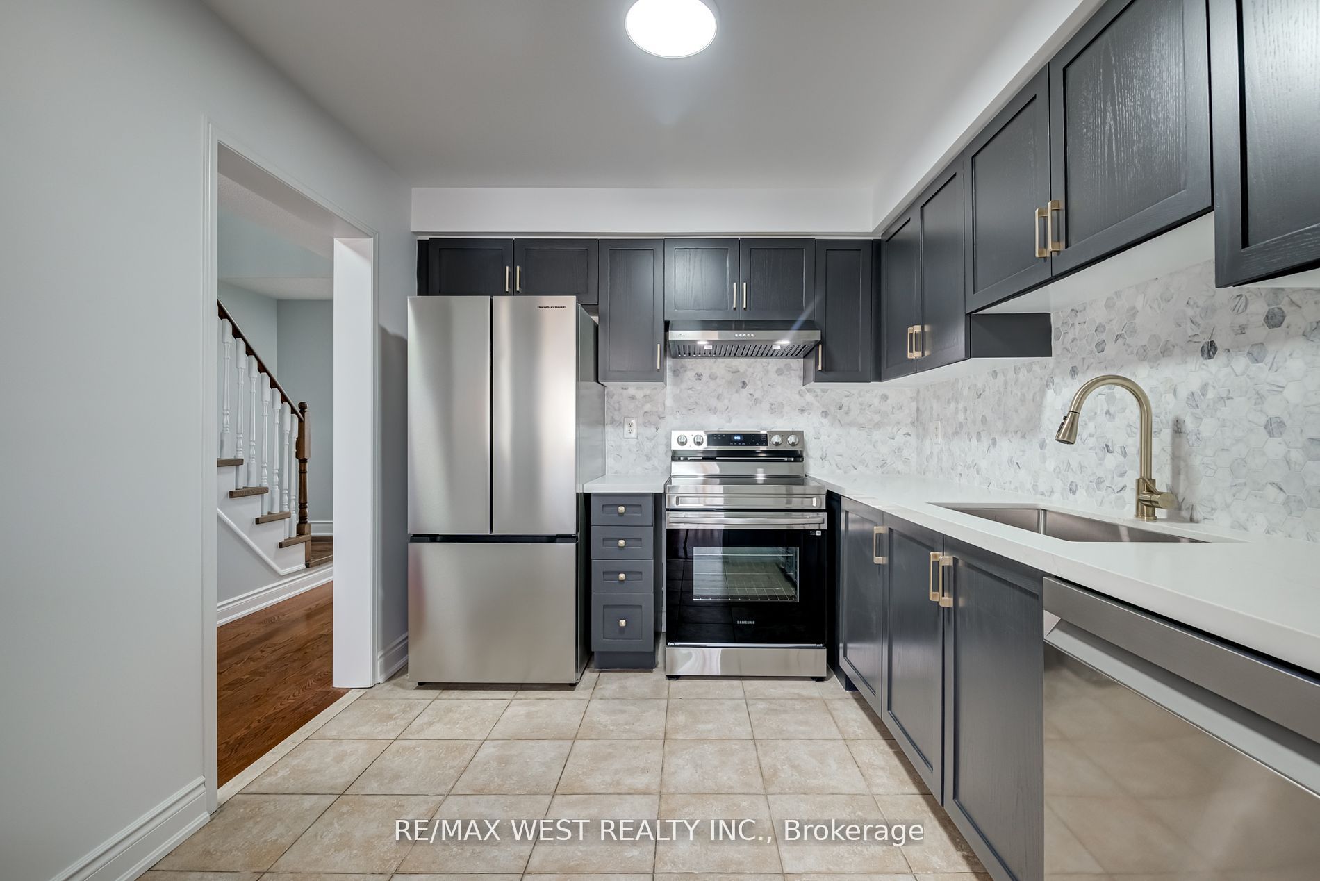 Welcome to this beautiful executive home located in the highly sought-after meadowvale village community! Enjoy a fantastic location close to parks, schools, conservation areas, and major highways 401 & 407, offering both convenience and a family-friendly lifestyle. This home showcases numerous upgrades, including wooden staircase steps, almost-new flooring in all three bedrooms, and updated vanities in all three bathrooms. The modern kitchen features stainless steel appliances, quartz countertops, and a marble-tiled backsplash, perfect for everyday living and entertaining. The spacious primary bedroom offers a luxurious 5-piece ensuite and a generous walk-in closet. Enjoy led ceiling lighting throughout and a bright dining area that opens to a private deck overlooking lush green views. The finished basement is complete with pot lights and vinyl flooring - creating the perfect space for entertaining, relaxing or an office space. Located in a well-managed complex with ample visitor parking in a safe cul-de-sac setting, this home truly reflects pride of ownership. A wonderful place to call home for a happy family. Don't miss this opportunity-seeing is believing!