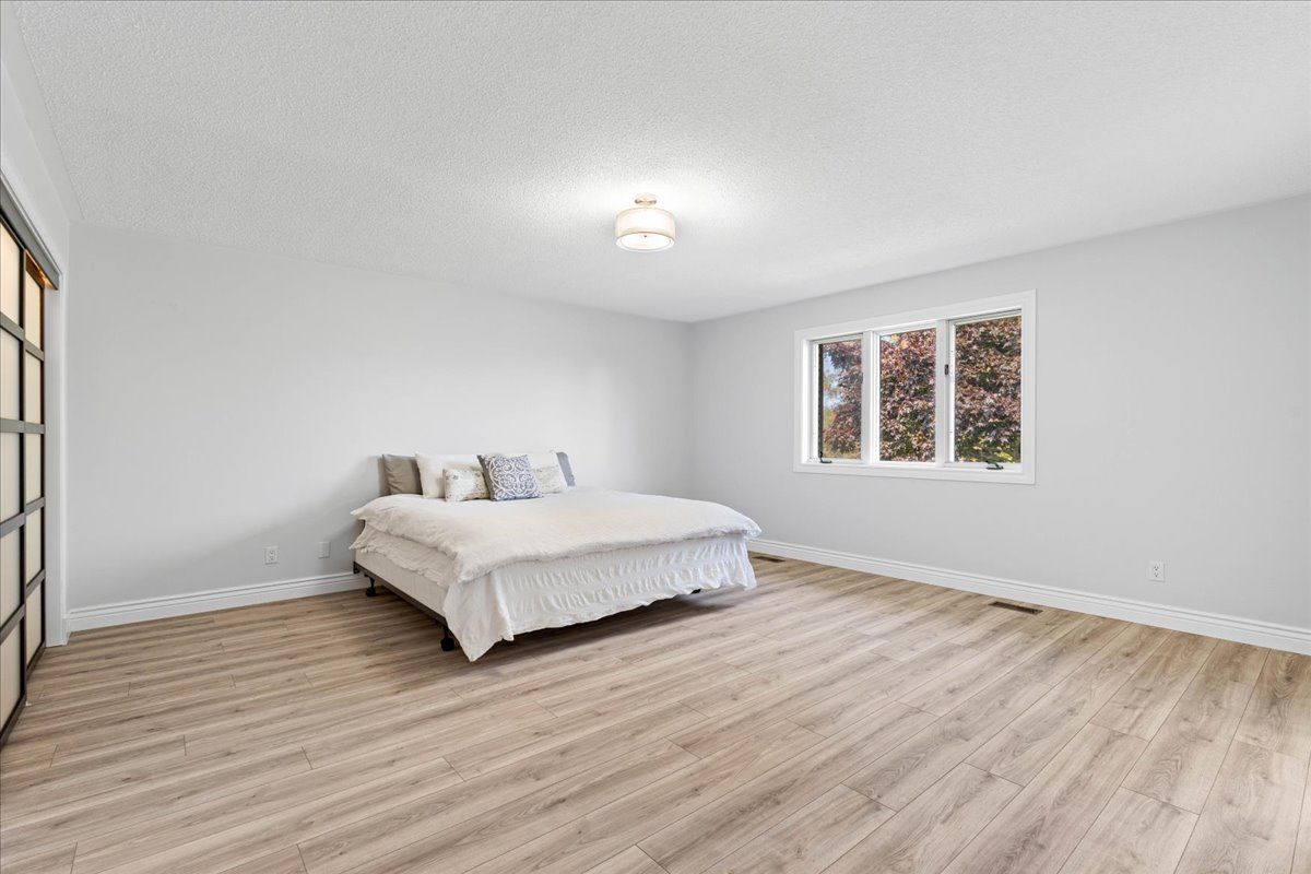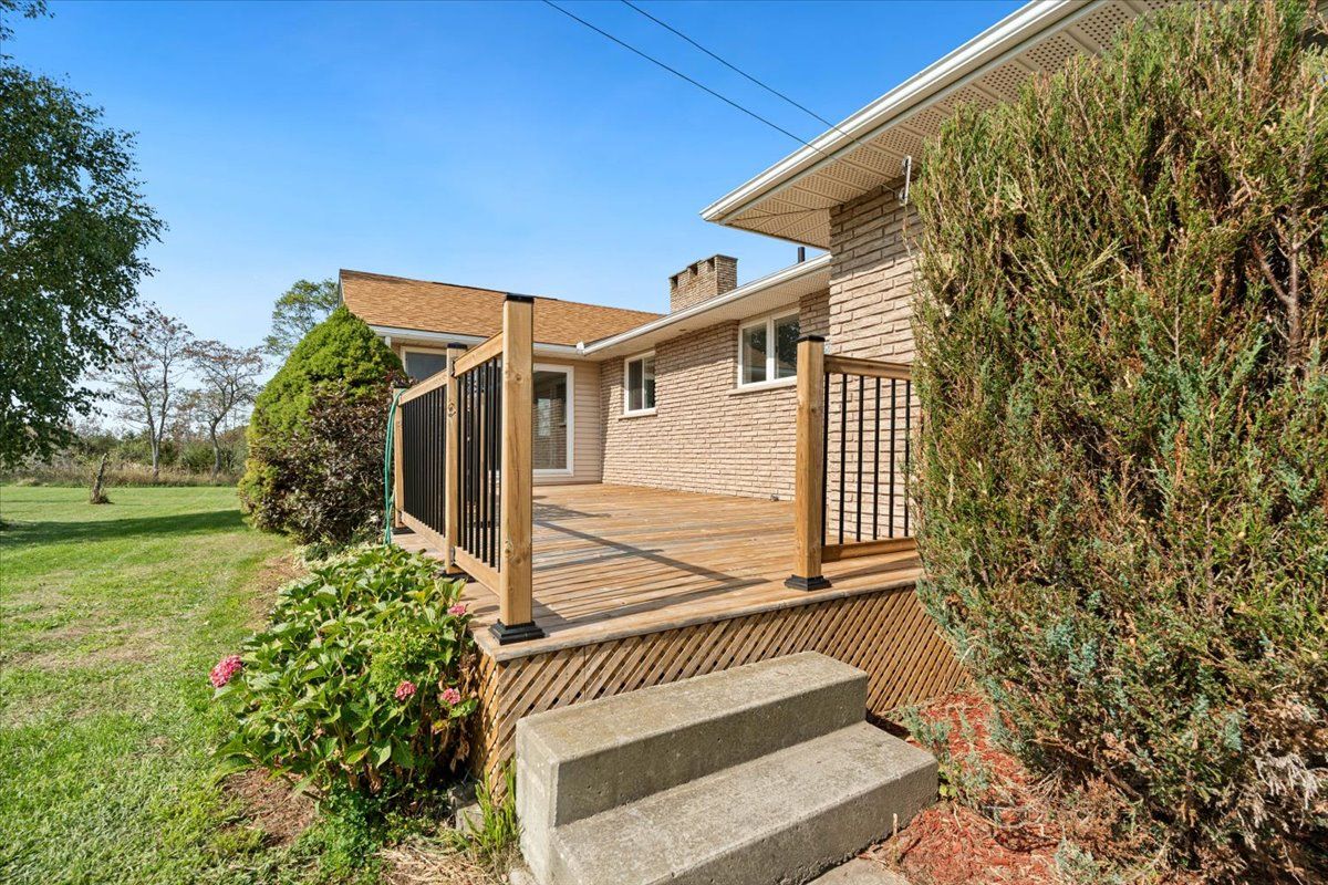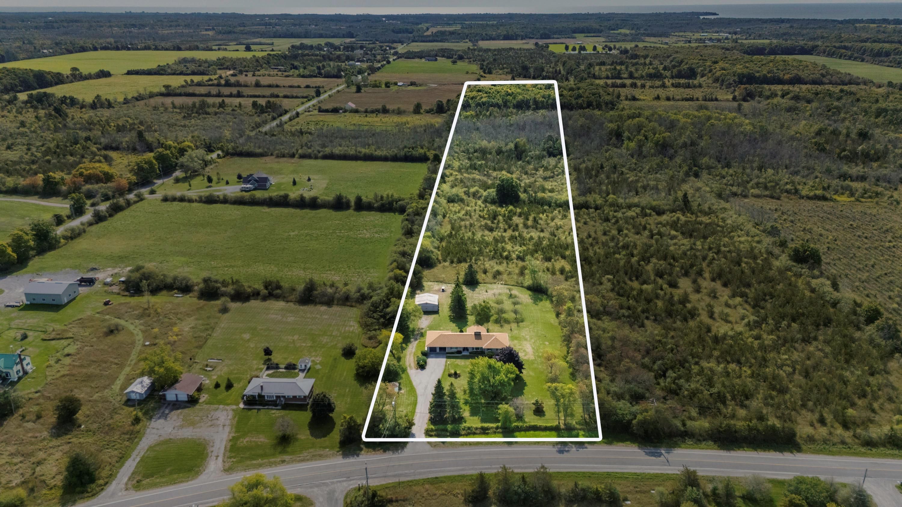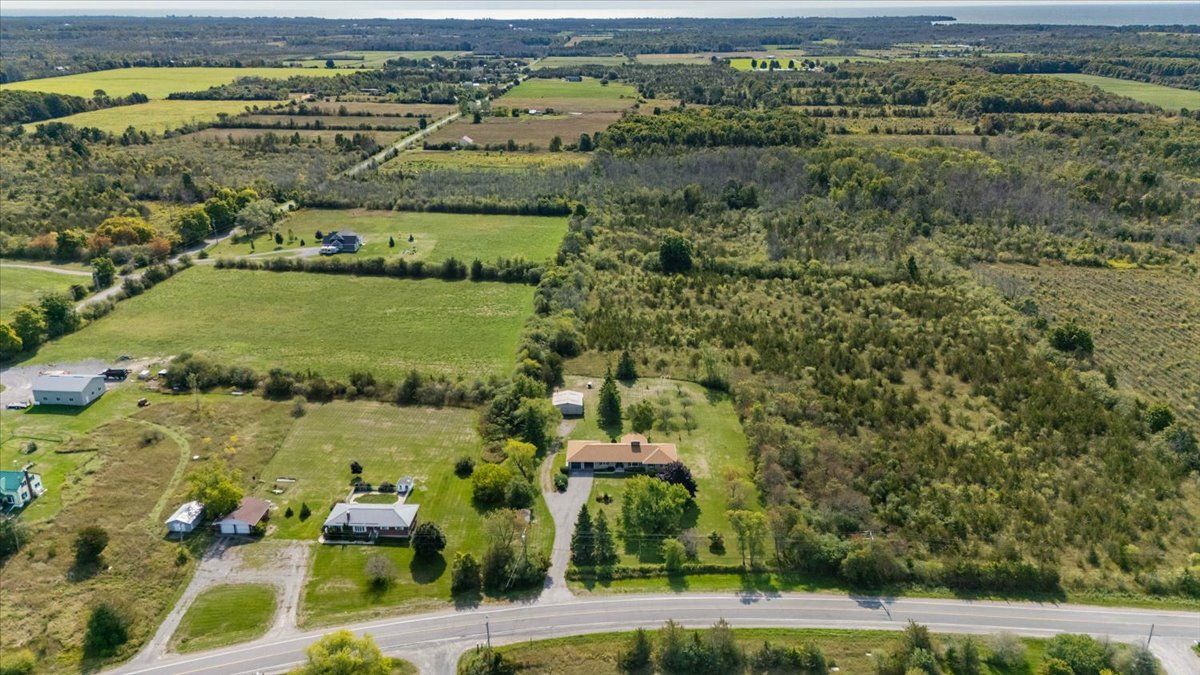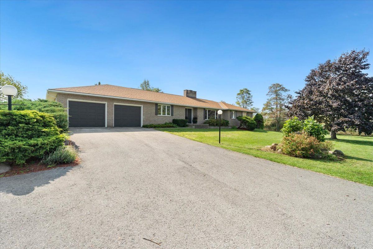 Welcome to your dream rural retreat! This expansive, fully renovated bungalow sits on almost 14 acres of scenic countryside. Offering the perfect blend of rural tranquility and contemporary comforts, you can enjoy the serenity of open landscapes while being just minutes from sandbanks, acclaimed wineries, and vibrant communities. The classic brick exterior is complemented by a welcoming front facade and garden areas. Set back nicely from the road, the property features various types of trees, including fruit bearing pear trees. An attached two-car garage provides secure parking and storage. Mature trees and thoughtful landscaping enhance the curb appeal and offer privacy from the road. A second, detached garage/workshop located behind the home offers an additional 30' x 30' space for hobbies, storage or work space. Step inside to discover a bright, open-concept living space, made for entertaining. The cozy 2-way fireplace anchors the main room and also the dining room, creating a warm atmosphere for gatherings year-round. The spacious kitchen features ample cabinetry, a generous island and all new appliances. The dining area flows seamlessly into a four-season sunroom that overlooks the nicely treed back yard. Sliding glass doors walk out onto the newly built deck with plenty of space to enjoy time outdoors. The large primary bedroom features a private ensuite bath. Three additional bedrooms offer plenty of room for family, plus another full 5 piece bathroom and a stylish powder room serves the main living area. The finished basement extends the living space, featuring a large recreation room, a games/workout space and a fifth bedroom. There's exciting potential to create a second residential unit, providing flexibility for multigenerational living or rental income. Experience the best of rural living without sacrificing convenience. Don't miss your chance to own this exceptional bungalow in one of ontario's most coveted regions.