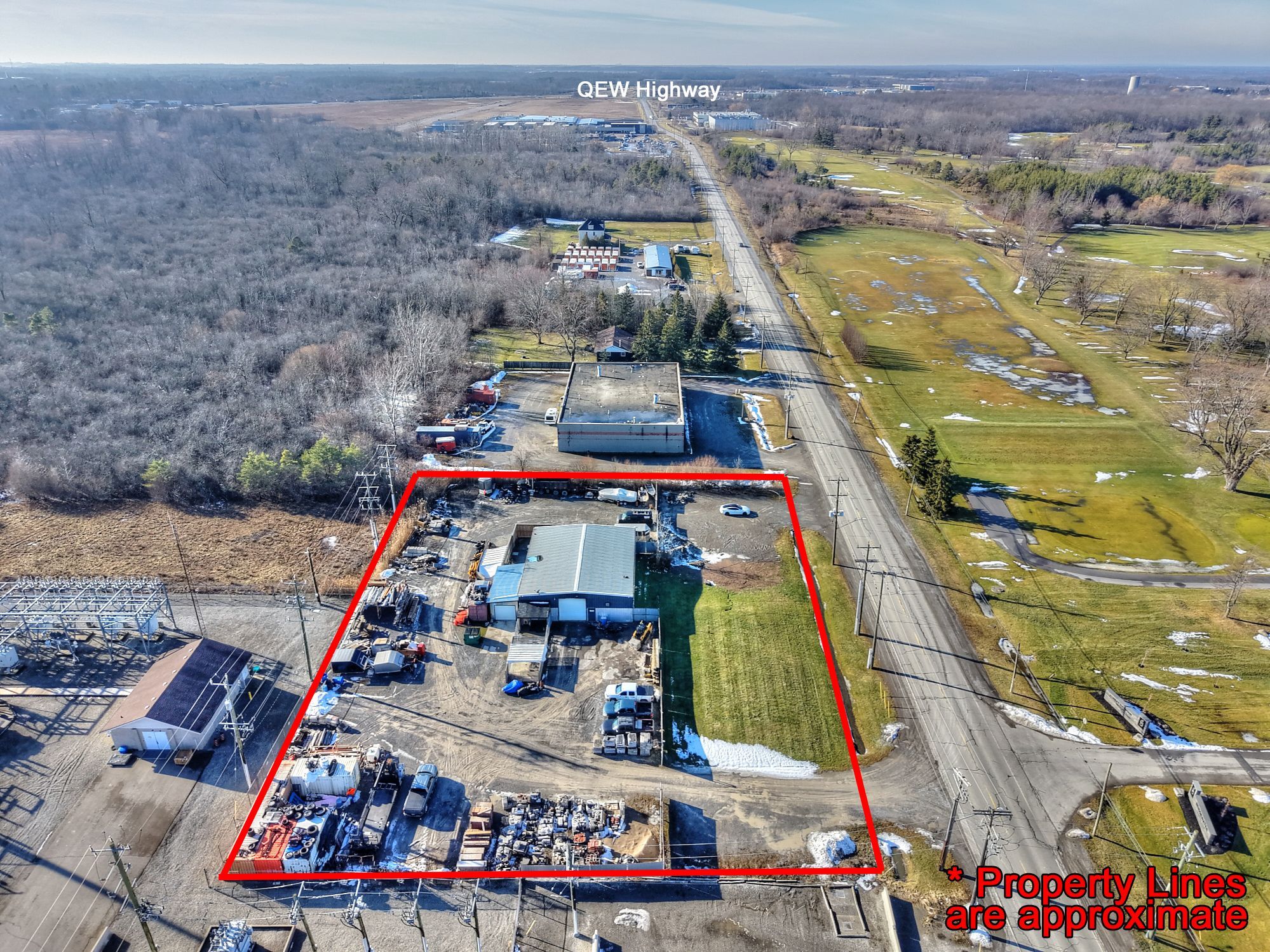 Situated on a 1. 179-acre lot with 266 feet of frontage, this versatile industrial-style property features a heated workshop spanning over 3,100 square feet. The building includes multiple bay doors for easy vehicle and equipment access, a dedicated office space, a storage room, and a convenient 2-piece bathroom-making it ideal for a variety of commercial or light industrial operations. The fully fenced yard offers abundant space for parking, outdoor storage, and equipment staging. A gated entry and security system provide added privacy and peace of mind. Zoned urban entertainment centre (uec), the property supports a wide range of commercial, industrial, and residential uses, offering future development potential or owner/operator flexibility. Prime location directly across from bridgewater country club and just minutes from the fort erie racetrack, niagara regional police station, and local amenities. Only 2 km to the qew highway access and truck stops-an ideal hub for regional logistics or trade-based business.