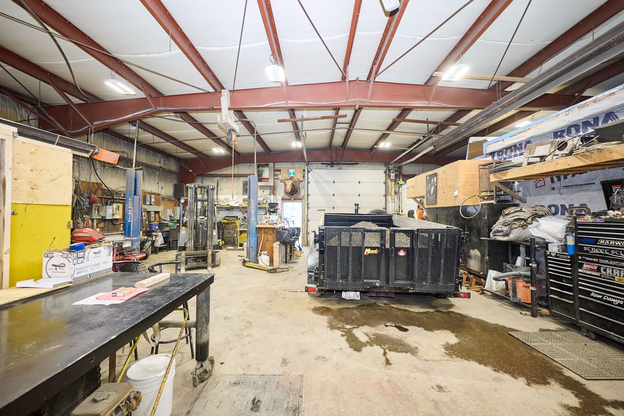• Heated workshop over 3,100 square feet with multiple bay doors.