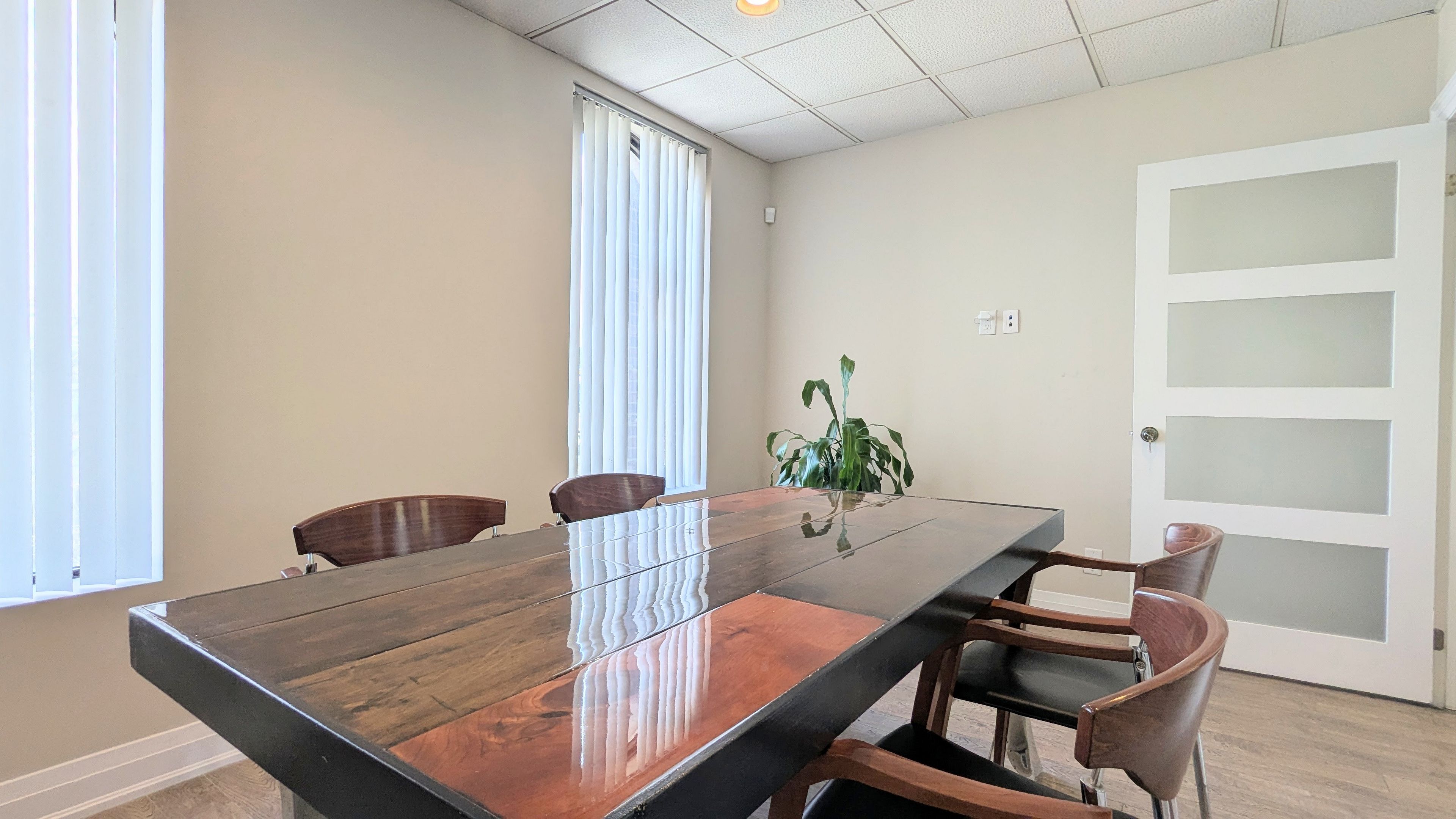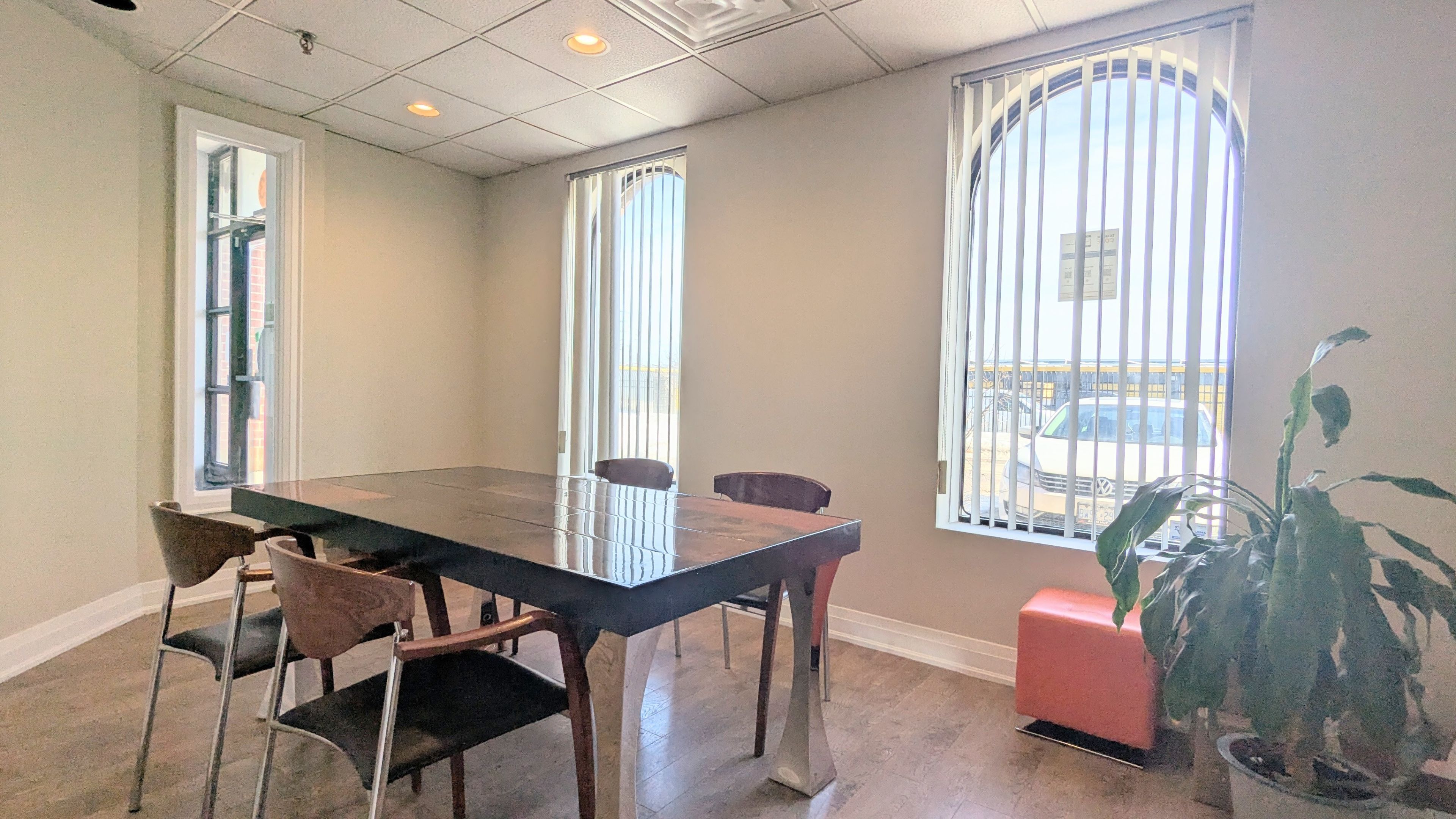 • Includes two private offices and a professional boardroom for meetings.