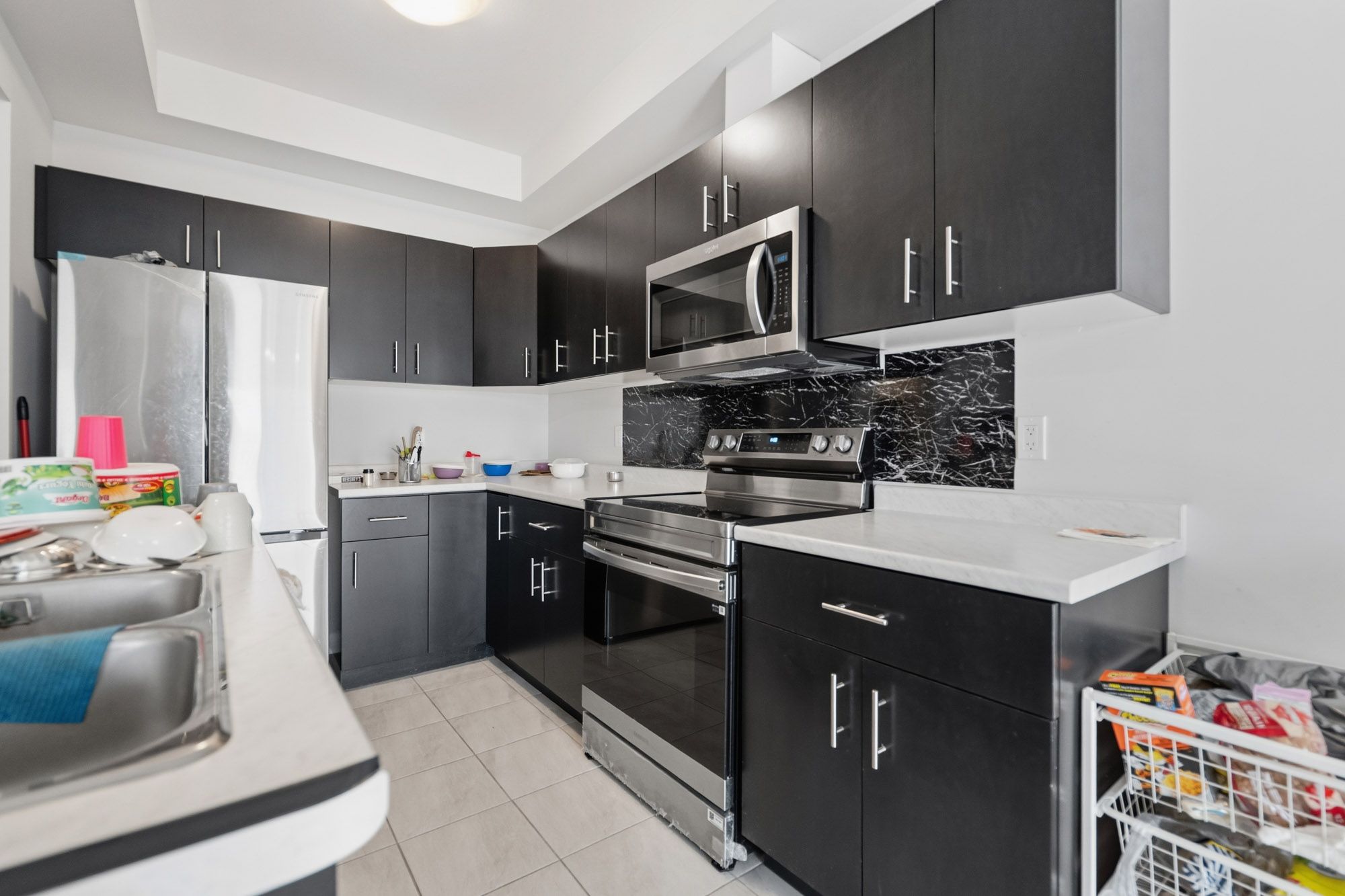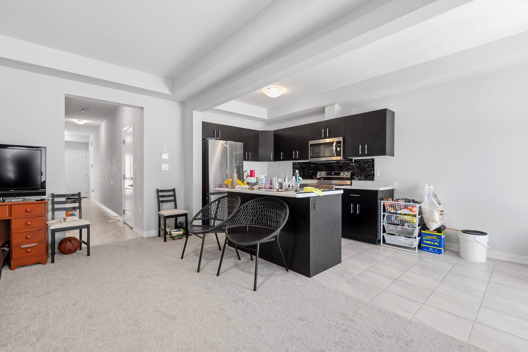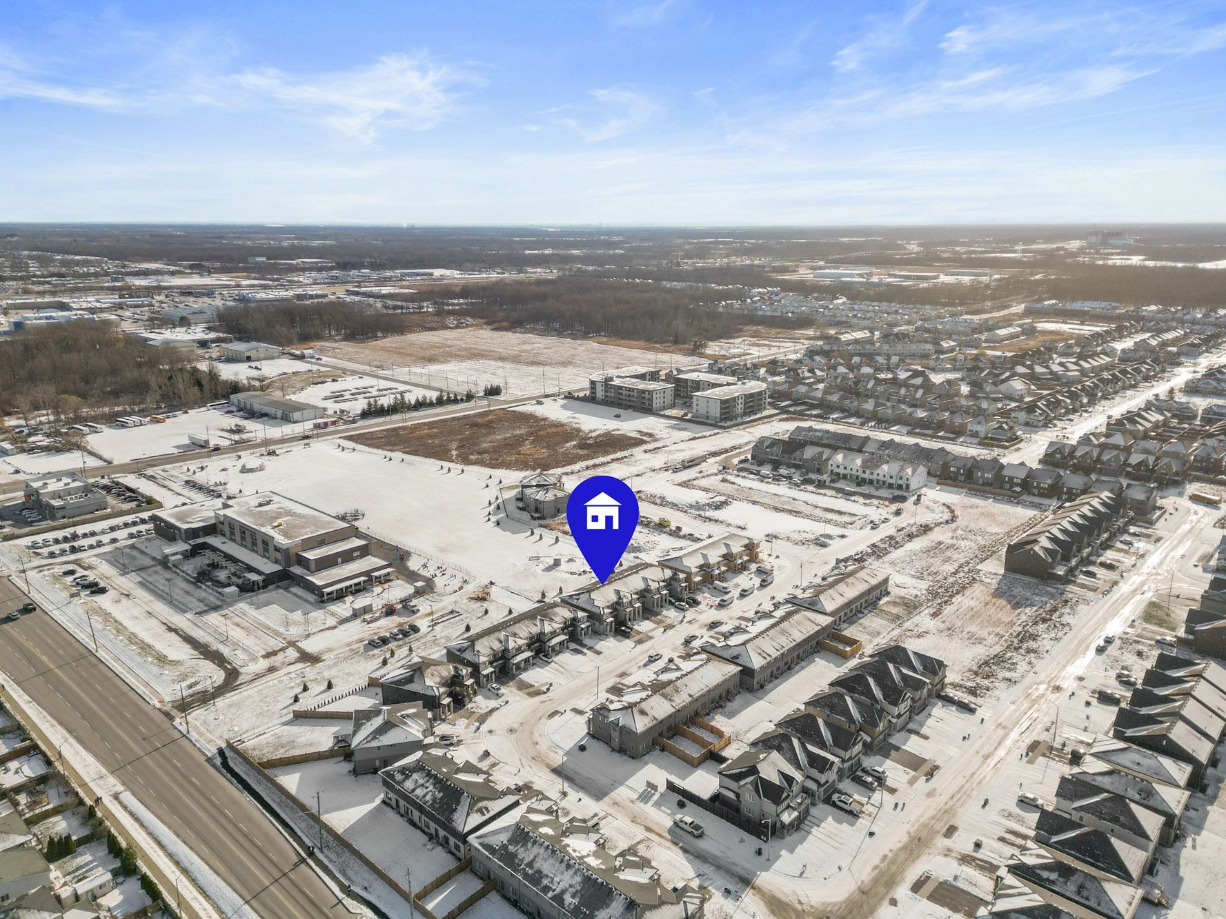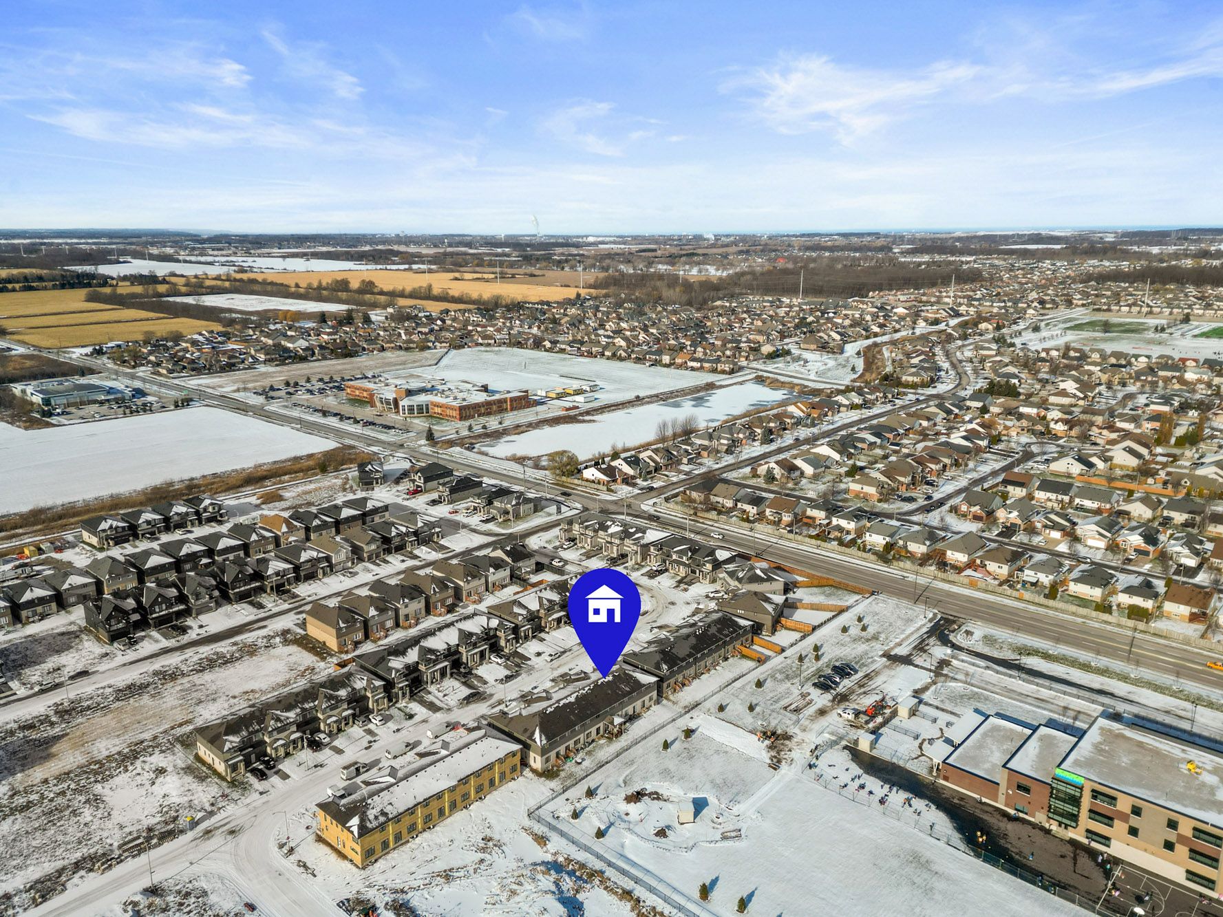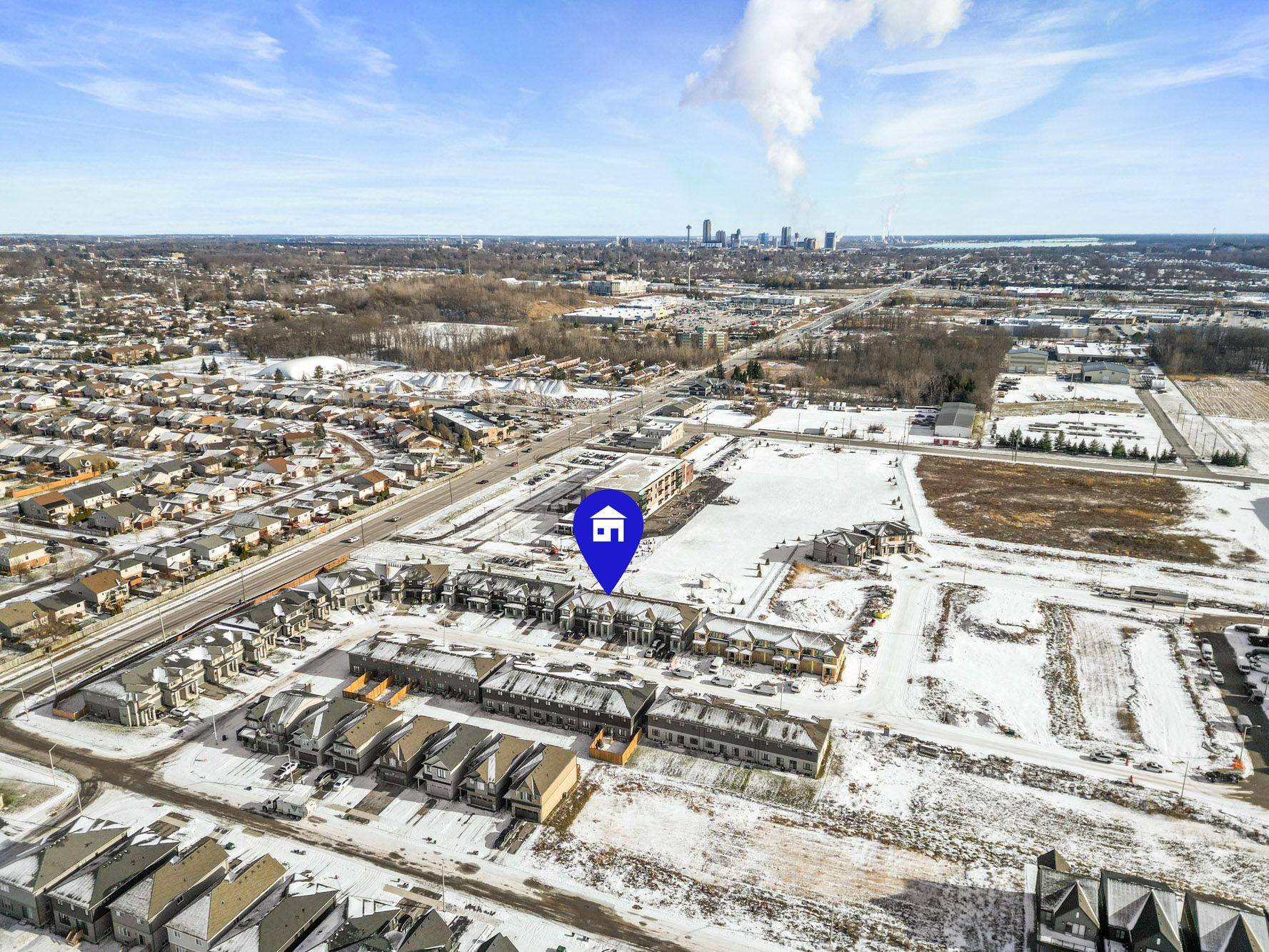 Bright and modern townhome in south end niagara falls. This home offers a clean and contemporary layout with neutral light toned finishes, large windows, and custom blinds throughout that create a welcoming and sun filled feel. The main floor features an open concept design with a sleek kitchen showcasing modern cabinetry, stainless steel appliances including a built-in microwave, an island for added workspace, and an eat in dining area with patio doors leading to the backyard with no rear neighbours, providing added privacy. The kitchen flows seamlessly into the living room, making the space ideal for everyday living and entertaining, and a convenient two piece bathroom completes the main level. Upstairs offers three well sized bedrooms including a bright primary suite with a three piece ensuite, along with a four piece main bathroom, upper level laundry, and carpeting throughout the bedrooms and hallway with tiled finishes in the bathrooms and laundry area. The unfinished basement provides excellent potential for future living space or additional storage. Located in the desirable south end, this townhome offers easy access to costco and walmart, is situated near the heartland forest, and is close to the site of the upcoming niagara falls hospital, adding to the appeal of this growing area.