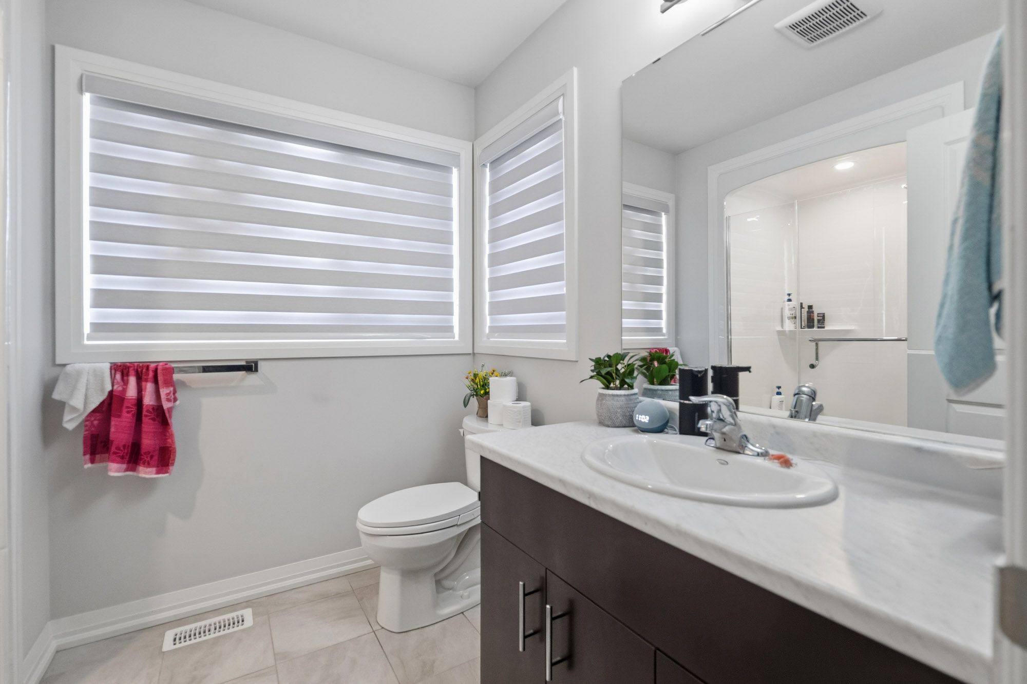 • Bright and modern townhome with large windows and custom blinds.