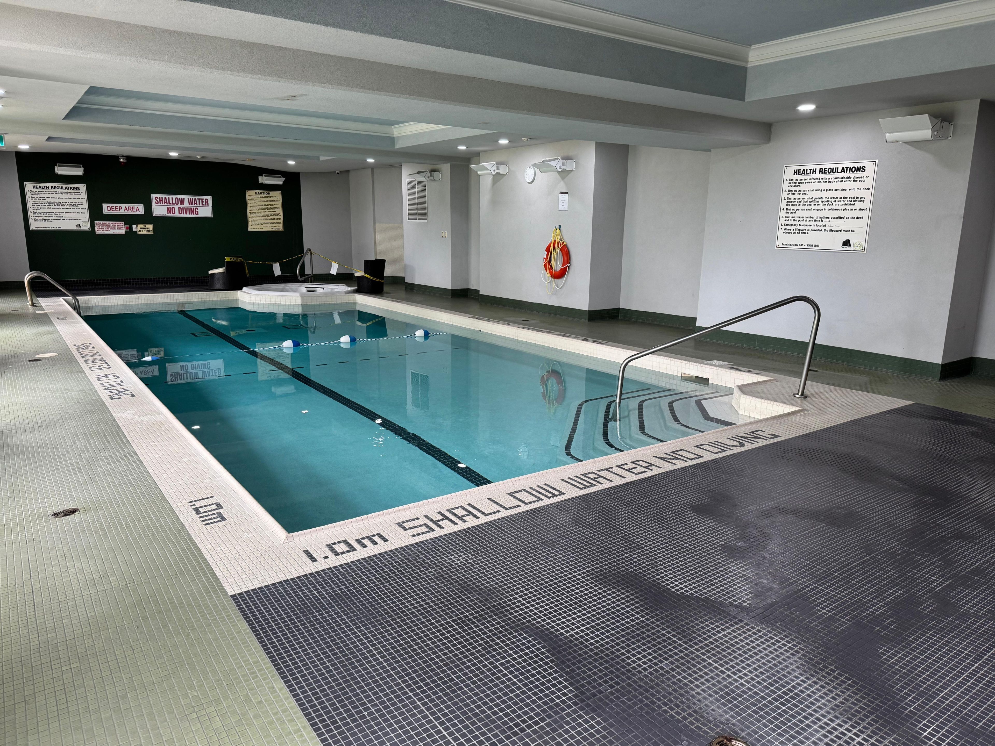 • Building amenities include pool, gym, and security for added comfort.