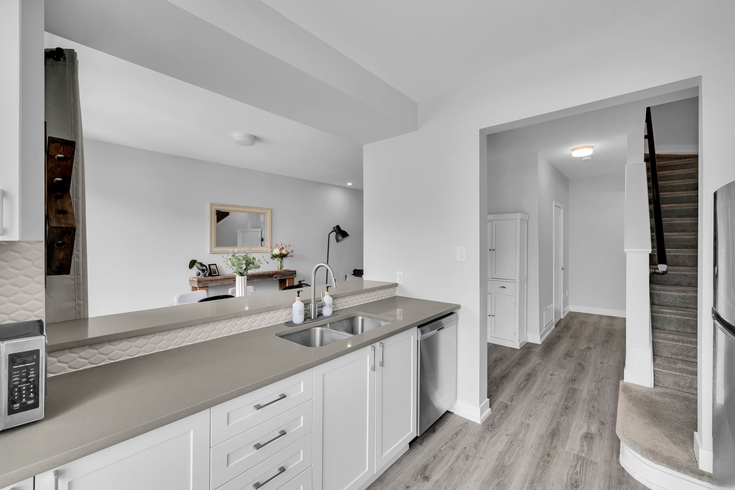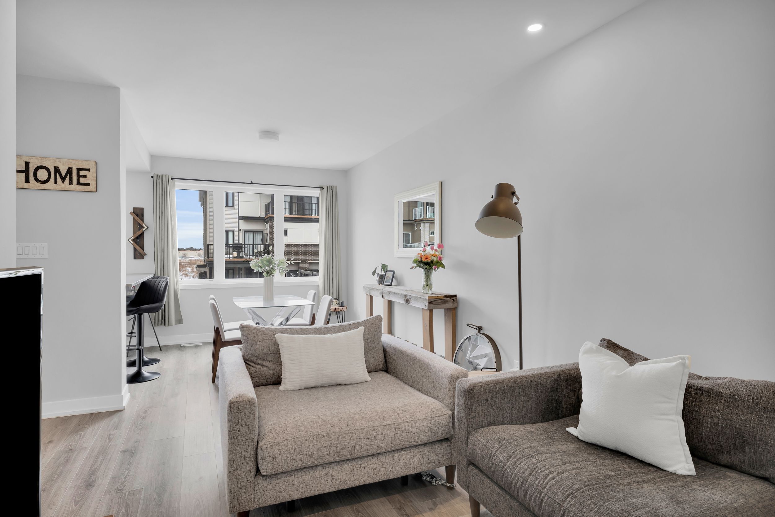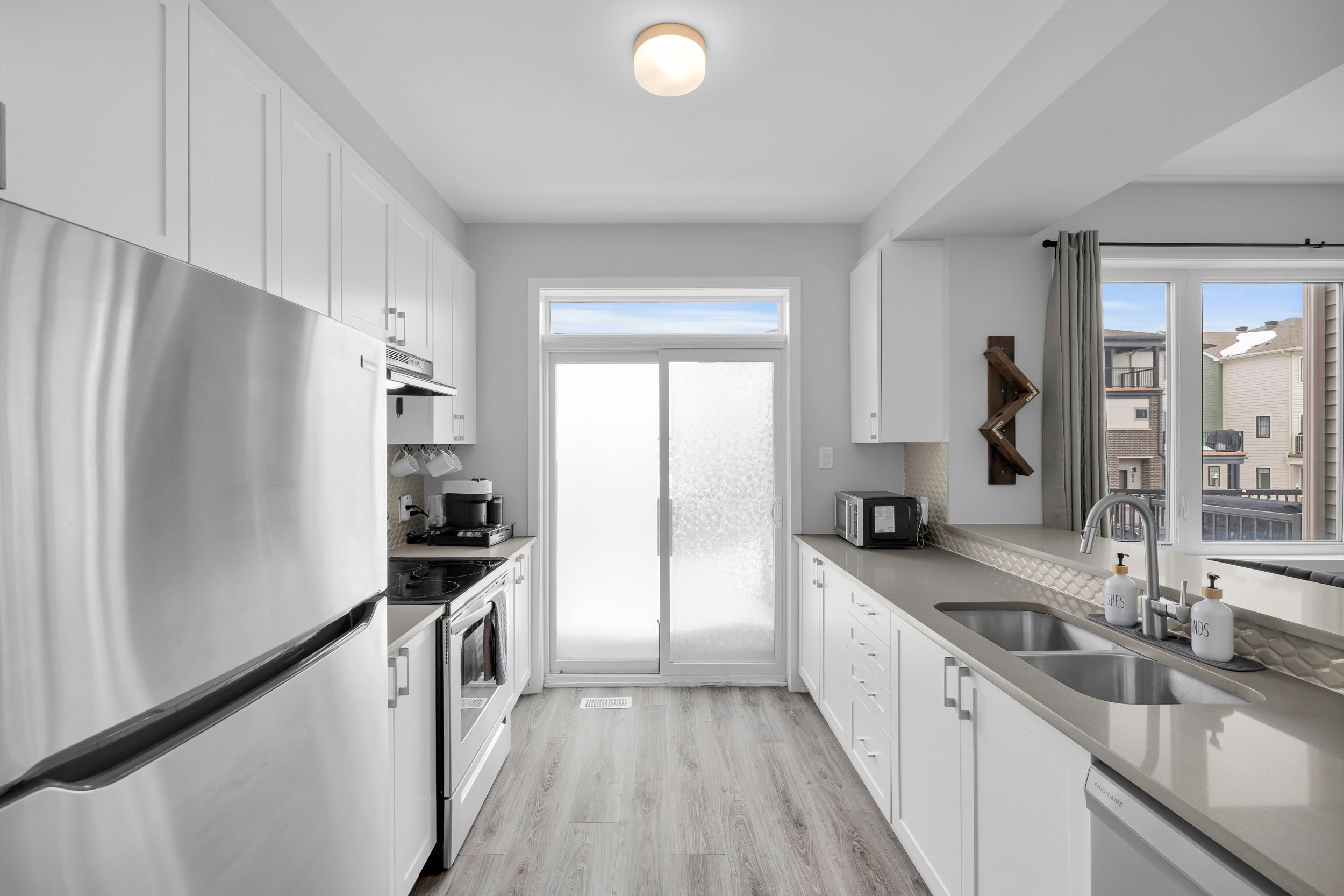 Welcome to 738 chromite private in barrhaven's sought-after promenade community. Built in 2023, this stylish three-level townhome offers modern finishes and easy low-maintenance living with thoughtful upgrades throughout. The bright open-concept living space features 9 ft smooth ceilings, potlights, craftsman-style interior doors, upgraded hardware and stylish wide plank flooring (carpet only on the stairs). The modern kitchen offers quartz countertops, stainless steel appliances and a generous breakfast peninsula with seating, while patio doors lead to a private balcony perfect for morning coffee or relaxing at the end of the day. Upstairs you will find two spacious bedrooms including a bright primary bedroom with a walk-in closet. Enjoy the comfort of your own garage and the convenience of being just steps from the shops, restaurants and everyday amenities along greenbank road, with a nearby fleet of electric vehicle charging stations. The hvac system is fully owned (no rental furnace or ac), the home benefits from the remaining tarion warranty, and flexible closing is available. Stylish, move-in ready and exceptionally well priced for a 2023 home, this is a fantastic opportunity in barrhaven.