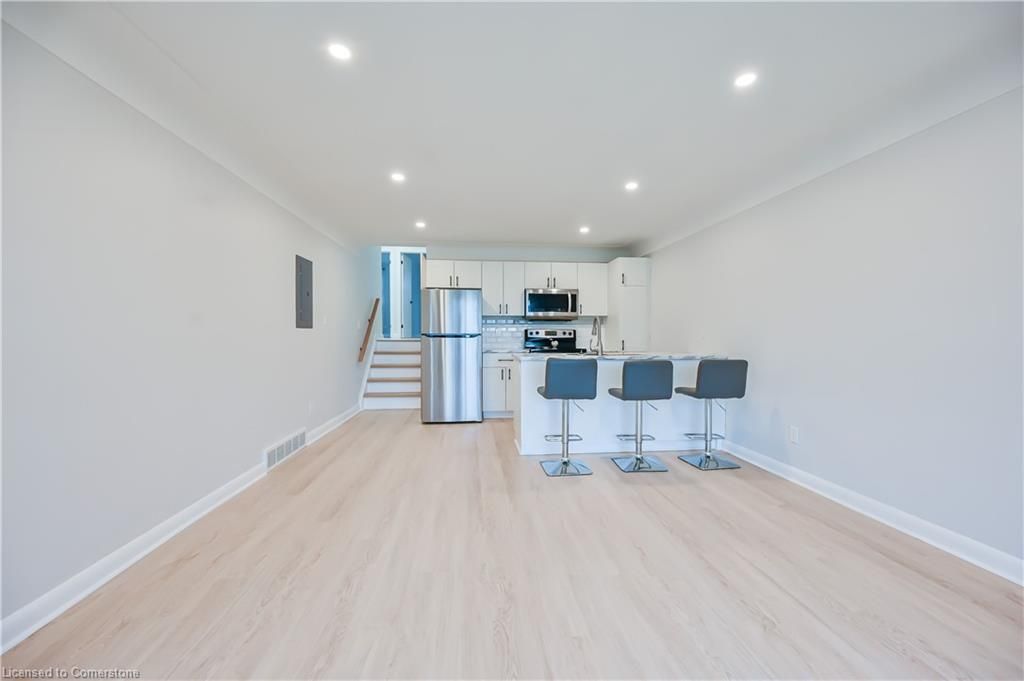Beautifully renovated 3-bedroom, 1-bathroom home on mohawk road in hamilton! This property boasts a modern kitchen with stainless steel appliances, granite look countertops, and custom cabinetry. The open-concept living and dining areas feature contemporary finishes and abundant natural light. Enjoy the spa-like bathroom with sleek design and high-quality fixtures. Each bedroom is generously sized, perfect for family living or a home office. This home is truly move-in ready. Includes one dedicated parking spot and is conveniently located near schools, parks, linc, shopping centres, public transit and all other amenities
