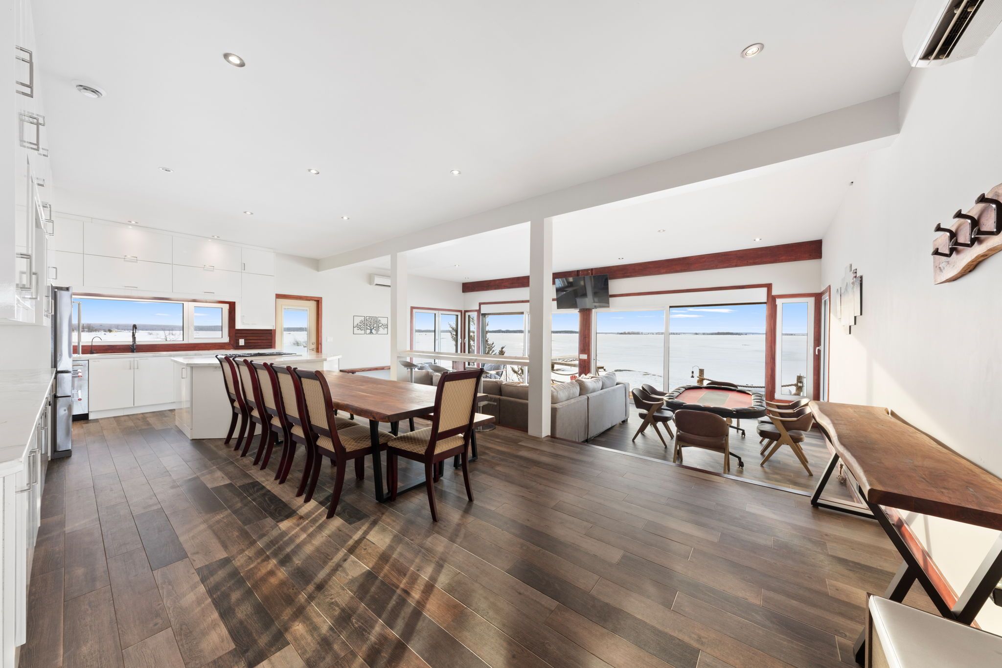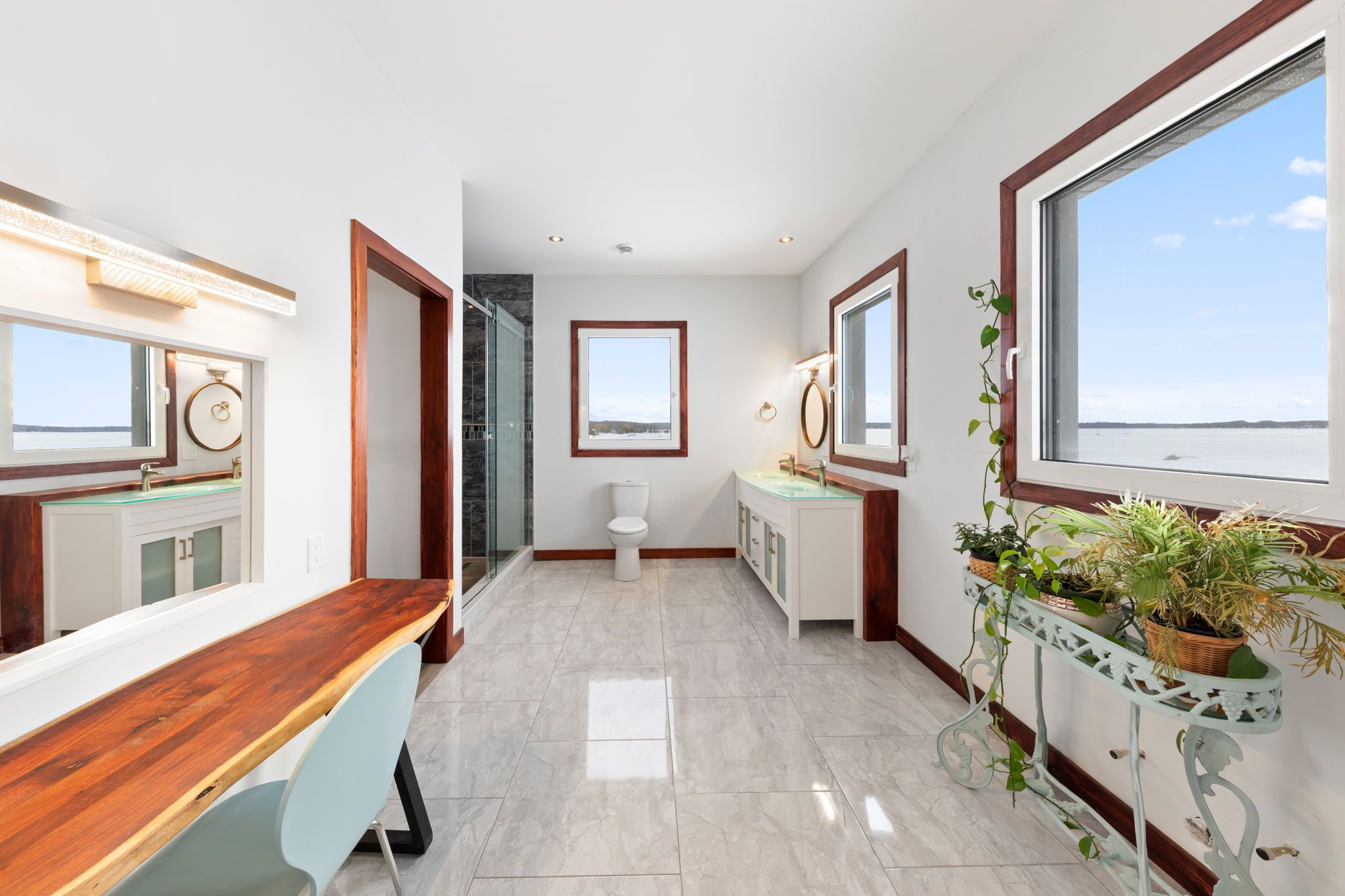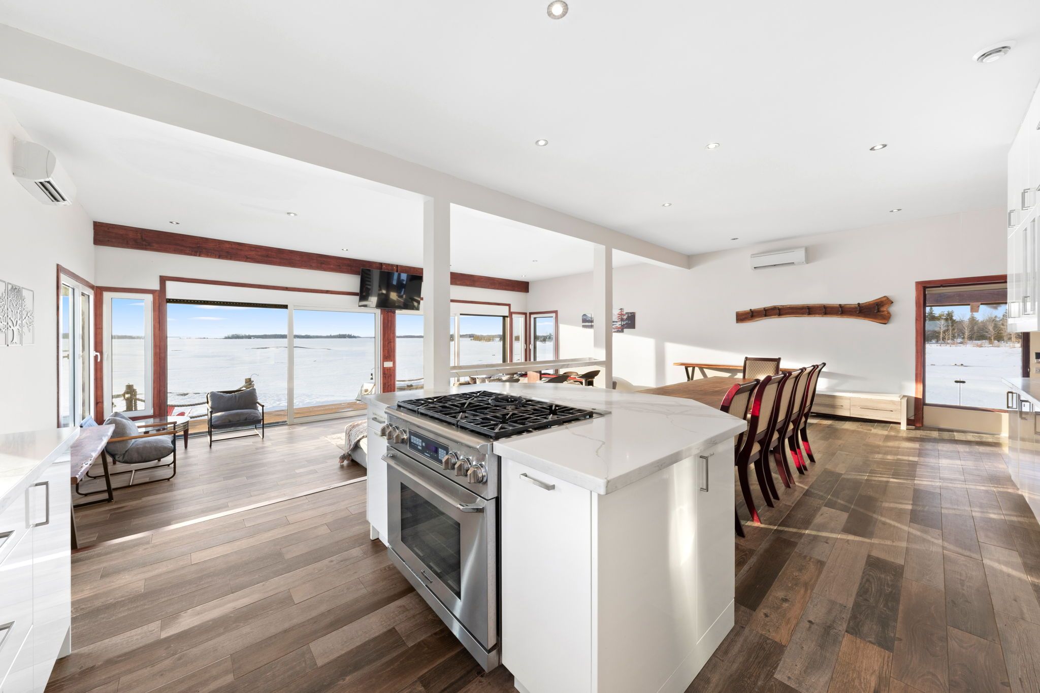 • Open-concept main level with panoramic water views and abundant natural light.