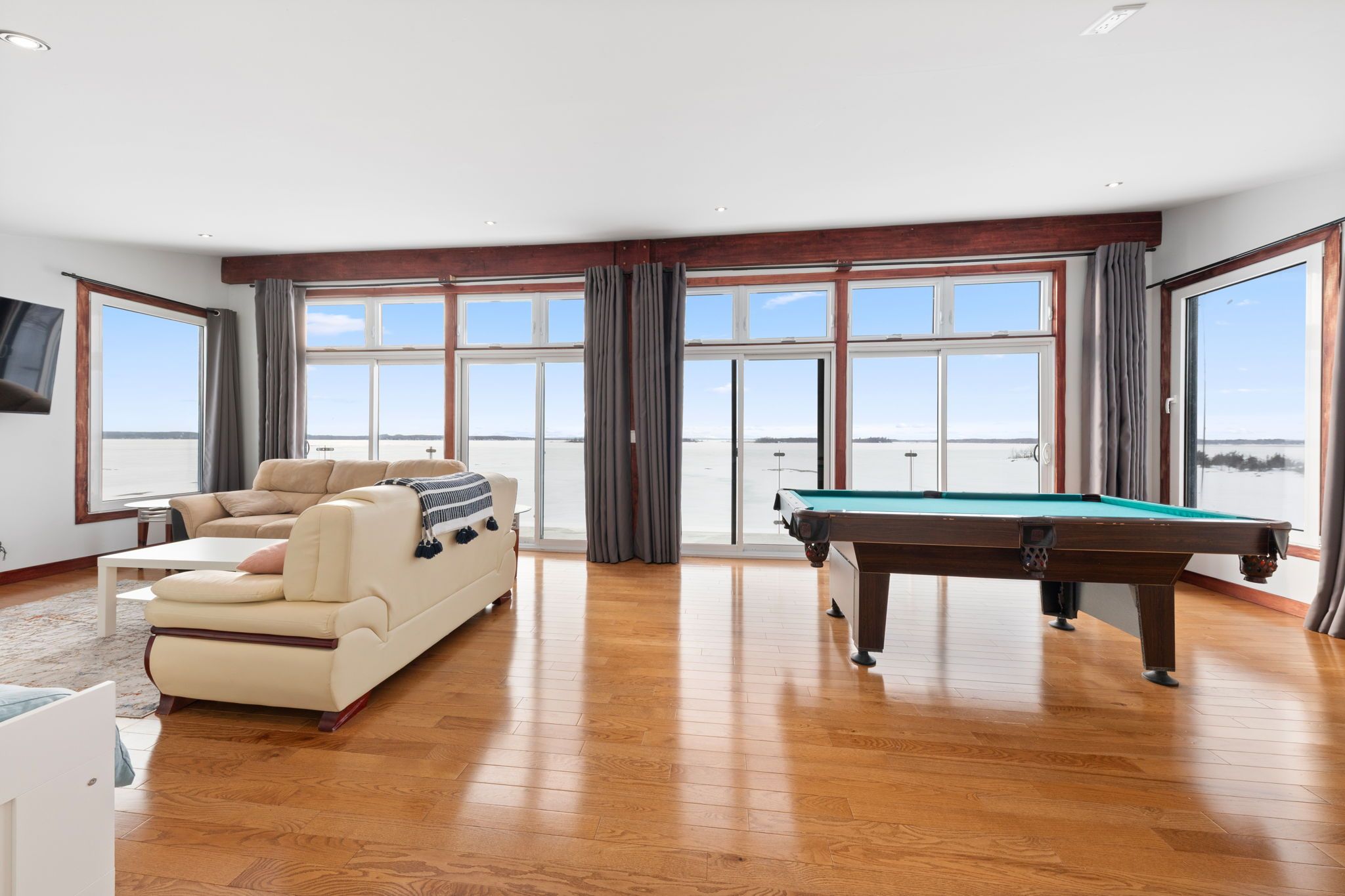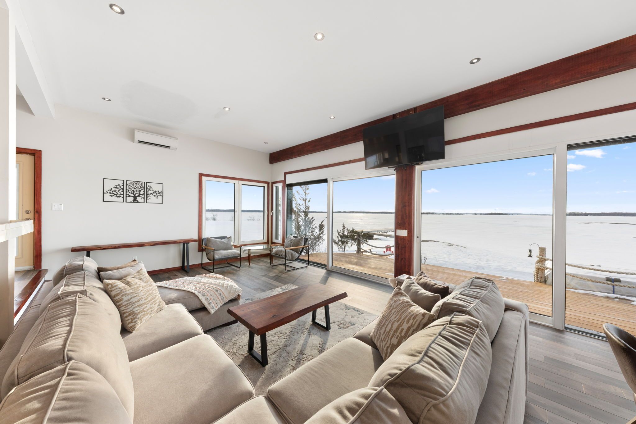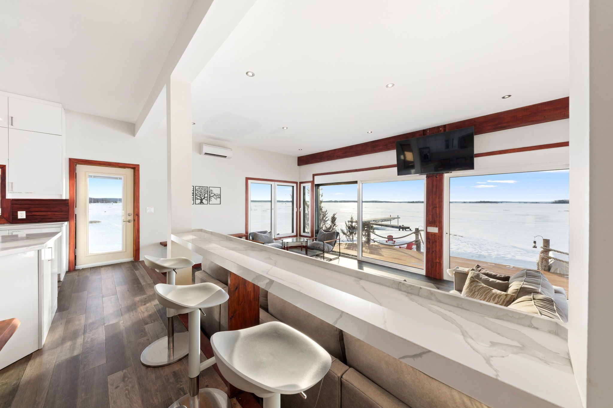 • Open-concept main level with panoramic water views and abundant natural light.