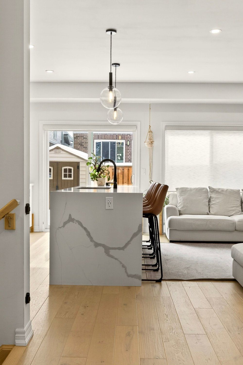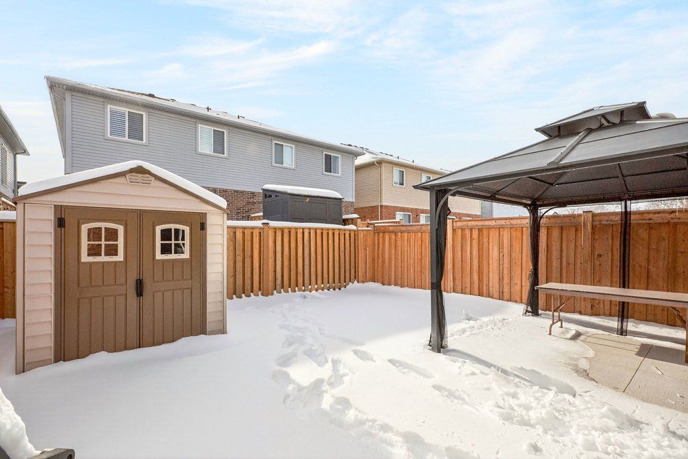 Built in 2020 by dicenzo homes and offering over $50,000 in thoughtful upgrades and updates this stunning 4-bedroom, 4-bathroom semi-detached home is located in a welcoming, family-friendly community on hamilton mountain. With a finished basement, fenced yard, and modern finishes throughout, this home is ideal for families and professionals alike. Enjoy convenient inside entry from the single garage and private driveway. Step into the inviting foyer and immediately appreciate the upgraded flooring and staircase, along with a conveniently located 2-piece powder room. Natural light fills the open-concept main floor, highlighting the beautifully upgraded kitchen - truly the heart of the home. Features include extended cabinetry, black stainless steel appliances with a gas stove, an oversized quartz waterfall island, upgraded undermount sink and faucet, and plenty of prep and gathering space. Upgraded hardwood floors flow seamlessly through the kitchen, living, and dining areas, complemented by pot lights, a large window, and sliding glass doors leading to your private, fully fenced backyard. The concrete patio and gazebo create the perfect setting for outdoor relaxation or entertaining. Upstairs, upgraded hardwood continues through the hallway, leading to four generously sized bedrooms with large closets and cozy carpeting. The spacious primary retreat features a walk-in closet and a stylish ensuite bath complete with a glass shower. The finished lower level expands your living space with a large recreation room, laundry area, ample storage, and a 3-piece bathroom with glass shower - ideal for guests, teens, or a home office setup. 200-amp electrical panel. Centrally located just minutes from l the linc, with access to the 403 and red hill parkway this home is close to public transit, schools, parks, and shopping. Don't miss this opportunity! Some photos virtually staged.