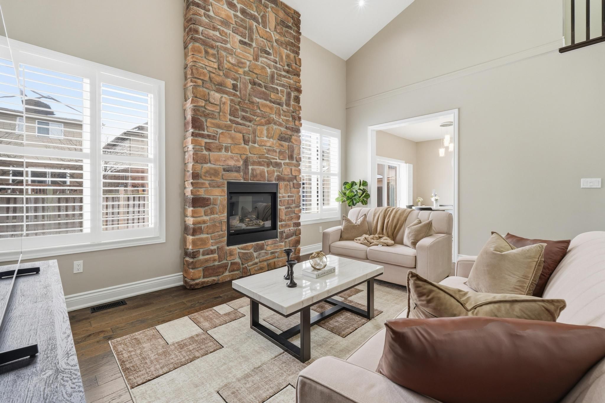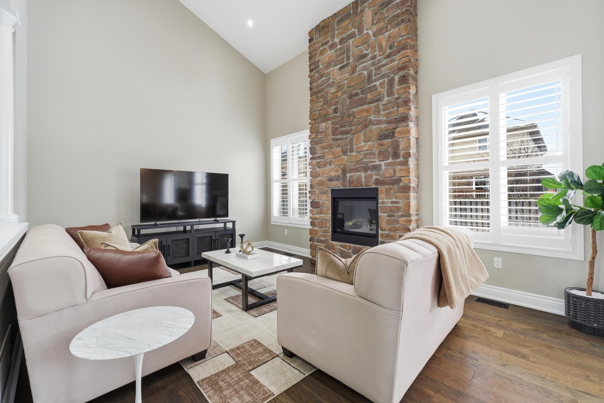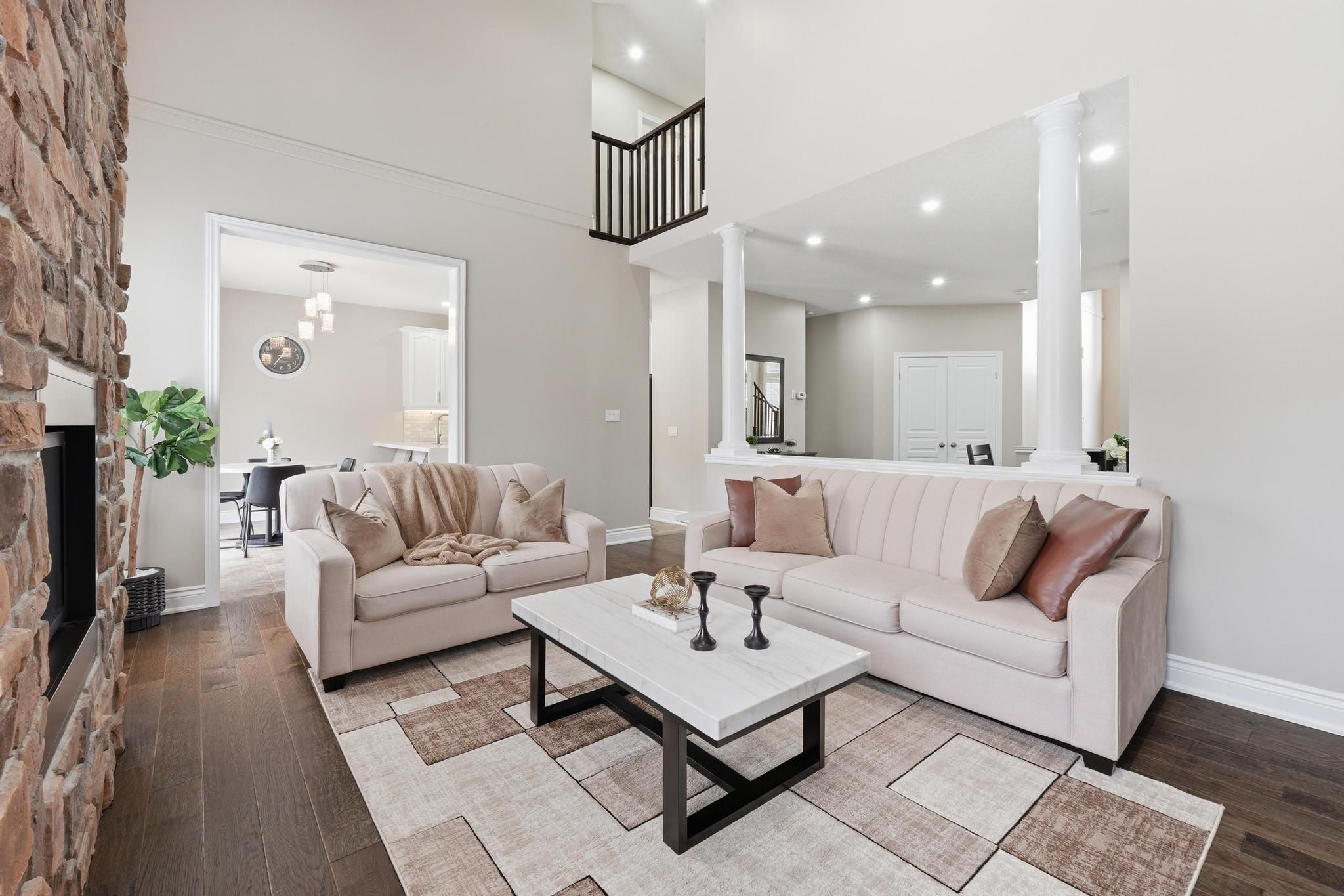 Welcome to this exceptional 3+1 bedroom, 4 bathroom two-storey home located in the highly sought-after summit park community on hamilton's east mountain. Set on a premium oversized lot, this beautifully maintained residence offers the perfect blend of space, style, and everyday functionality. Step inside to find elegant hardwood flooring and impressive ceiling heights, including an open-to-above living room that creates a bright, airy atmosphere filled with natural light. Updated kitchen features sleek quartz surfaces, modern finishes, and a welcoming eat-in area ideal for family gatherings and entertaining. Upstairs, spacious bedrooms offer comfort and privacy, the fully finished basement expands your living space with contemporary finishes, a cozy fireplace, and versatile space ideal for a home office, gym, or guest suite. All kitchen appliances are new , new washer&dryer