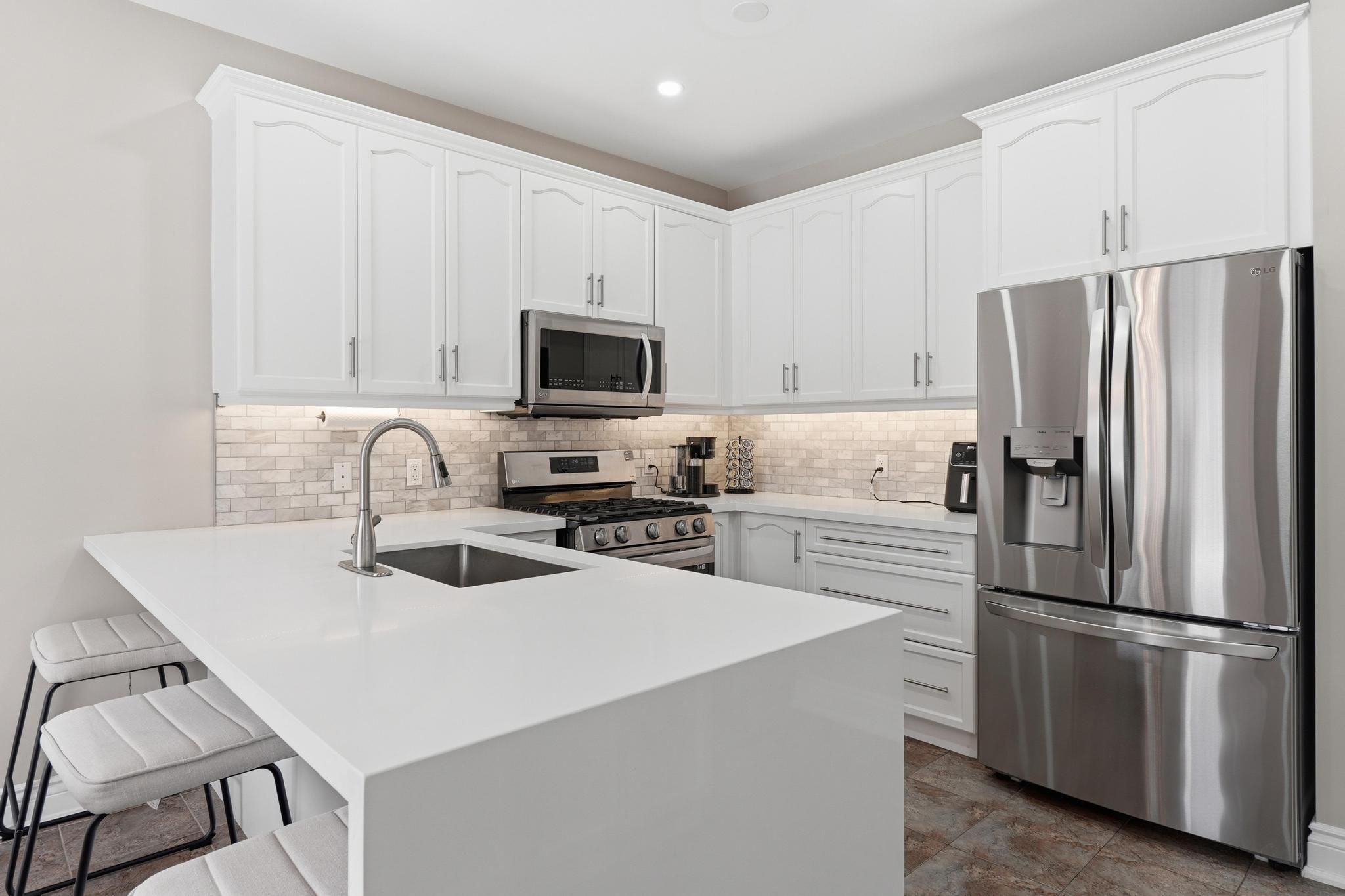 • Updated kitchen with quartz surfaces and a cozy eat-in area.