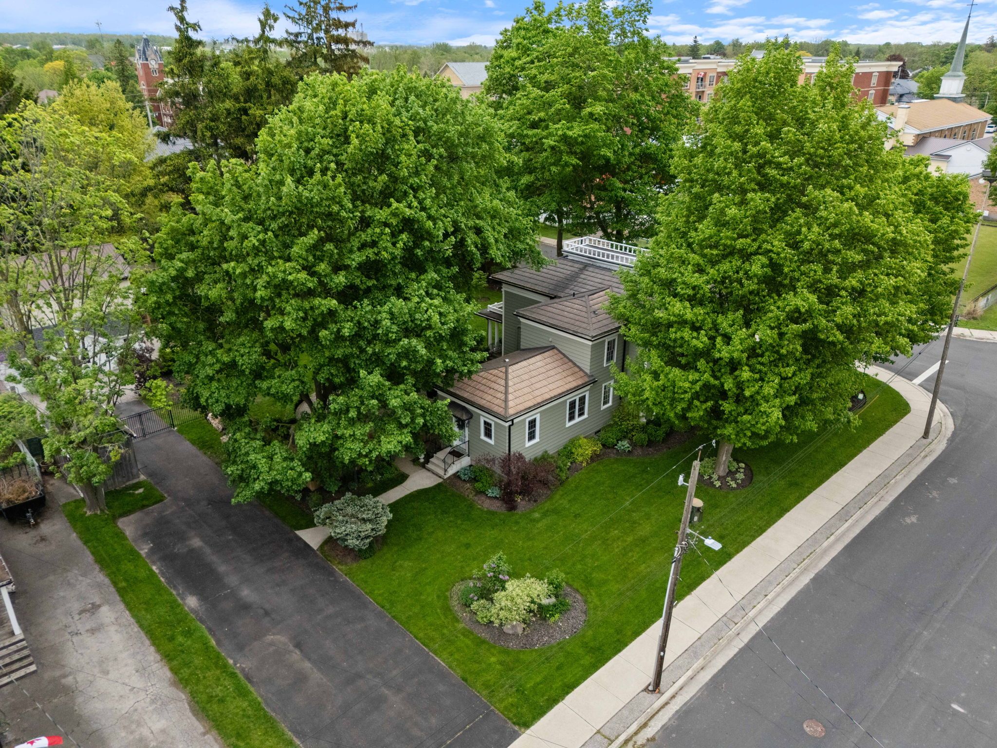 Timeless georgian manor on a beautiful double lot! This georgian-style manor is truly one of aylmer's showpieces - timeless, elegant, and beautifully updated from top to bottom. Situated on a fully fenced double lot, the property offers a private outdoor retreat with lush landscaping, two garden sheds, a welcoming covered porch, and a freshly painted exterior that enhances its classic curb appeal. This home also offers endless potential with the possibility of severing the second lot, creating a rare opportunity for future development or investment. Step inside to discover the perfect blend of historic character and modern comfort. The updated kitchen features quartz countertops, a large centre island, and a bright dining nook ideal for everyday family meals. For more formal gatherings, the stunning dining room provides the perfect setting to entertain. The inviting living room offers built-in shelving and a cozy wood-burning fireplace, while a main floor office or den provides flexibility for working from home or additional living space. Upstairs, you'll find four spacious bedrooms, including a luxurious primary suite complete with a 3-piece ensuite featuring heated floors and a tiled shower. A full bathroom with conveniently located laundry adds to the home's thoughtful functionality. The finished lower level expands your living space with a comfortable recreation room warmed by a gas fireplace - perfect for relaxing or family movie nights. With economical heating and cooling, a durable metal roof, fresh paint inside and out, and numerous thoughtful updates throughout, this move-in-ready home offers both sophistication and peace of mind. Don't miss your opportunity to own one of aylmer's most admired homes!