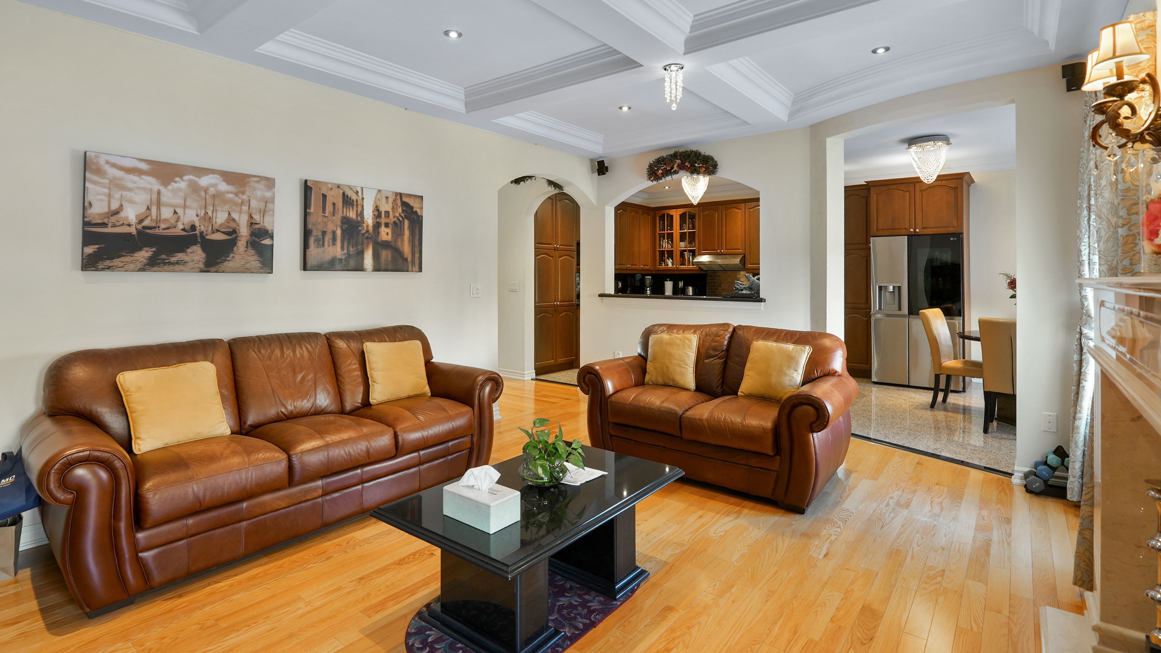 Welcome to 74 dewside drive - a beautifully upgraded 4-bedroom, 4-bathroom detached home in the highly sought-after sandringham-wellington community. Offering approximately 2,500+ sq ft of refined living space, this turnkey property features over $150,000 in premium upgrades throughout. The fully renovated kitchen showcases custom cabinetry, granite countertops, stainless steel appliances, perfect for both everyday living and entertaining. Enjoy 9-foot ceilings on the main floor, complemented by rich hardwood flooring, pot lights, elegant crystal chandeliers, and custom window coverings that elevate the home's modern aesthetic. The spacious family room is a true highlight, featuring a custom waffle (coffered) ceiling and a stunning fireplace - creating a warm and inviting space for gatherings. All four generously sized bedrooms offer access to ensuite bathrooms, a rare and highly desirable feature for growing families or multi-generational living. Step outside to a fully interlocked front and backyard, providing low maintenance and exceptional curb appeal. A separate side entrance leads to an unfinished basement with incredible potential for future rental income or additional living space. Additional upgrades include a new a/c, furnace, washer, and dryer, offering peace of mind and added value. Conveniently located close to schools, parks, shopping, public transit, library, brampton civic hospital, and major highways. A true turnkey opportunity with exceptional upside - don't miss your chance to own this stunning home.