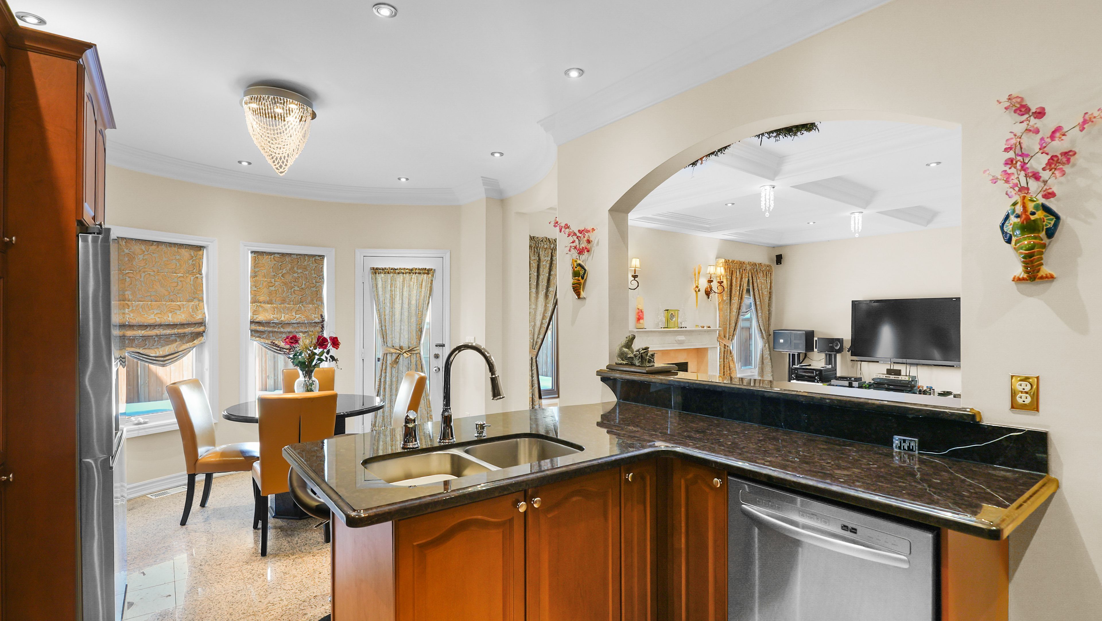 • Renovated kitchen with custom cabinetry and granite countertops, ready for entertaining.