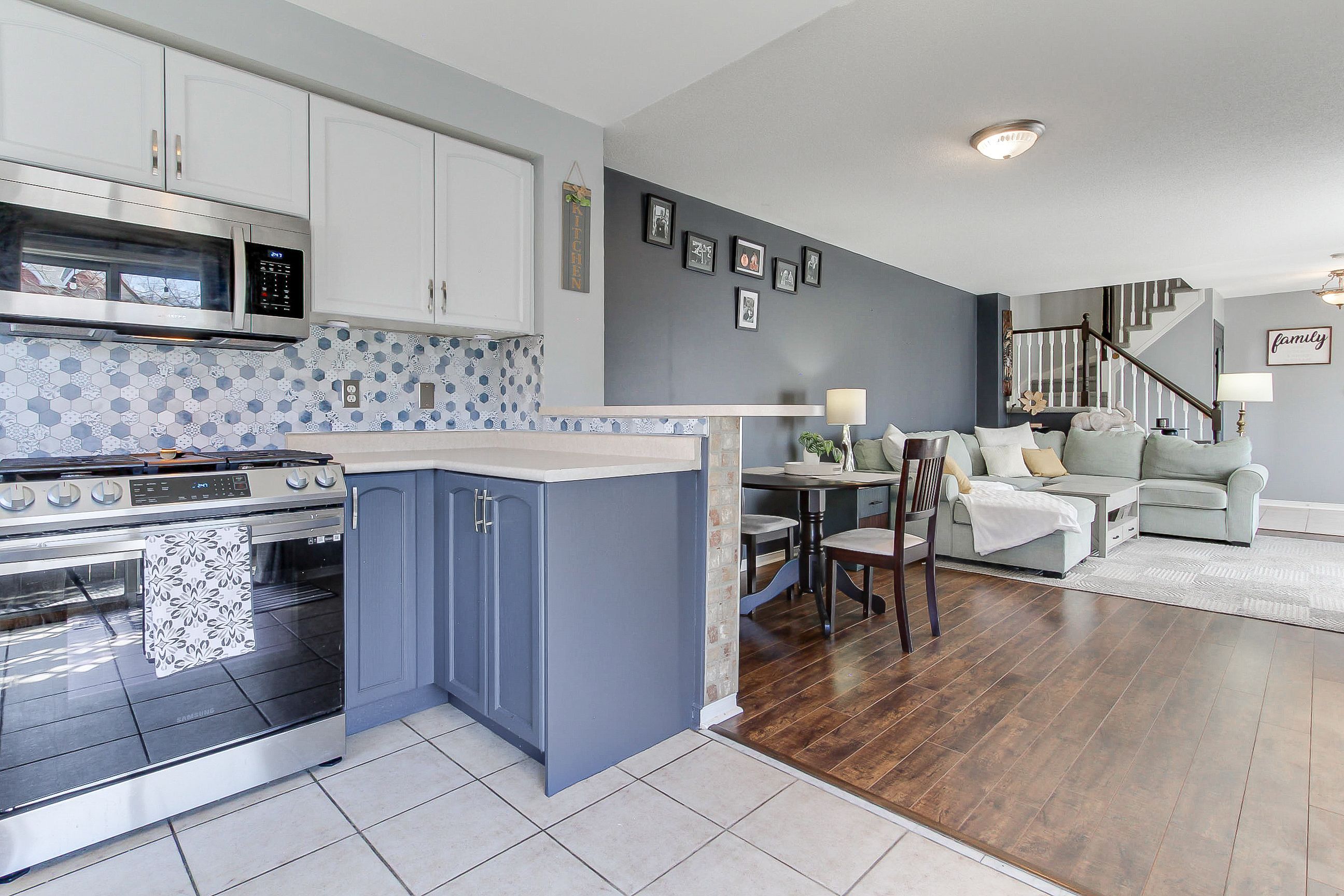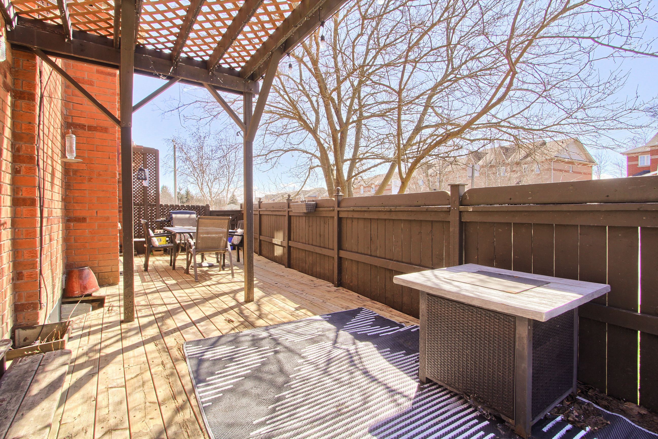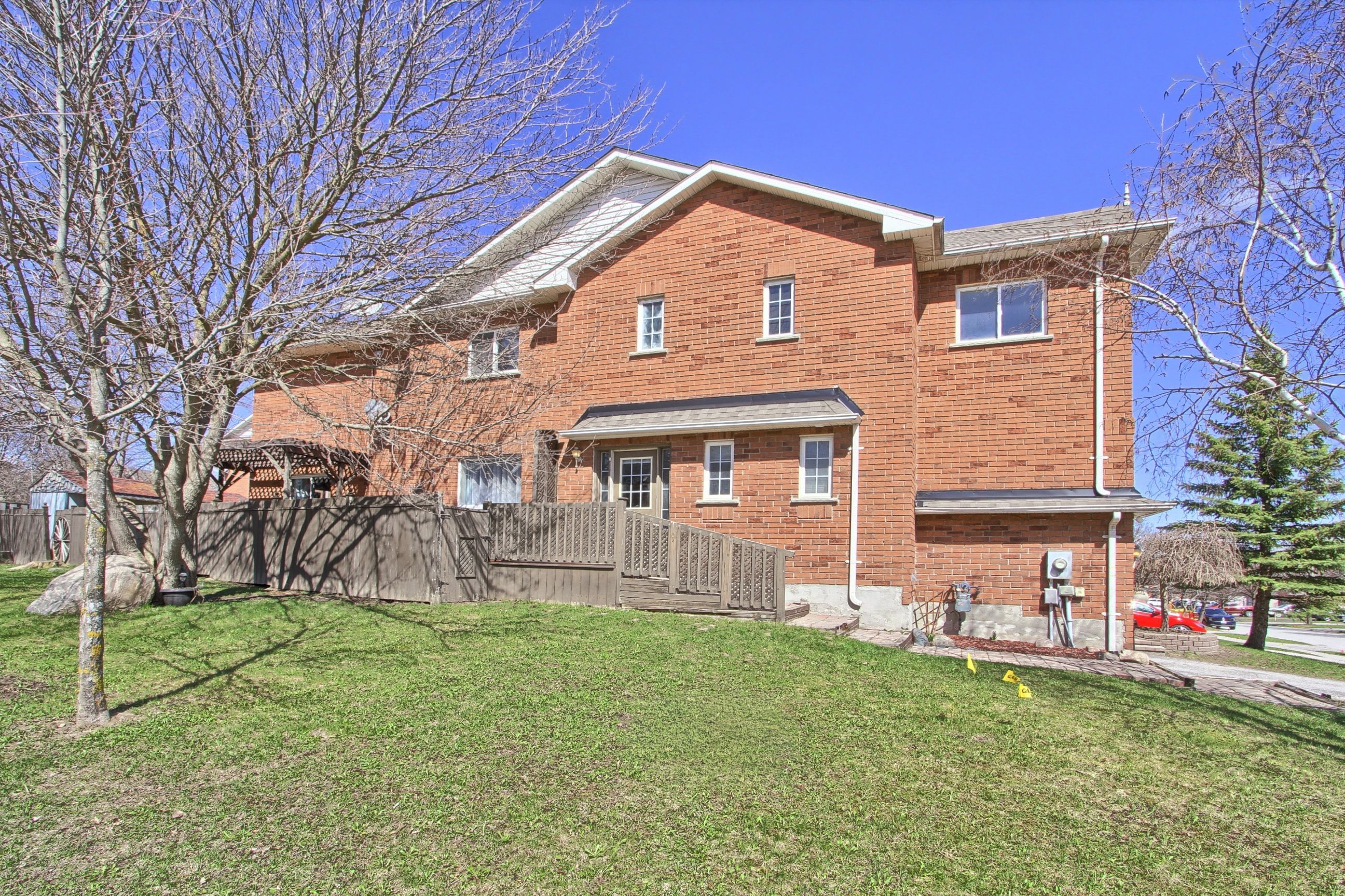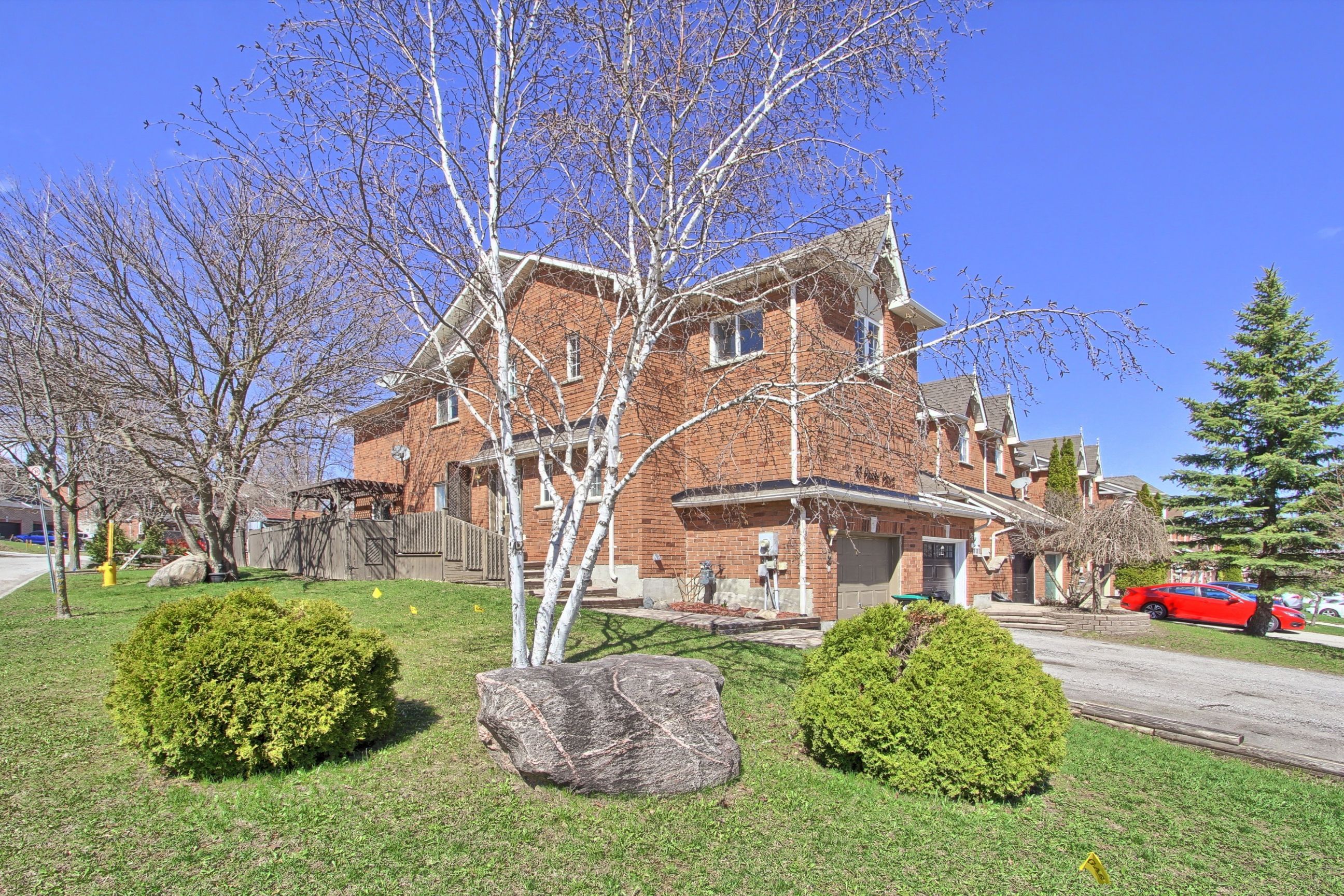 Very desirable large corner lot end-unit townhome! Offering 1,386 sq ft of spacious open concept living, this beautifully maintained all brick home features 3 large bedrooms and a bright, functional layout perfect for family living and entertaining. Kitchen features breakfast bar, stylish backsplash, fridge & gas stove (2025), built in microwave and walk out to deck. Second floor features a spacious primary bedroom with a walk-in closet, along with generously sized second and third bedrooms, complemented by a 4 piece bathroom and additional space for a linen closet. Basement is framed and offers a great opportunity to customize to your needs. Includes rough-in bathroom and an uninstalled tub, ready for your finishing touches. Enjoy a double driveway, unistone walkways, and a fully fenced yard with a great westerly facing entertaining deck, ideal for summer gatherings with friends and family. Enjoy peace of mind and convenience with smart home upgrades: smart thermostat, automated garage door opener, smart door lock, and a high-definition 4k 4-camera security system. This property is a fantastic opportunity in a highly desirable setting, move in and enjoy!