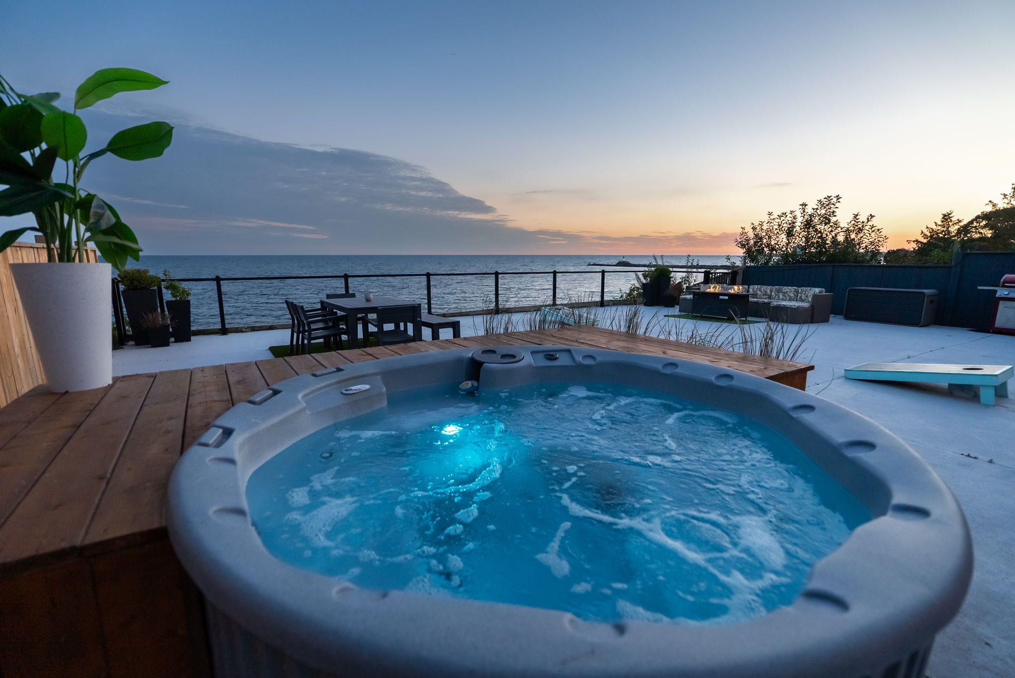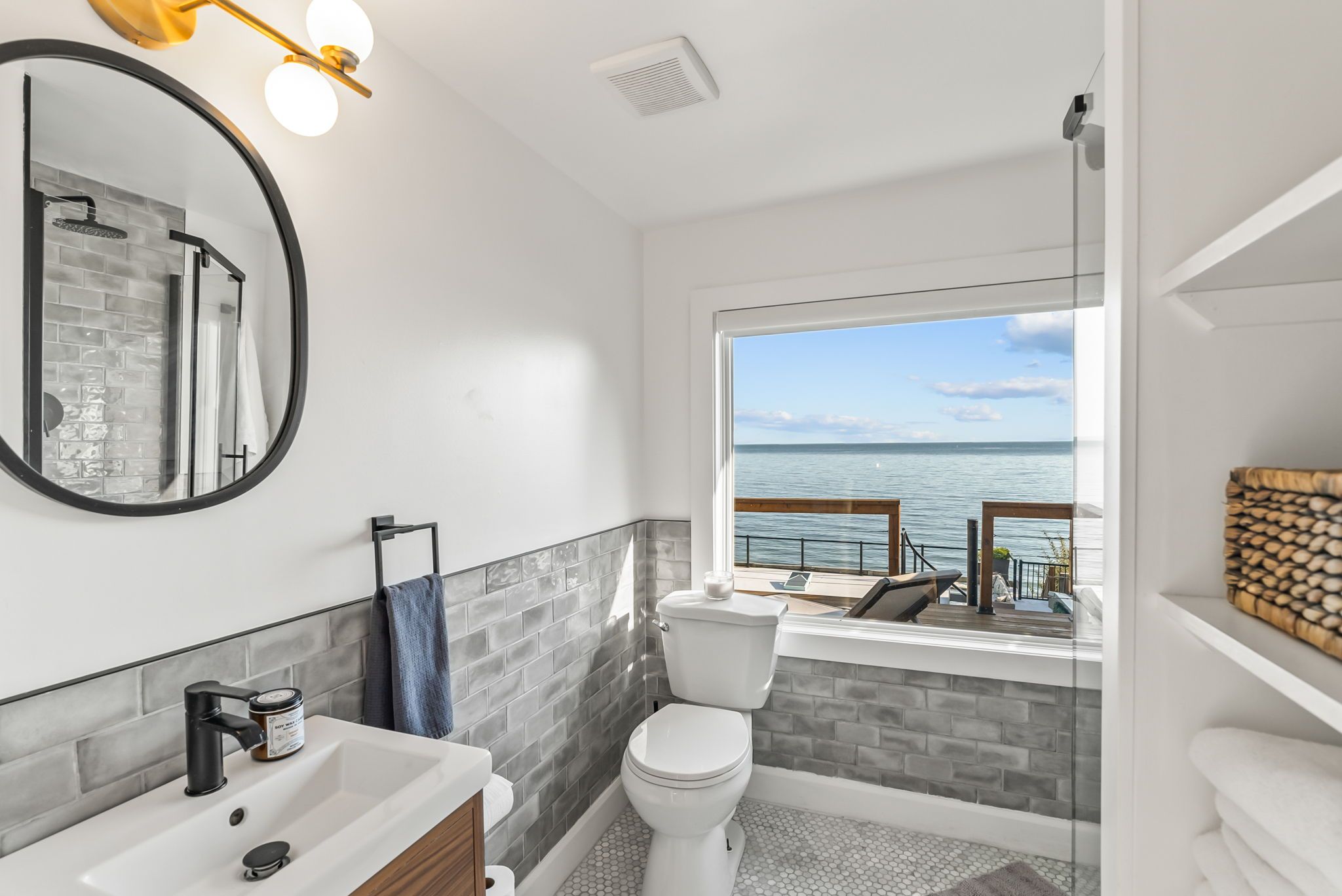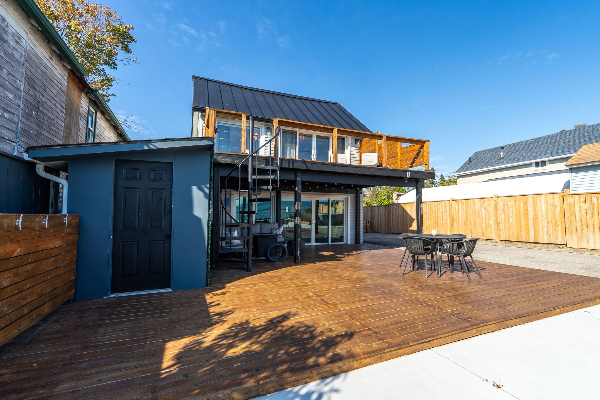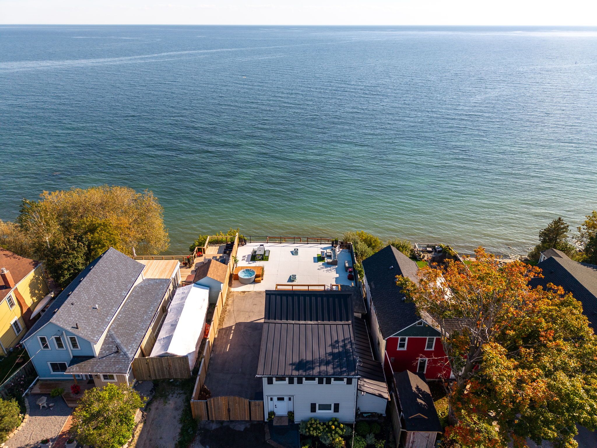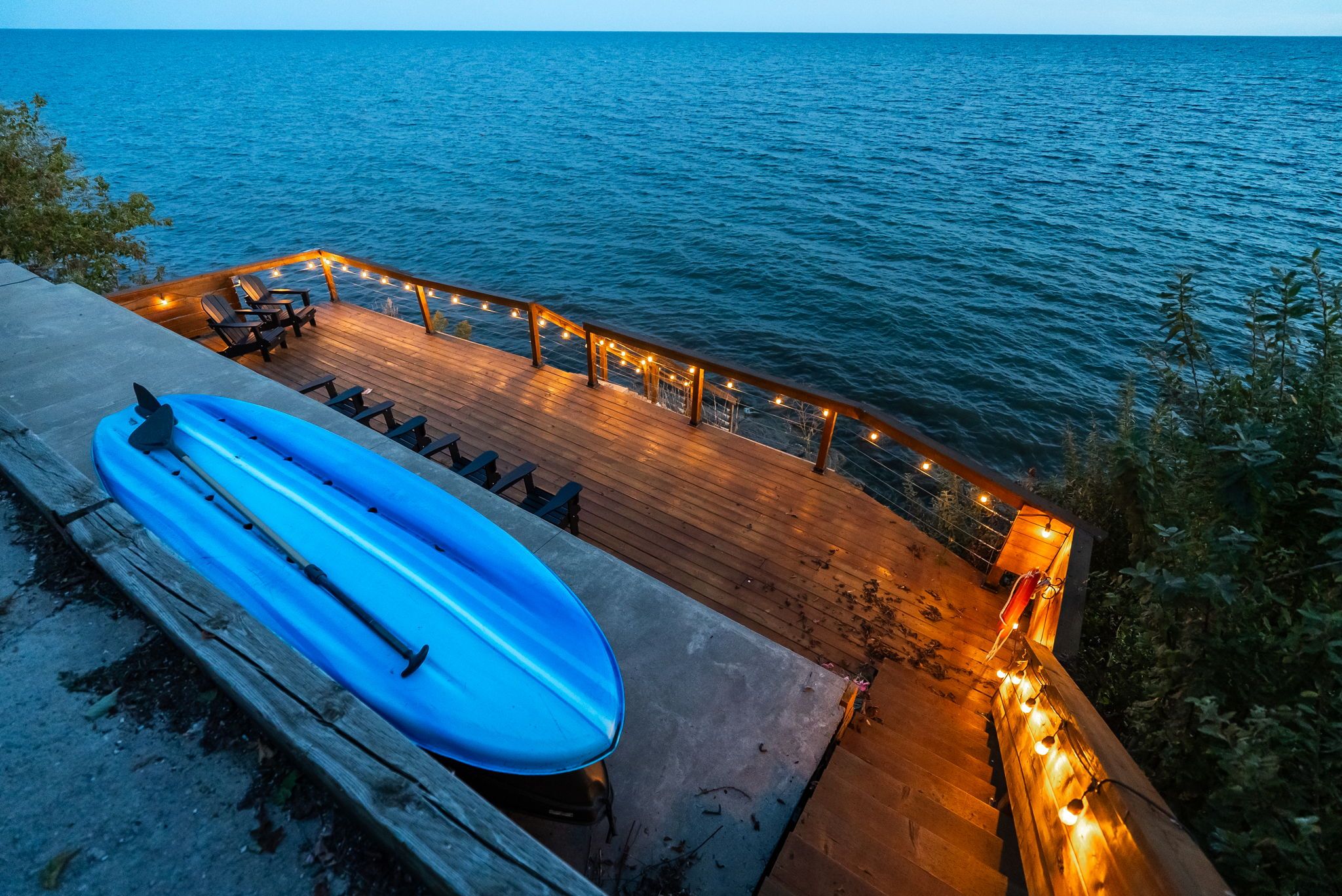 A rare waterfront home unlike anything else on the market! Set directly on the shores of lake ontario, this incredible property blends natural beauty, privacy & modern design in one unforgettable setting. Perched high above the water with direct shoreline access, its a dream spot for kayaking, paddle boarding or simply soaking in the breathtaking views from your own private deck at the waters edge. Fabulous outdoor space featuring a massive multi-level patio with hot tub overlooking the lake & multiple areas for dining & entertaining all positioned to capture the ever-changing colours of the sky & water. From sunrise to sunset, this home offers front-row seats to natures most beautiful show. Currently a popular local beachfront vacation rental, this property also offers a strong income producing opportunity. Perfectly located just steps to port darlington's east beach park, with splash pads, playgrounds & waterfront trails right at your doorstep, this bowmanville address offers convenience w/easy hwy access for a quick commute into toronto. Inside has been completely renovated over the past 5 years: new metal roof, electrical, plumbing, ac, windows & doors. Open-concept main flr features a kitchen w/herringbone butcher-block counters, shiplap walls & a living rm framed by wall-to-wall glass & sliding doors that open to the lakefront patio. The main flr also includes a 3-pc bath, laundry & utility rm. Upstairs, the primary suite is a private retreat in the sky with over-sized glass doors leading to a stunning private deck set high above the water, 2 additional bedrms & a renovated 3-pc bath. Gated side drive with parking for up to 6 vehicles. Whether used as a year-round home or a high-performing vacation rental, this is a special lakefront opportunity!