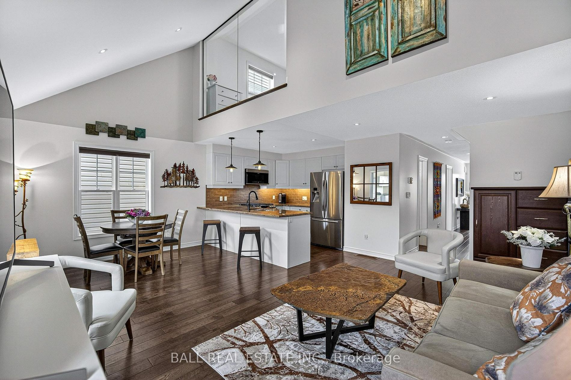 • Open concept main floor with a cathedral ceiling and gas fireplace.