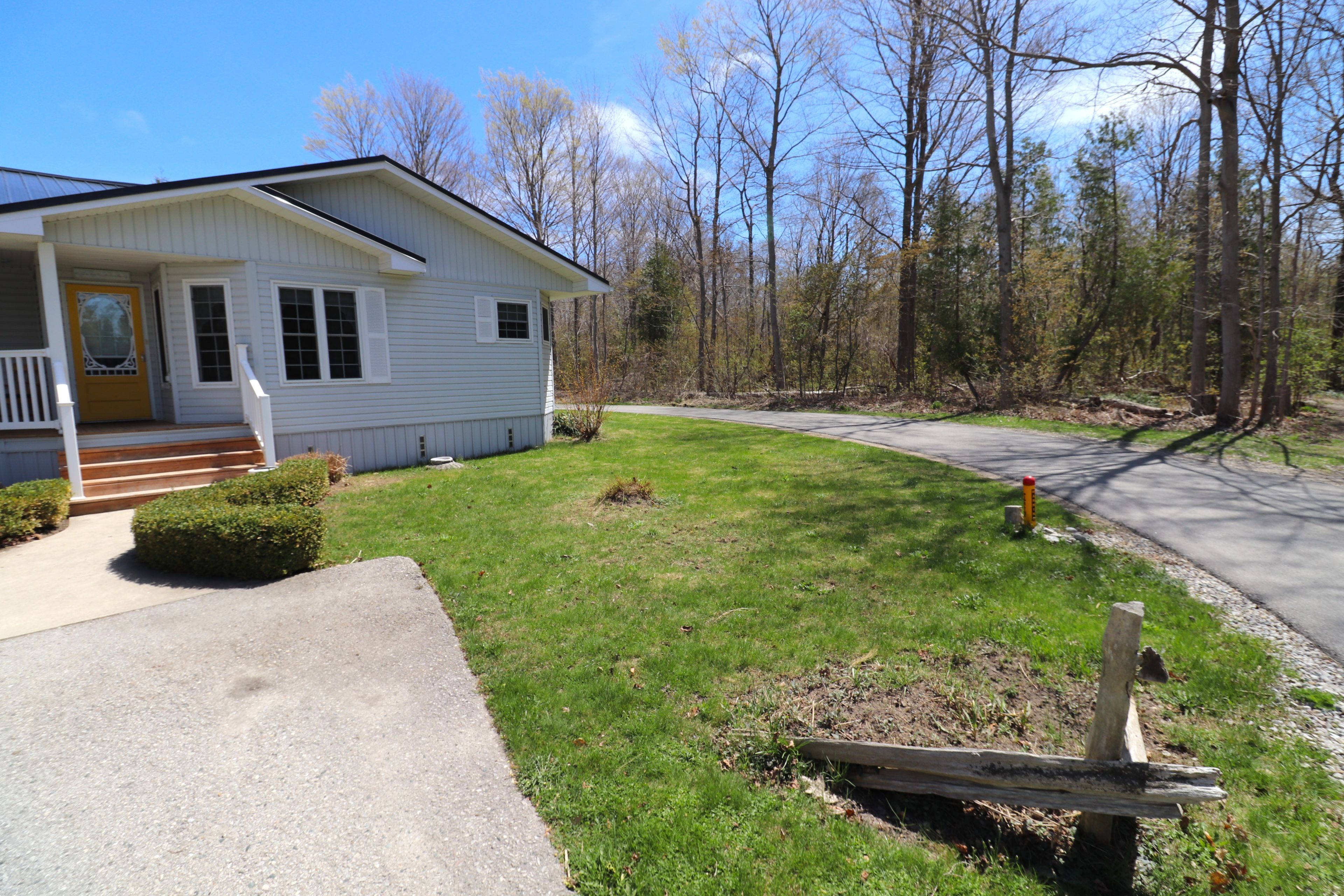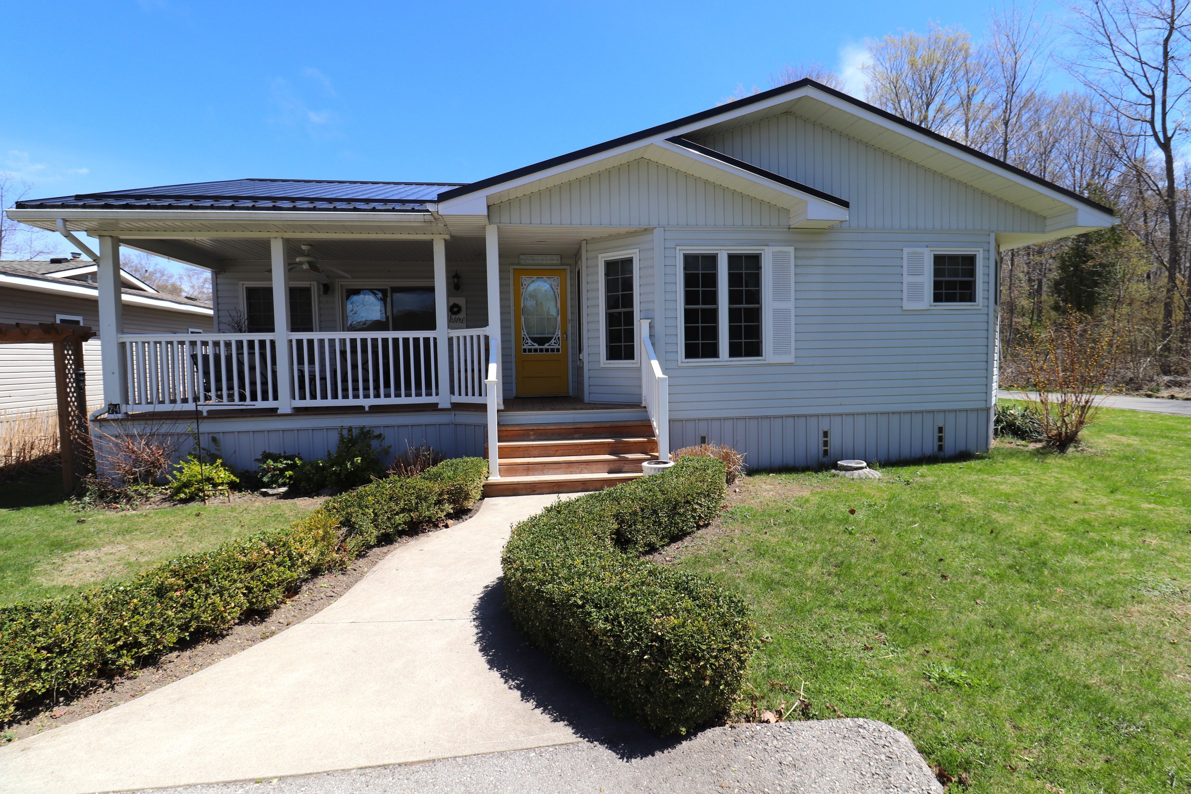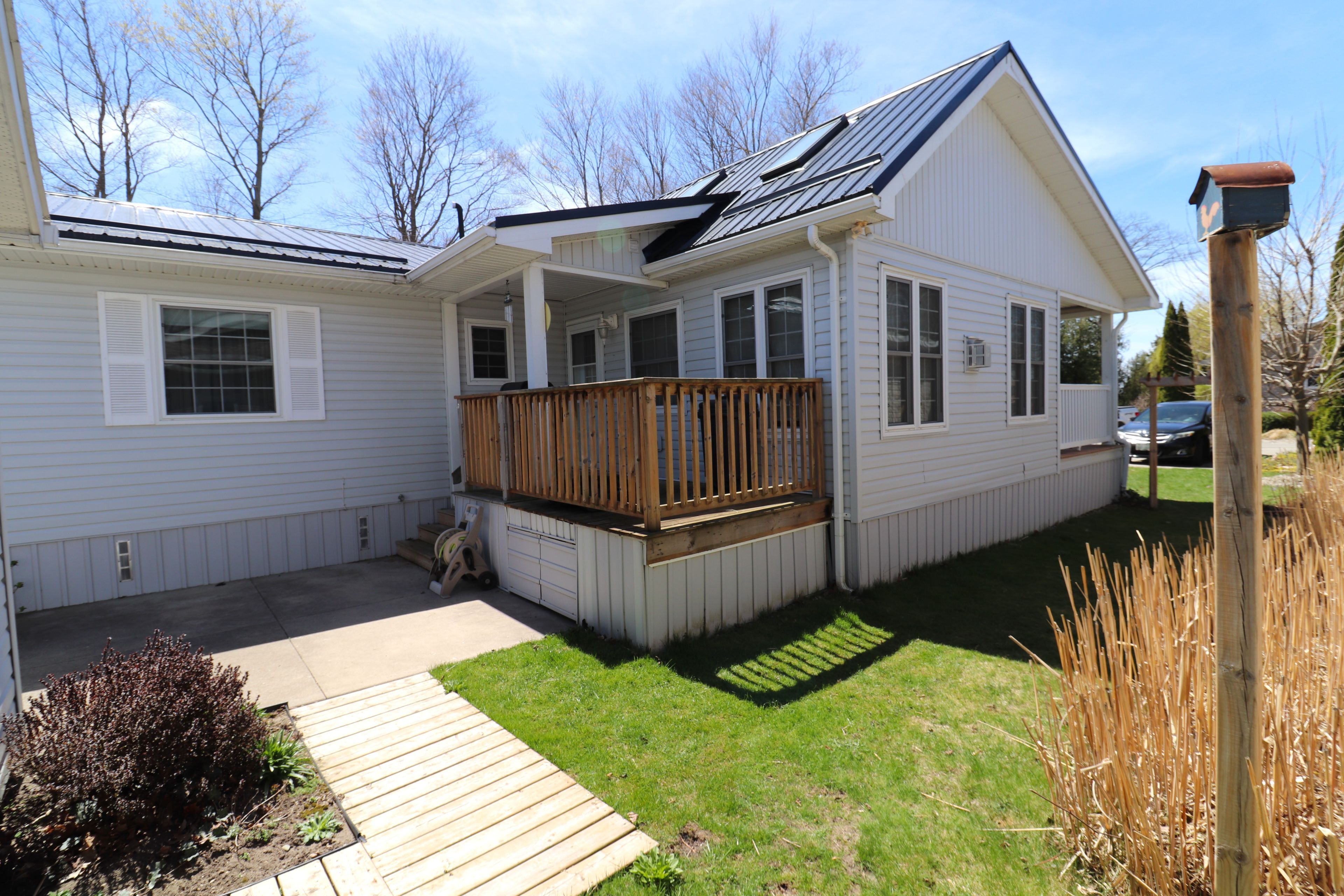 Amazing location! This stunning royal home is situated on one of the best lots at meneset on the lake, an adult lakefront community located just minutes north of goderich. This fabulous home offers a partial seasonal lakeview and is located across the road from a forested area and path leading to the community's beachfront area! As you walk up to the inviting covered front porch, you will know you have found your new home! Step inside and you will be very impressed with the spacious interior including cathedral ceilings and gorgeous wood flooring. The impressive kitchen features newer premium appliances, an abundance of cabinets and several windows for lots of natural light. There is also a formal dining room, living room and stunning family room addition with cathedral ceiling, skylights and natural gas fireplace! Down the hall from the main living area is a laundry room with sink and primary bedroom with 3 pc en-suite bath and walk in closet. There is a spacious second bedroom as well. At the back of the home there is a deck for grilling, concrete patio, private fenced area and large shed/workshop. Services include forced air gas heating, central a/c, high speed internet and whole home generator. An added bonus is the entire roof was replaced in 2022 with long lasting metal. This is a great opportunity to acquire a beautiful home in a very desirable land lease community, complete with its very own club house and recreational activities! If that is not enough, several golf courses, walking trails and lots of shopping are available nearby in the prettiest town of canada!