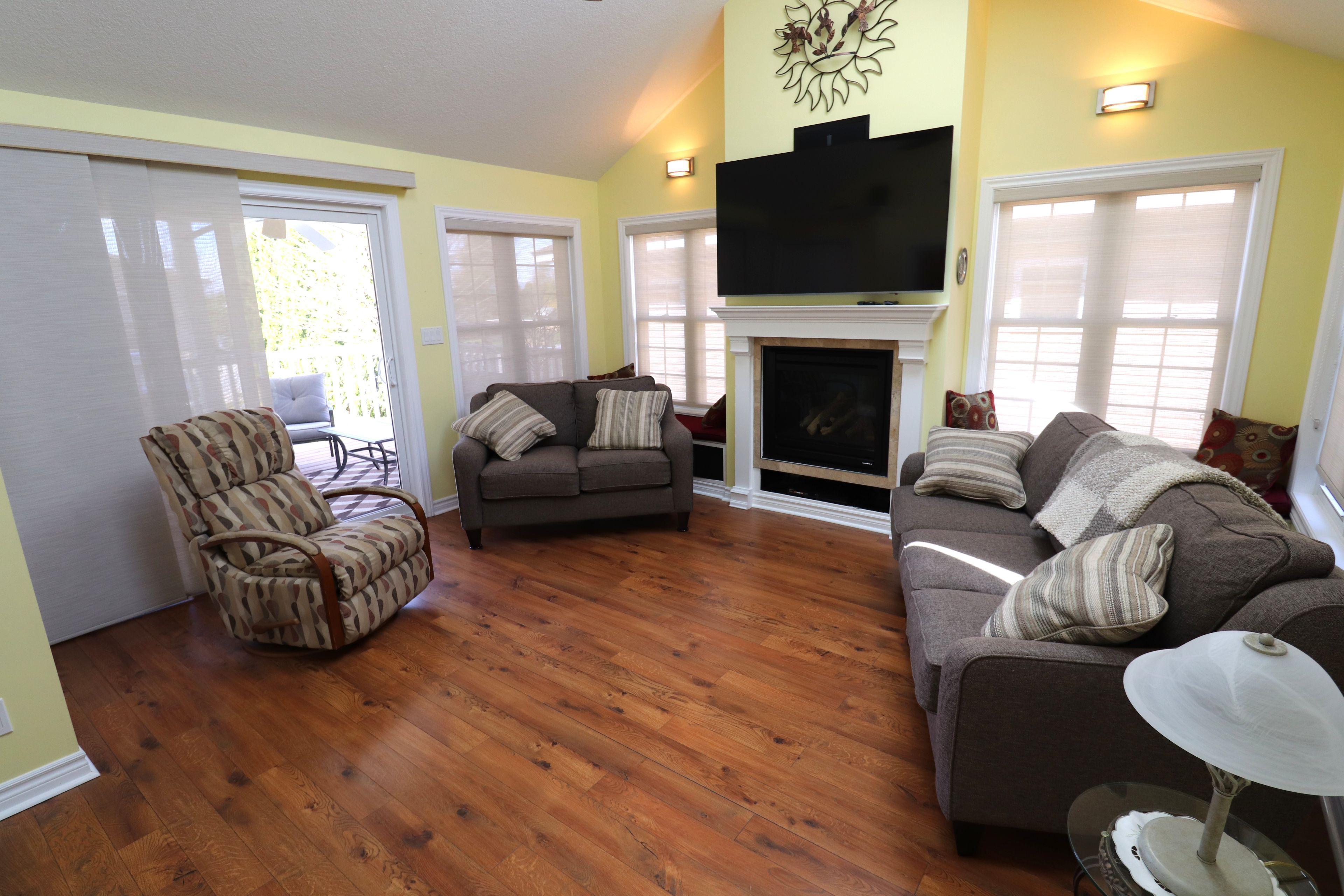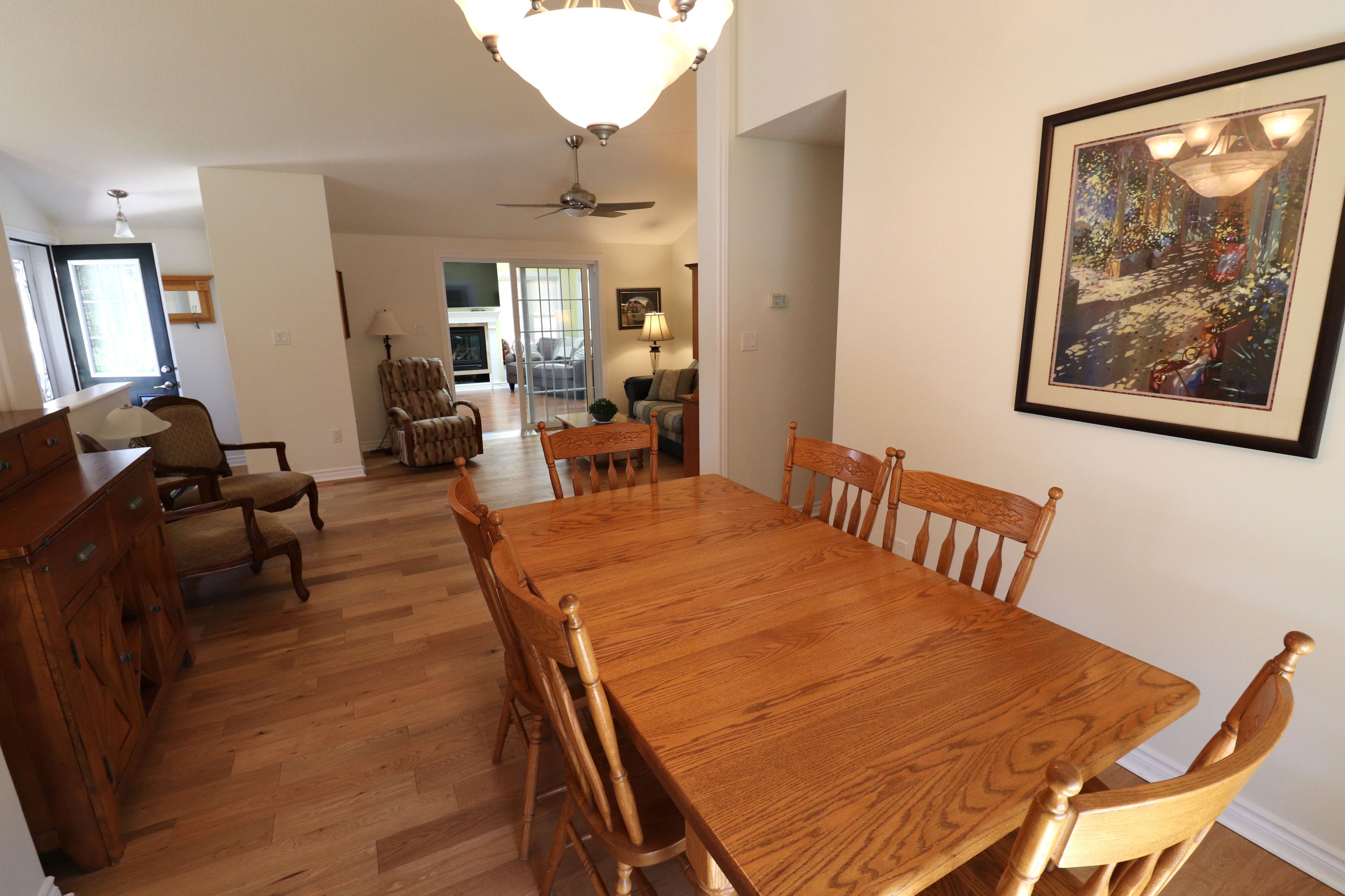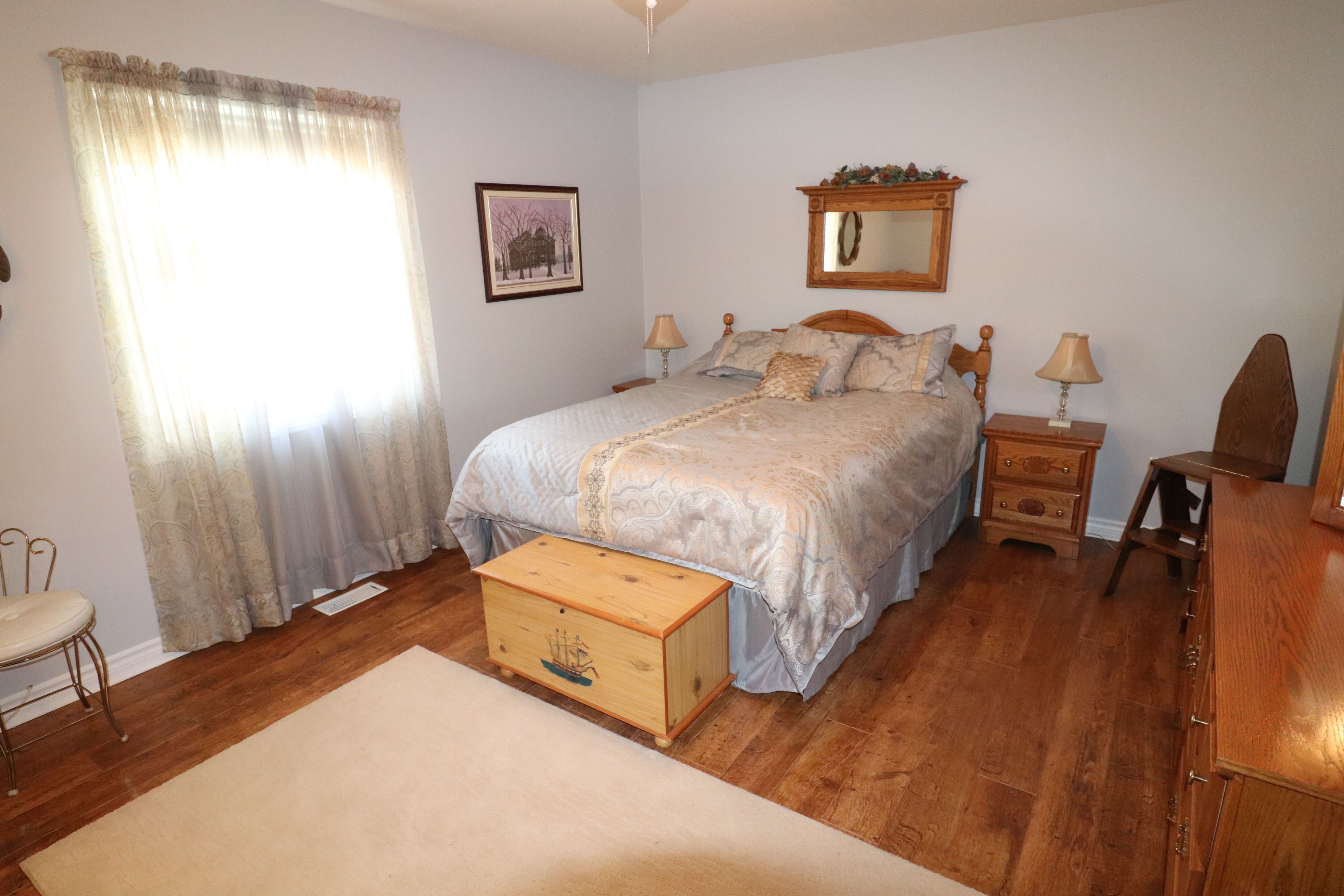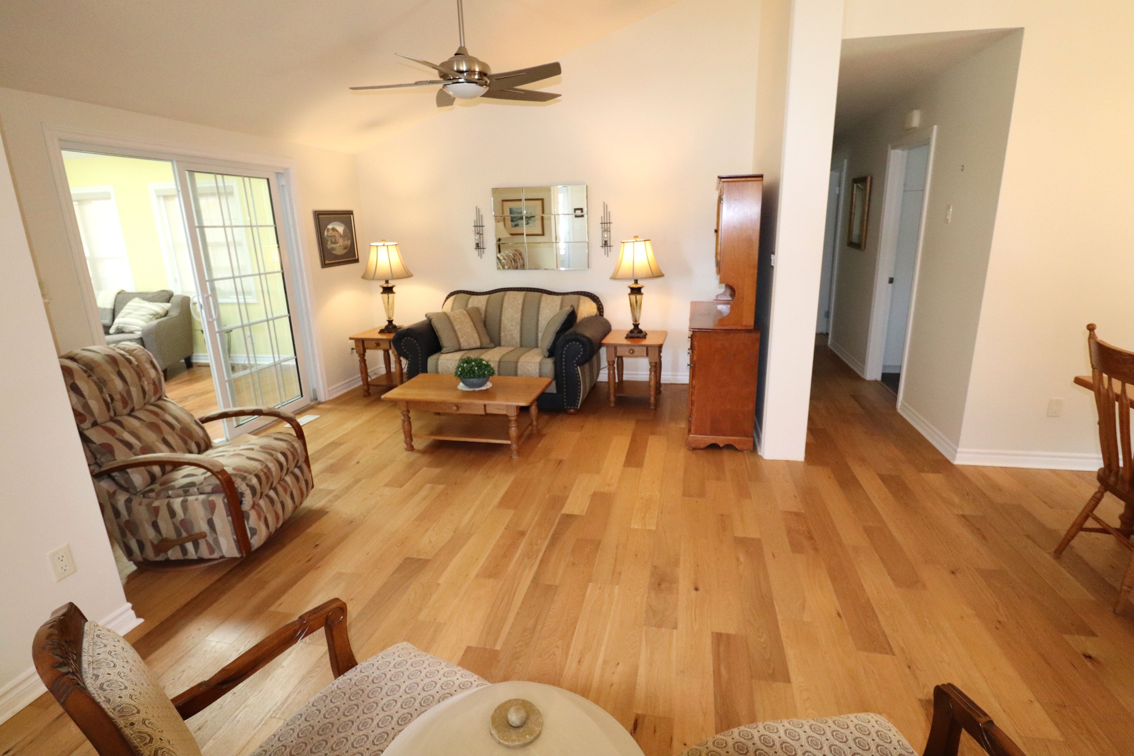 Amazing location! This stunning royal home is situated on one of the best lots at meneset on the lake, an adult lakefront community located just minutes north of goderich. This fabulous home offers a partial seasonal lakeview and is located across the road from a forested area and path leading to the community's beachfront area! As you walk up to the inviting covered front porch, you will know you have found your new home! Step inside and you will be very impressed with the spacious interior including cathedral ceilings and gorgeous wood flooring. The impressive kitchen features newer premium appliances, an abundance of cabinets and several windows for lots of natural light. There is also a formal dining room, living room and stunning family room addition with cathedral ceiling, skylights and natural gas fireplace! Down the hall from the main living area is a laundry room with sink and primary bedroom with 3 pc en-suite bath and walk in closet. There is a spacious second bedroom as well. At the back of the home there is a deck for grilling, concrete patio, private fenced area and large shed/workshop. Services include forced air gas heating, central a/c, high speed internet and whole home generator. An added bonus is the entire roof was replaced in 2022 with long lasting metal. This is a great opportunity to acquire a beautiful home in a very desirable land lease community, complete with its very own club house and recreational activities! If that is not enough, several golf courses, walking trails and lots of shopping are available nearby in the prettiest town of canada!