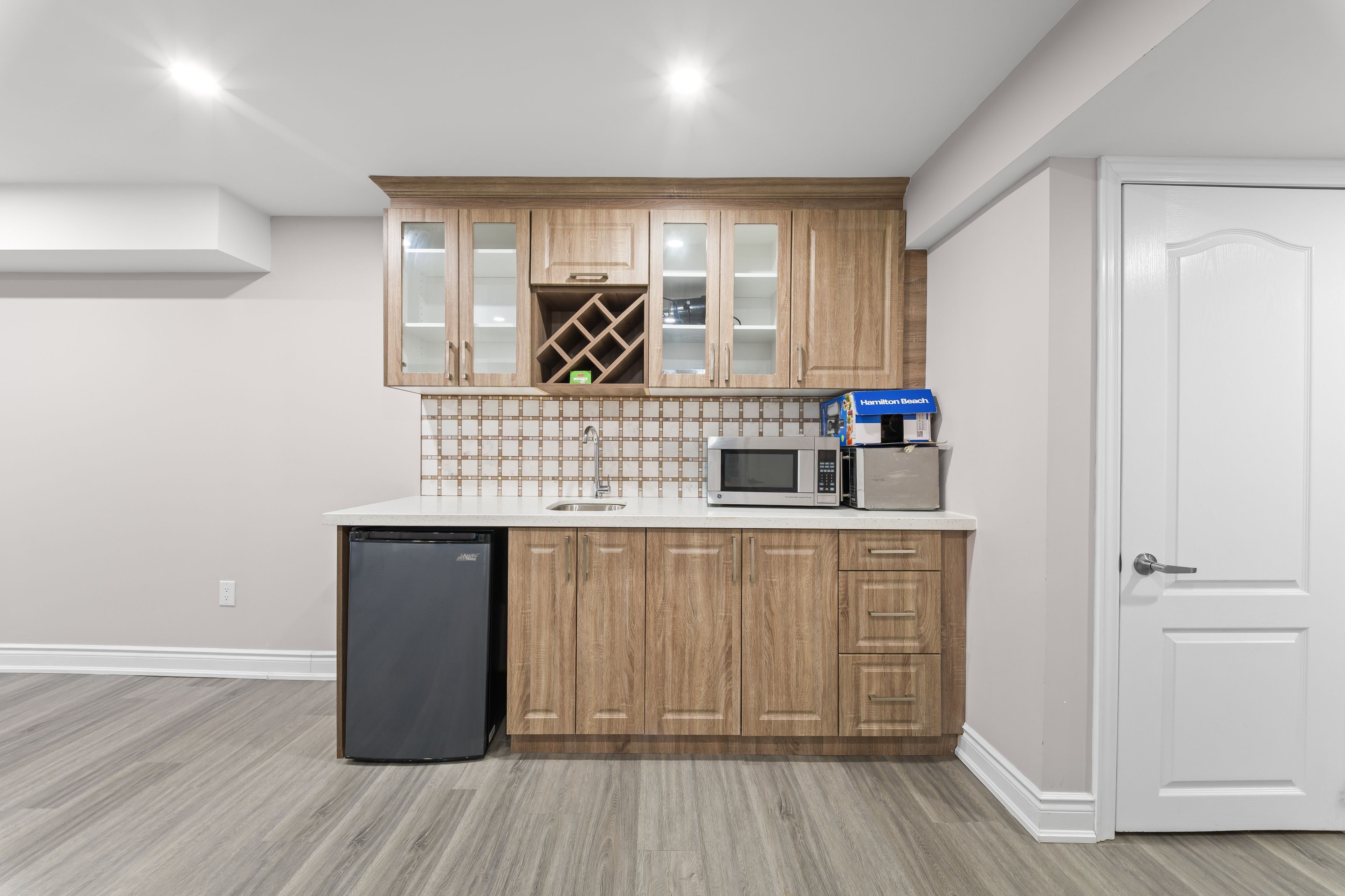 • Finished basement with wet bar and full bath for entertainment or guests.