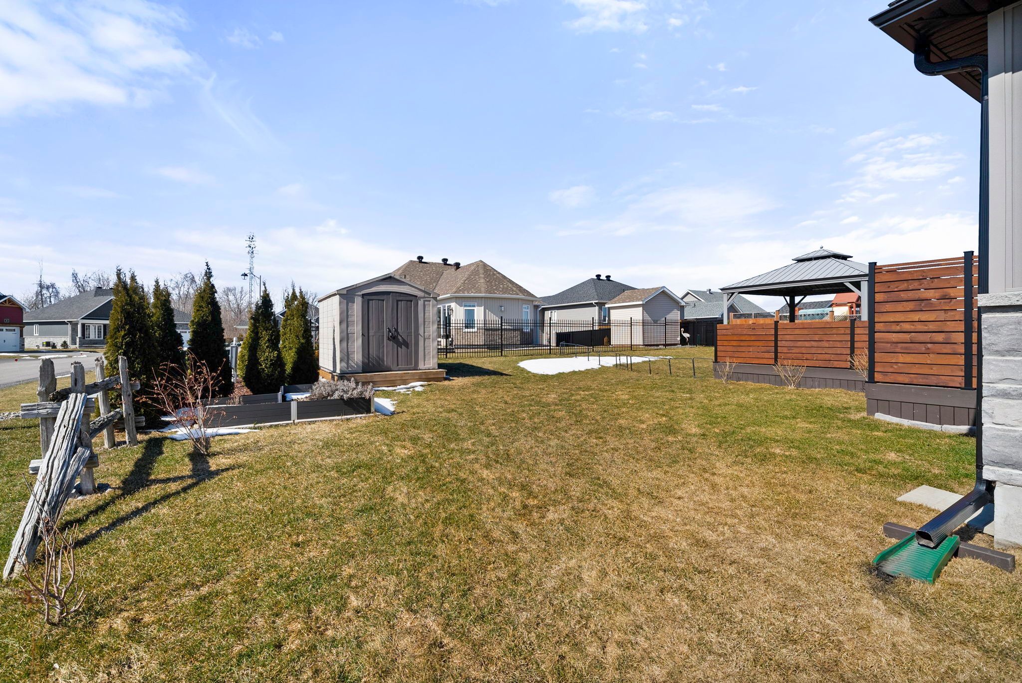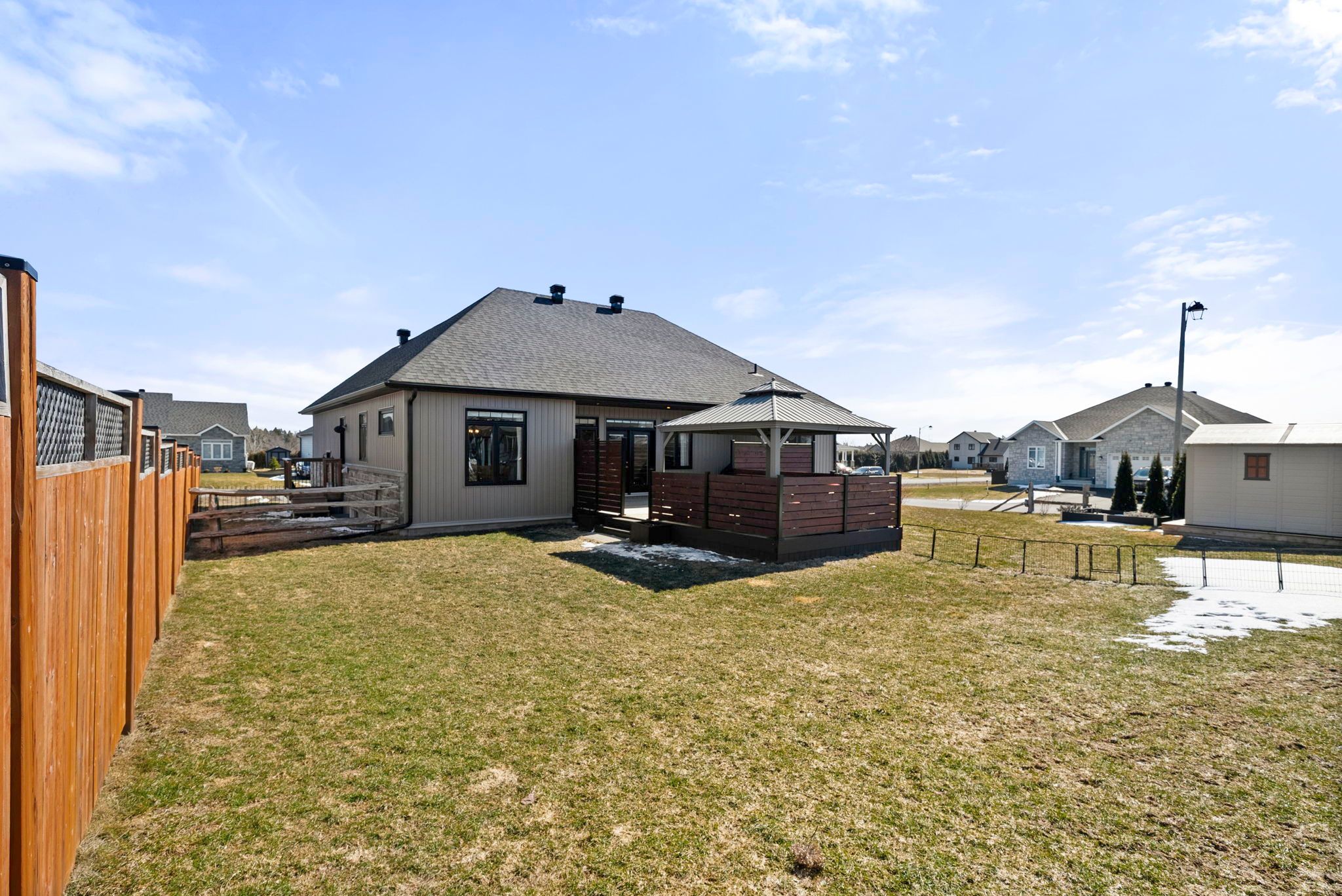 Welcome to this beautifully crafted custom bungalow on jim brownell blvd in the sought-after chase meadows community! Set on a premium lot in one of the area's most coveted neighborhoods, this meticulously maintained home showcases superior craftsmanship, high-end finishes, and a well-planned layout throughout. Proudly owned by the original owner, this expansive residence blends style, comfort, and modern living with ease. The main floor offers a bright, open layout with 9 ft ceilings and hardwood floors provide a functional flow between the living, dining, and kitchen areas. High-end upgrades and details throughout the home give it a more refined, higher-end feel. The kitchen features quartz countertops, ample soft close cabinetry and a 7-foot island that's perfect for everyday living and entertaining. The patio doors lead out to a spacious deck with gazebo and privacy fencing perfect for relaxing or spending time with family and friends. There are 3 bedrooms on the main level, including a large primary bedroom with an ensuite featuring a porcelain shower, quartz countertops along with a second full bathroom. The laundry/mudroom on the main floor, offers direct access to both the double car garage and the backyard. The fully finished basement adds valuable living space with a large rec area, a den, a fourth bedroom for guests, hobbies, or a home office. And very large partially fenced backyard. The partially fenced backyard offers a nice balance of space and privacy. Located close to parks, walking paths, and the waterfront, this home is perfect for families or retirees looking to downsize into a comfortable, low maintenance lifestyle in a quiet neighbourhood. 24 hour irrevocable on all offers