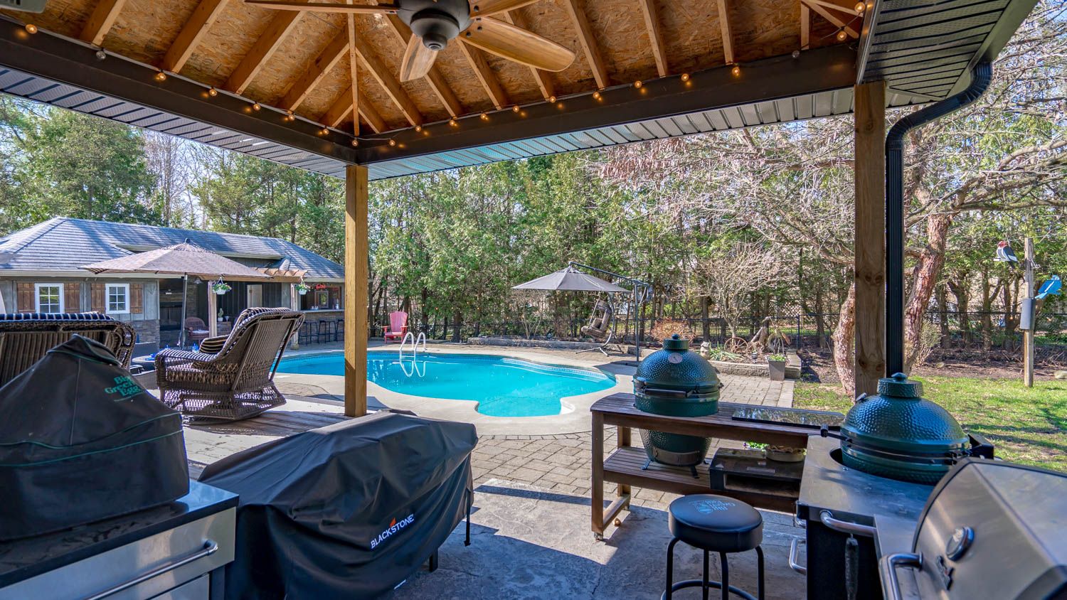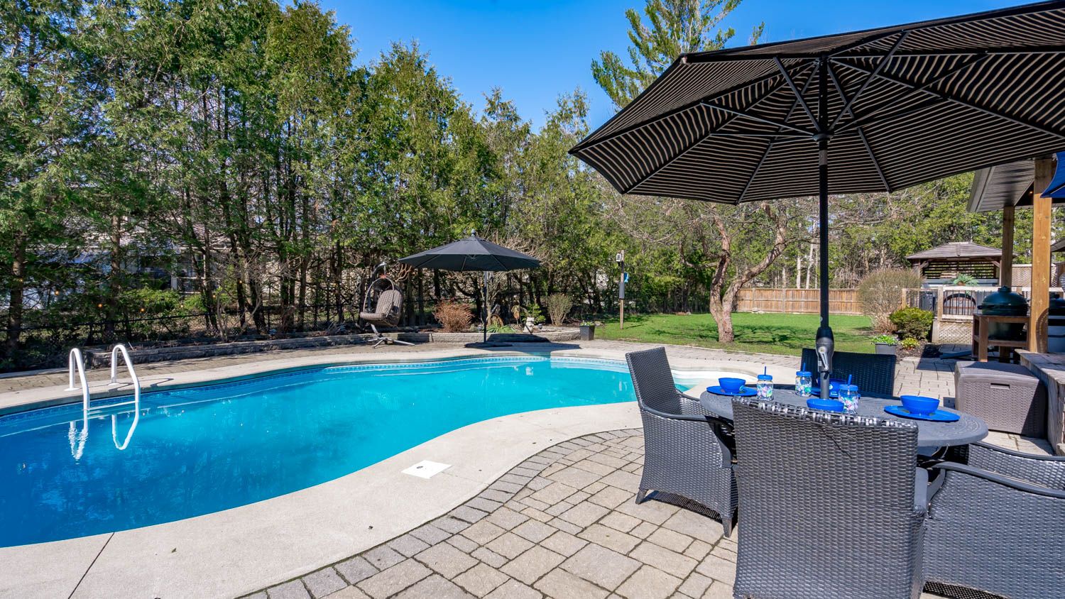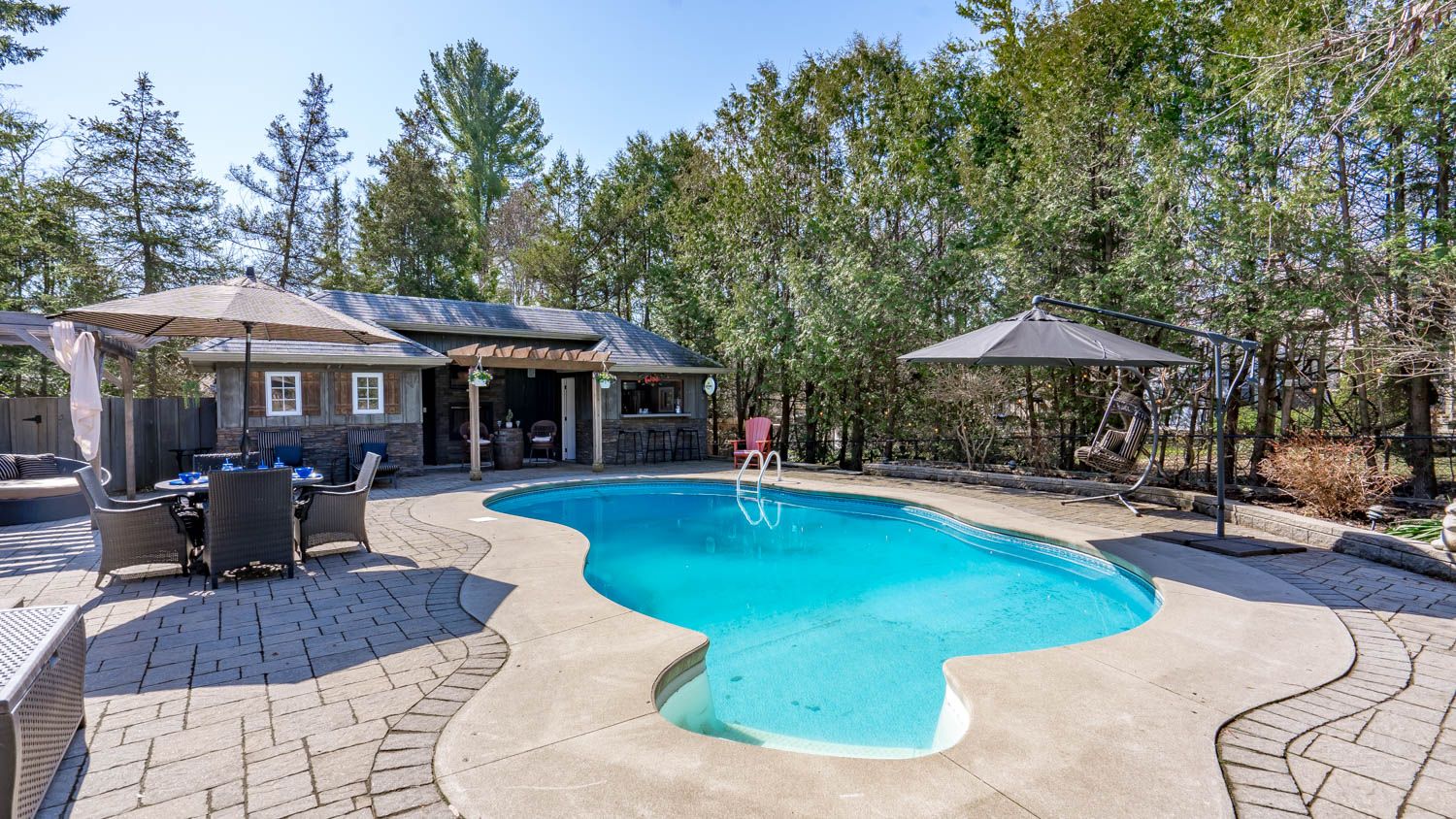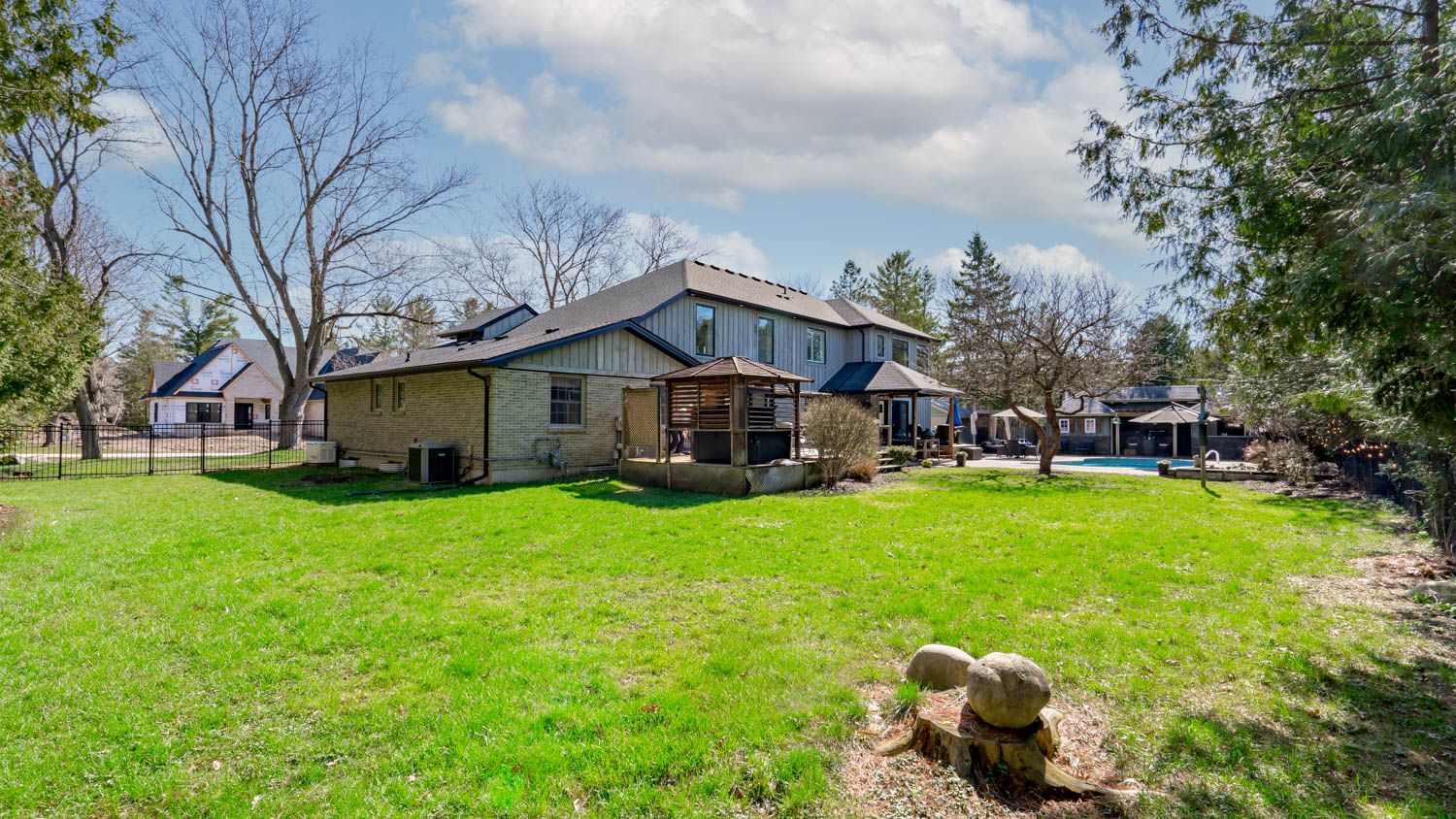 Welcome to this exceptional luxury estate in the highly sought-after community of kilworth. Offering an impressive 3,297 square feet above grade, this beautifully updated home blends timeless elegance with modern comfort, delivering incredible value for discerning buyers. Set on a spacious 0. 46-acre corner lot, it offers abundant privacy and peace, exactly what is needed to come home to after a hectic day. Featuring 3+1 spacious bedrooms and 2+2 well-appointed bathrooms, this home is thoughtfully designed for both everyday living and entertaining. The interior has been meticulously updated throughout since 2019, showcasing high-end finishes, refined details, and a seamless flow from room to room. With the addition of a second storey, the large, updated windows throughout are breathtaking, along with a new furnace, central air, shingles, an electrical panel, and new flooring throughout, on top of the beautiful kitchen and bathroom renovations. The basement features an office space, games room and bar area that is perfect for entertaining. Additionally, the basement has a bathroom rough-in and the main floor laundry room also has a shower rough-in. Ideally located, this property offers convenient access to parks, scenic walking trails, and a full range of nearby amenities. Step outside to your private backyard retreat, complete with a sparkling pool, relaxing hot tub, and an impressive pool house with a bar, perfect for hosting unforgettable summer gatherings. Surrounded by lush greenery and offering ample outdoor space, this property provides the perfect balance of luxury and tranquility. This is a rare opportunity to own a turn-key estate in one of the area's most desirable locations, where style, space, and lifestyle come together effortlessly.