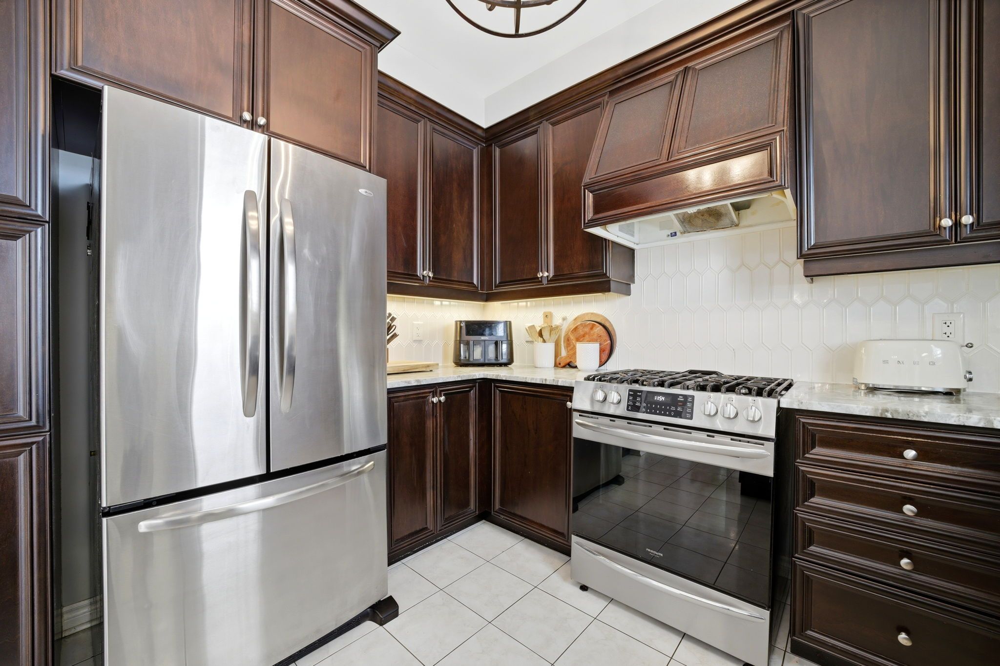 • Eat-in kitchen featuring stainless steel appliances and a breakfast bar.