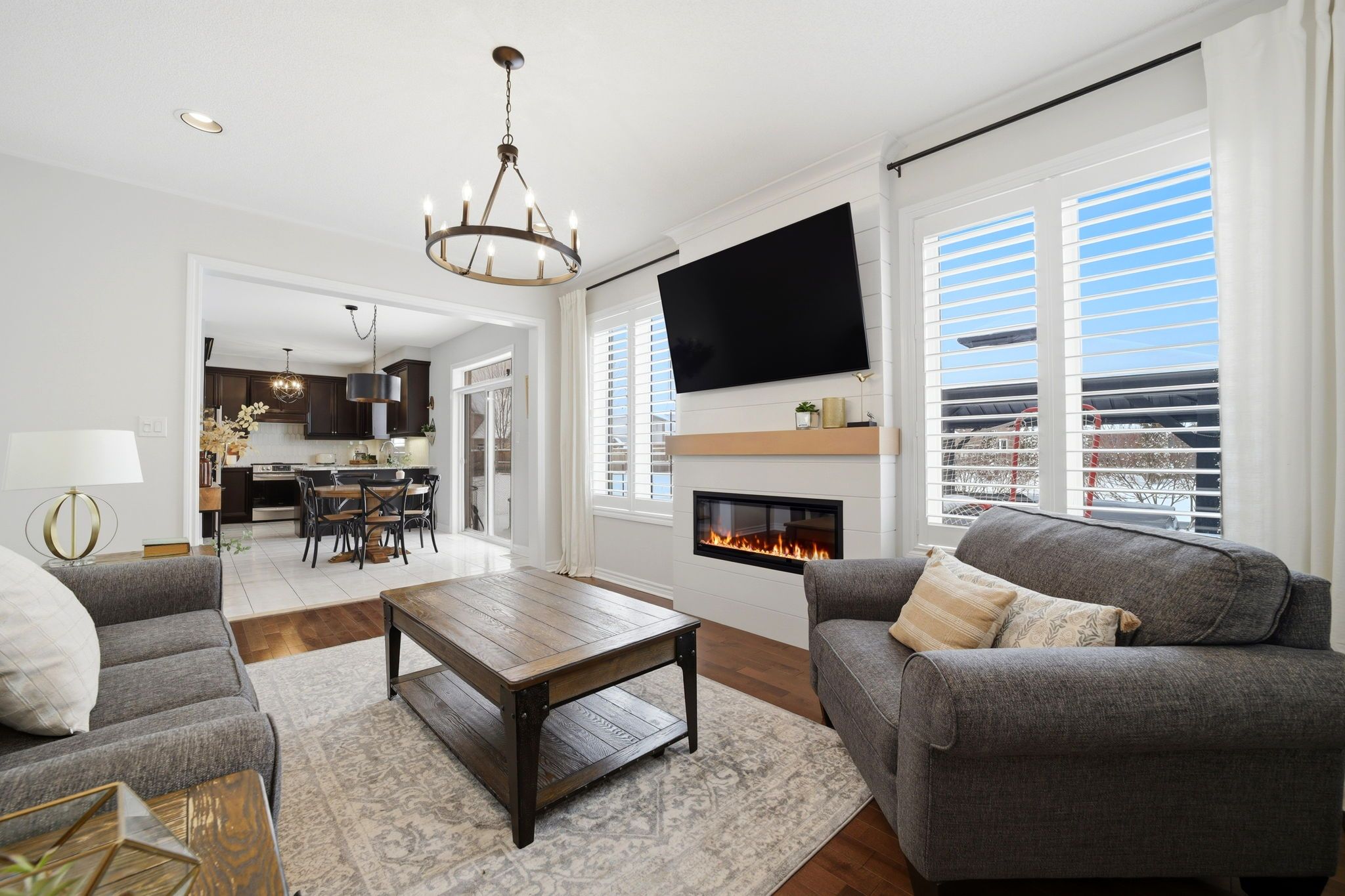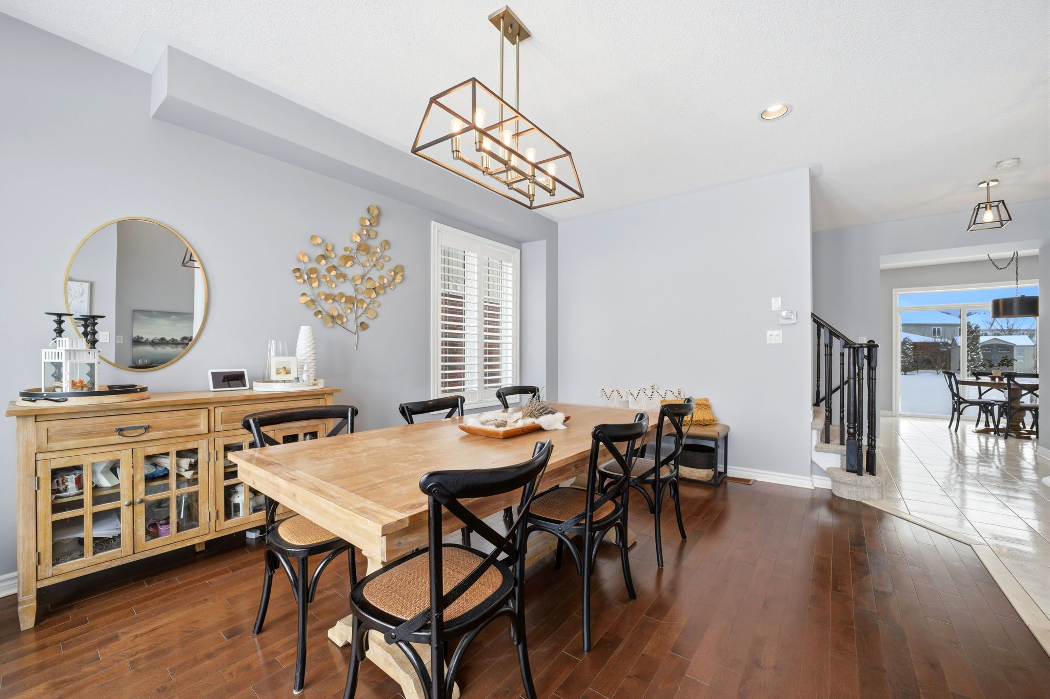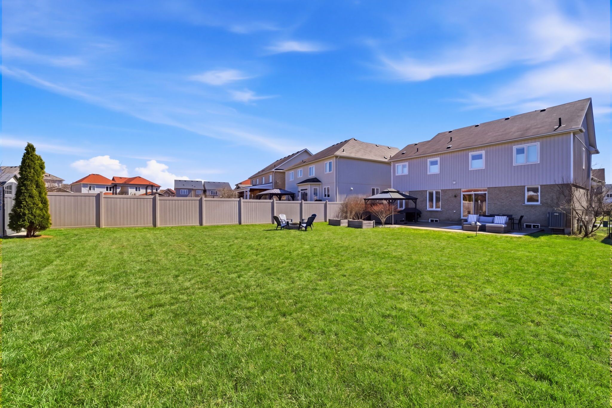Welcome to this beautiful family home offering modern comfort and exceptional outdoor living in the growing community of angus. Bright and spacious throughout, the home features 9-foot ceilings, elegant hardwood flooring, ceramic tile, and california shutters throughout. The inviting eat-in kitchen, a convenient breakfast bar, stove, and stainless steel appliances. Step outside to a large poured concrete patio overlooking a massive, fully fenced backyard situated on an impressive lot with up to 183 feet of depth complete with a sprinkler system and a relaxing hot tub-perfect for entertaining family and friends. Additional highlights include a top-of-the-line water filtration system, new furnace (2026), stone landscaping at the front for impressive curb appeal, main floor laundry, and inside entry to the double garage. Enjoy the convenience of no sidewalk, allowing for extra driveway parking and easier winter maintenance. The spacious primary bedroom retreat features a walk-in closet and a full ensuite with a luxurious soaker tub and separate shower. Three additional generously sized bedrooms provide plenty of room for a growing family. The full unfinished basement creates the perfect opportunity to design the space according to your future vision-whether it's a recreation room, home gym, theatre, or in-law suite. Located in the family-friendly community of angus, this home is close to parks, schools, recreation facilities, and everyday amenities, while also benefiting from low property taxes-making it an outstanding opportunity for homeowners.