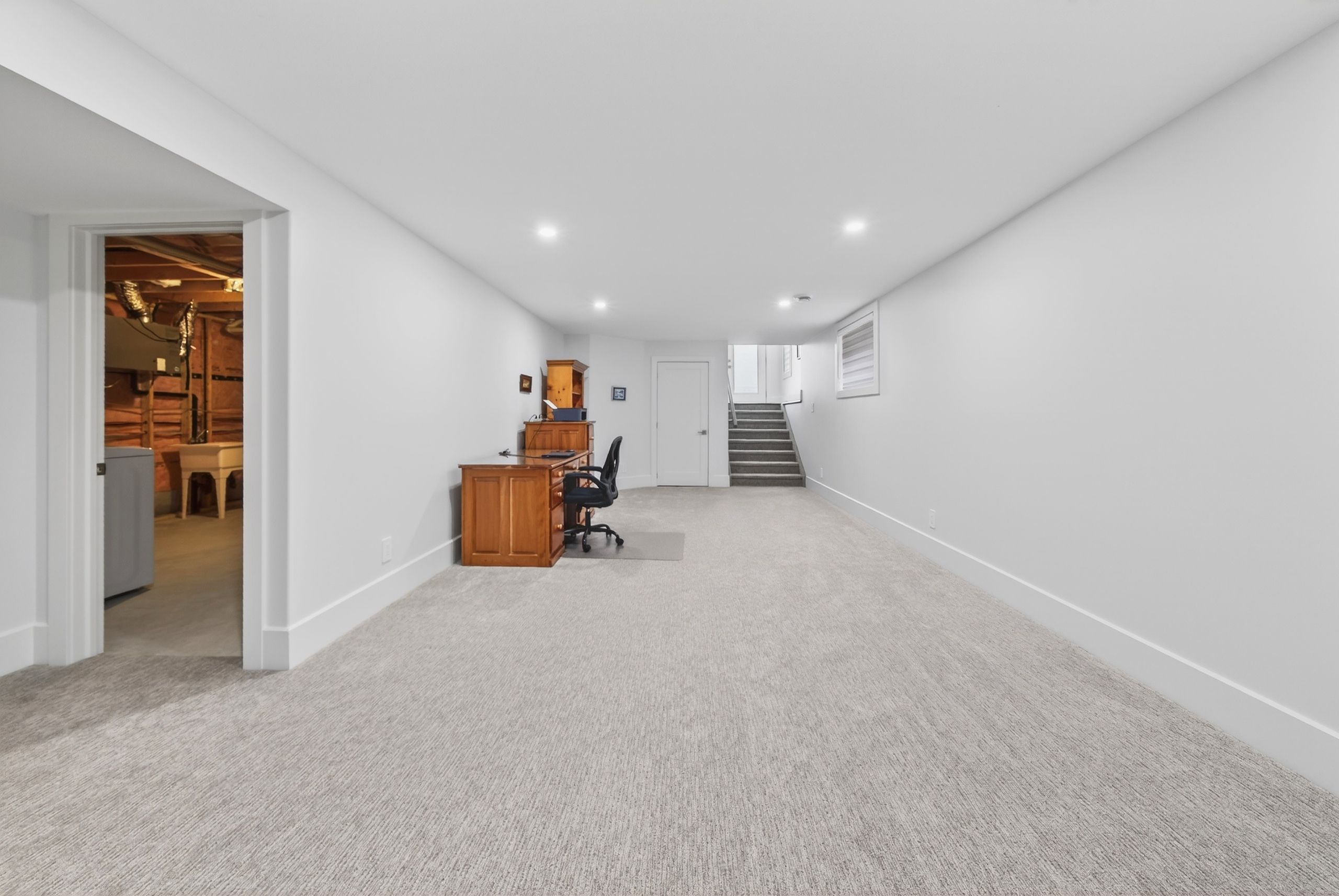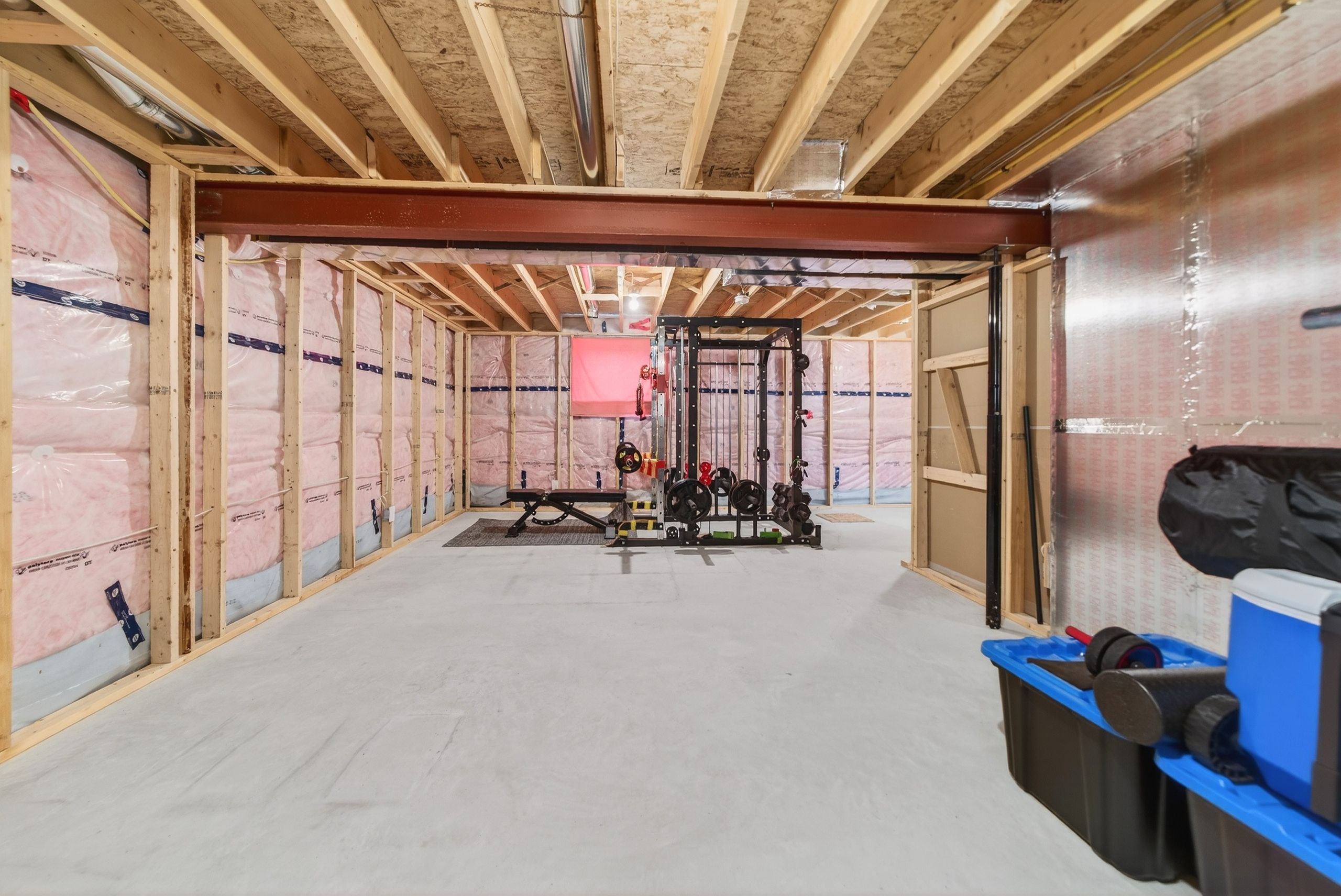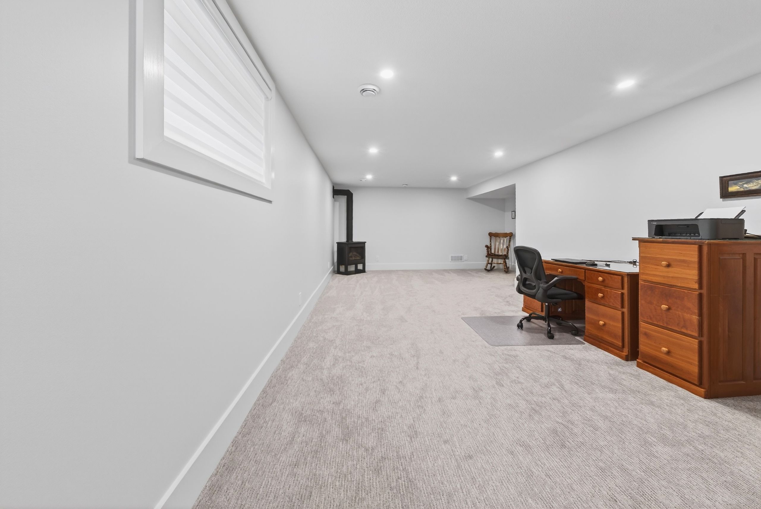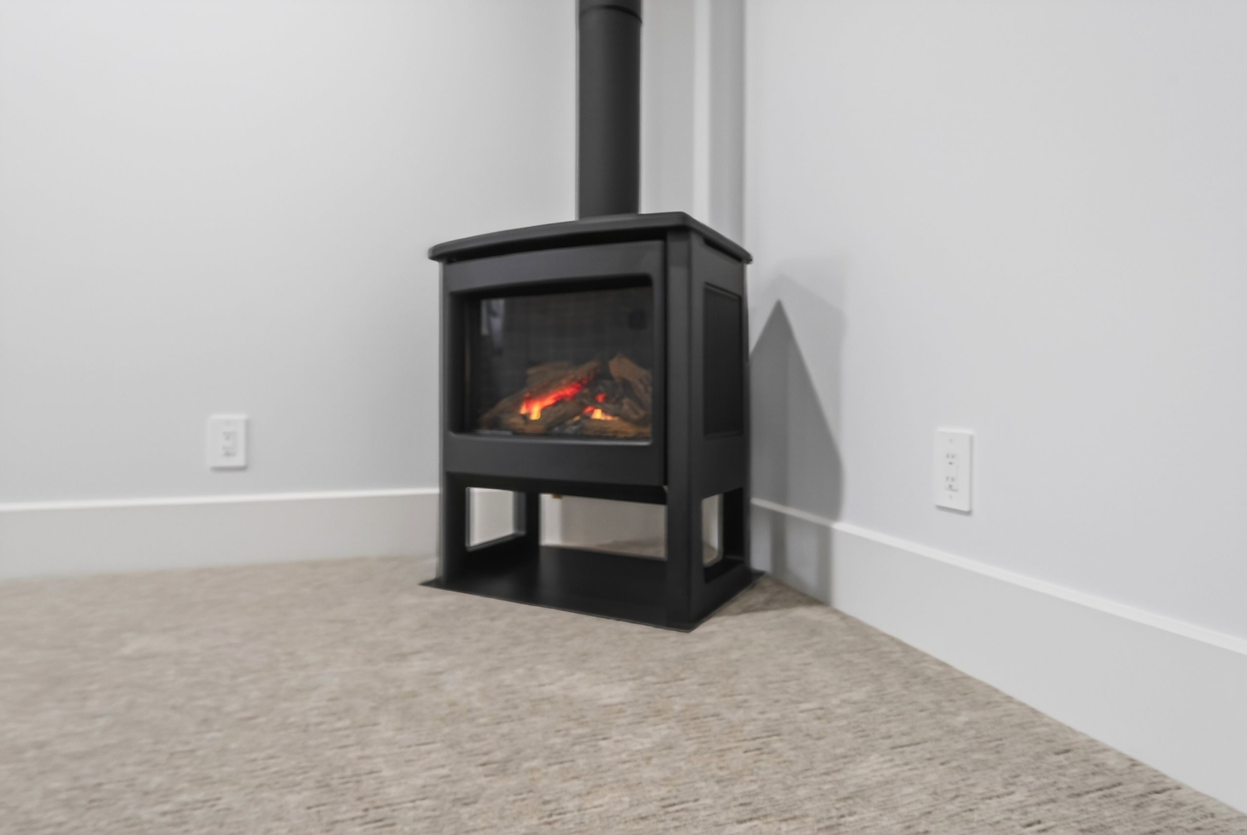 • Large finished recreation room downstairs with a cozy gas fireplace.