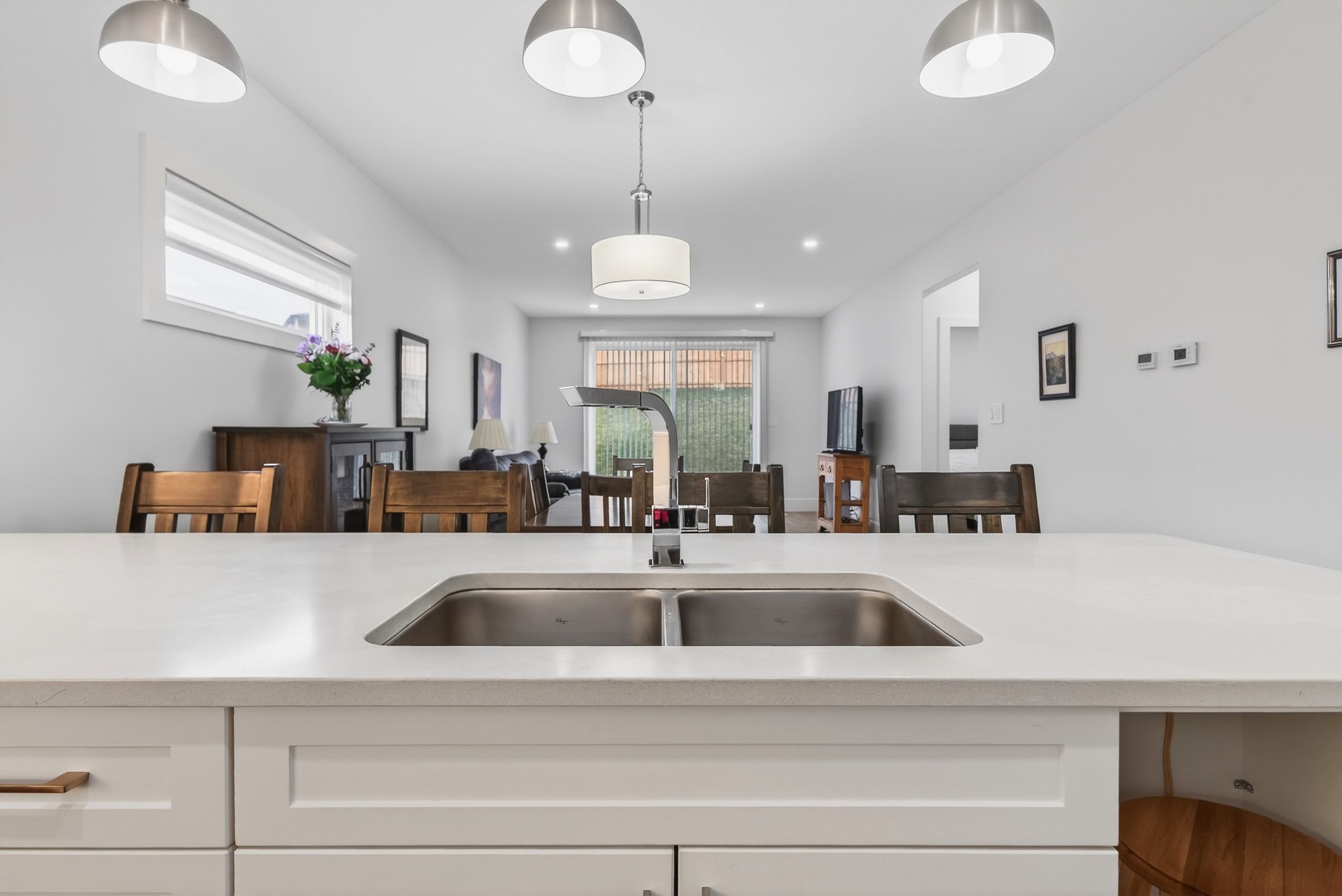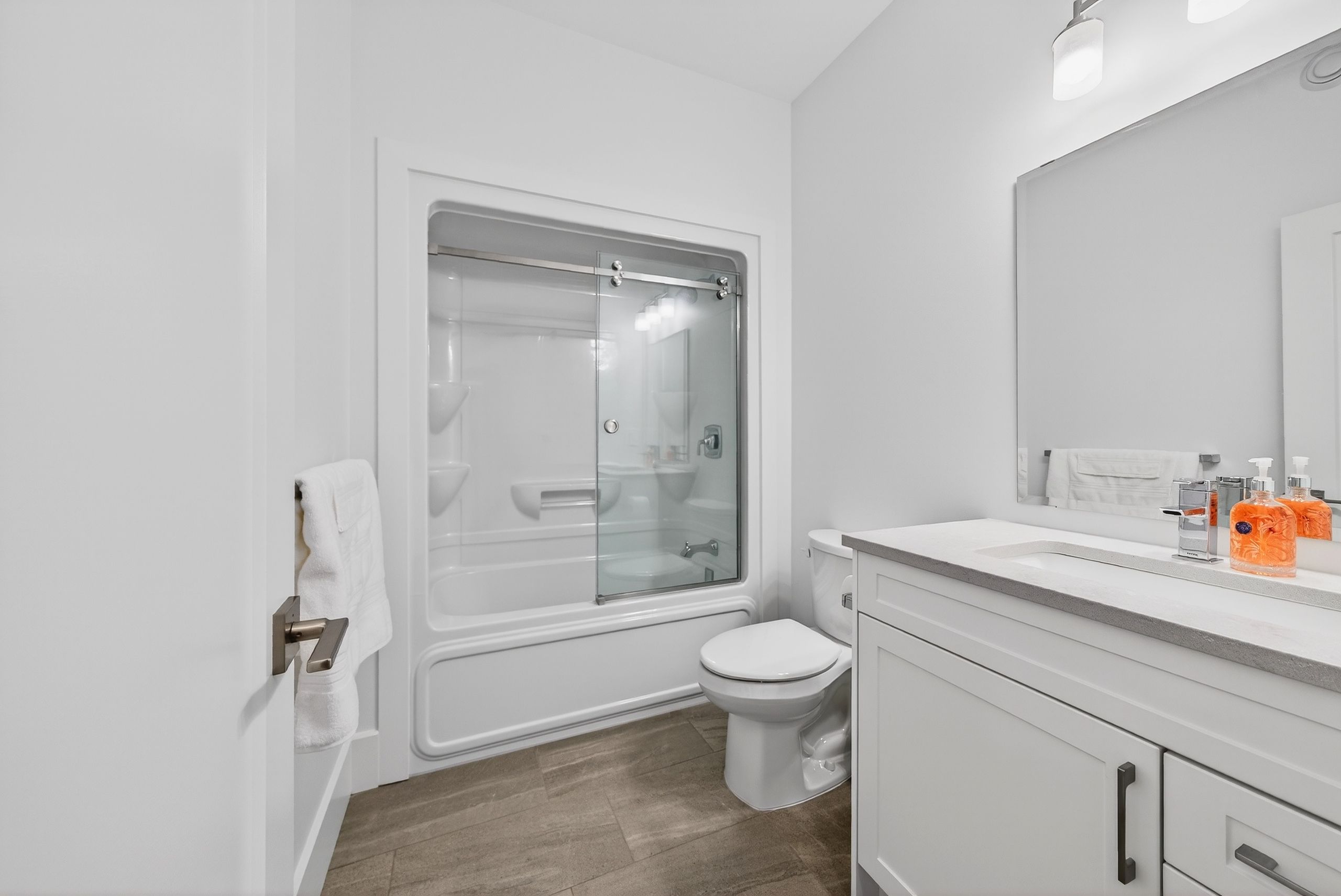 • Quartz countertops in kitchen and bathrooms offer a stylish touch.