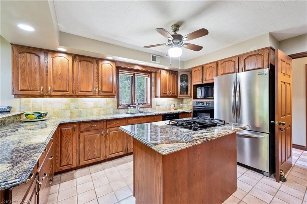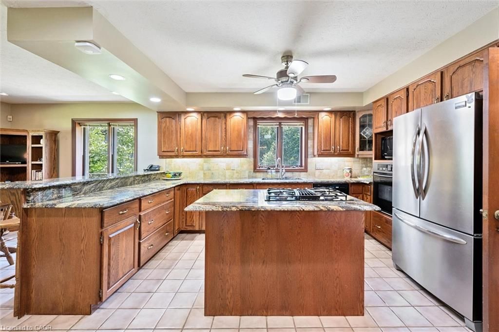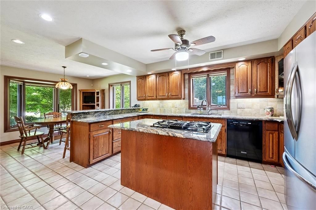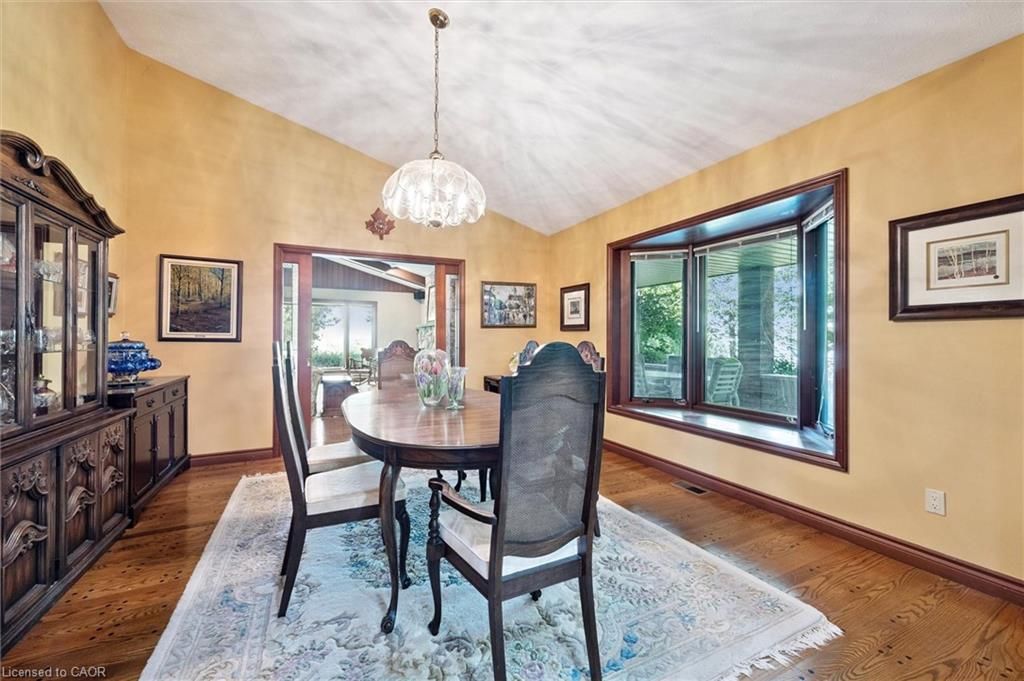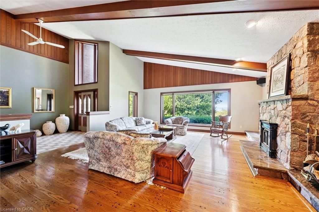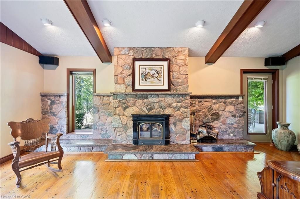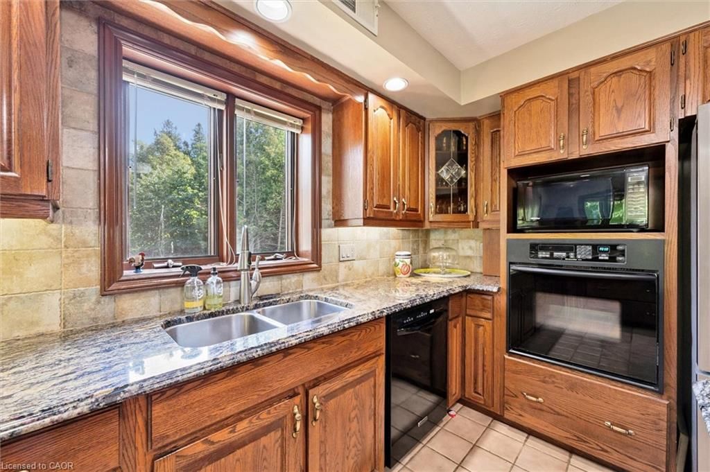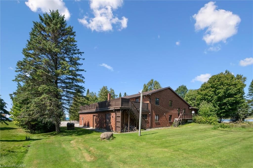 Welcome to 74 miramichi bay saugeen shores! Magnificent large side split home sits directly on miramichi bay. Panoramic views of lake huron on multiple sides. Ample windows bringing in the sunshine. This home was built for entertaining, featuring 5 bedrooms. Wonderful for family and friends. This home has multiple eating areas and outdoor spaces. Approximately 1/3 of acre is beautifully landscaped with mature trees and perennials, interlock driveway, ample parking, concrete walkways, steps and retaining walls. Two storey entry, open to a vaulted great room accented with a wall to wall stone wood burning fireplace and insert. Accented with custom wood beams , solid oak floors and other mill work. Large picturesque window with breathtaking views, over looking lake huron. The formal dining room is open to kitchen and great room for easy family gatherings for all seasons. The full eat in area allows for dining of 6 and exists directly onto. Large covered porch with panoramic lake views. This area has always been the heart of the home! The second level features 3 bedrooms and a large bathroom. One of the bedrooms features a "bunky" for sleepovers. The cozy lower level with wood stove and 2 guest bedrooms on ground level, above grade, one with ensuite bath. There is a huge deck that spans the entire garage area with most magnificent views of the lake, where you can take in the renowned magical sunset views! This home was built to exacting standards, and is heavily insulated to survive the harshest weather to ensure you can enjoy living here year round. There are many trails to hike in the woods directly behind the home as well as the lake trail that runs along the shoreline in front of the home. Port elgin and southhampton, shopping, marina and community centres, nearby. Wonderful year around living!