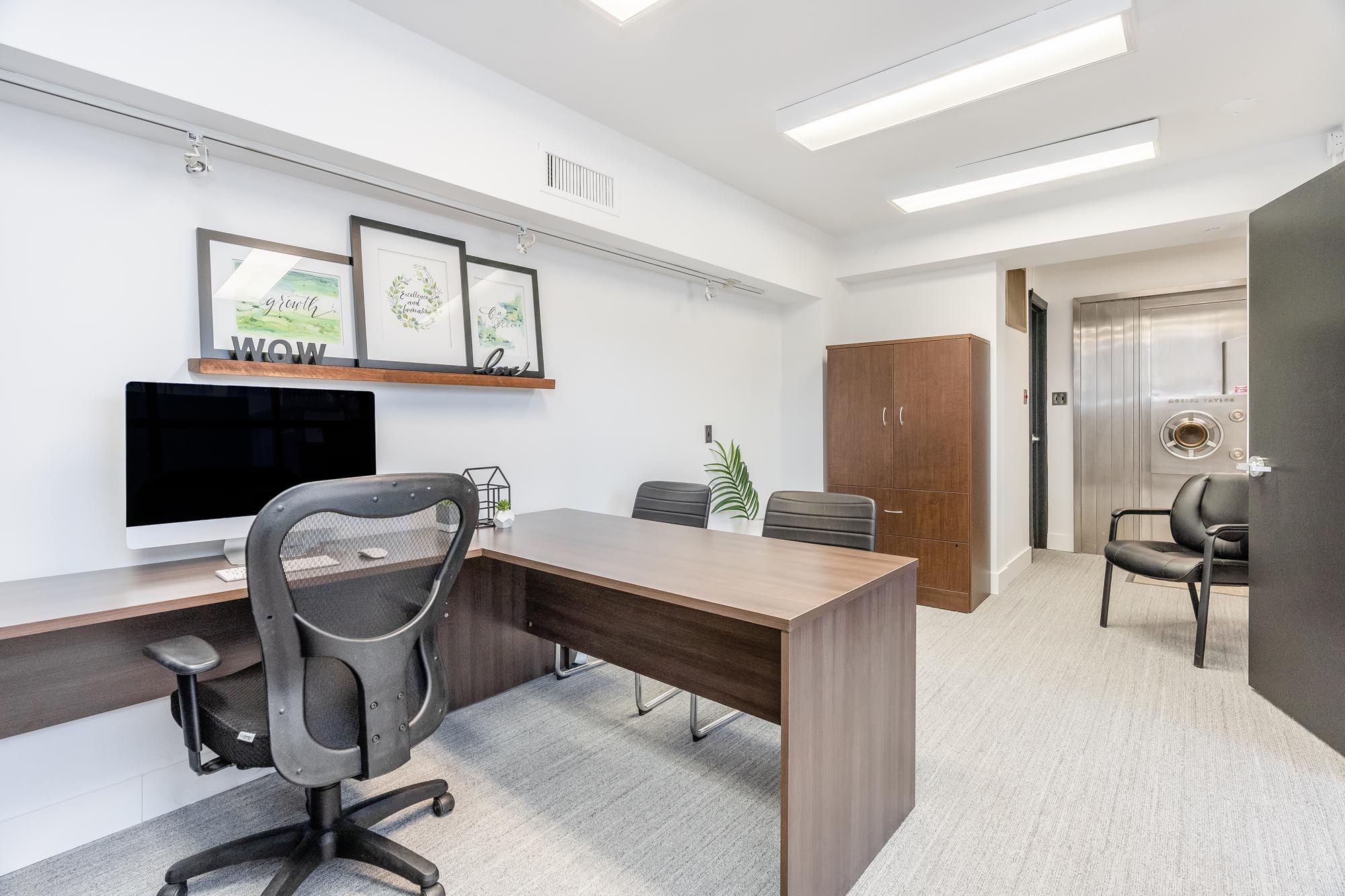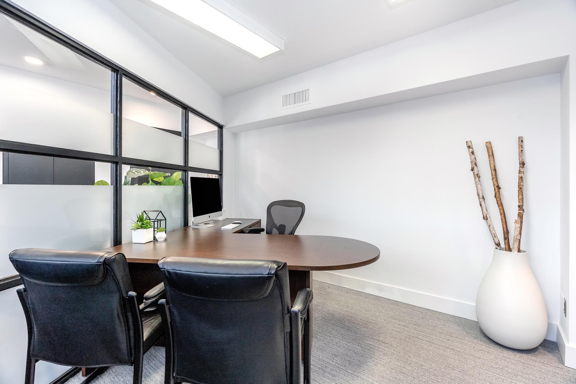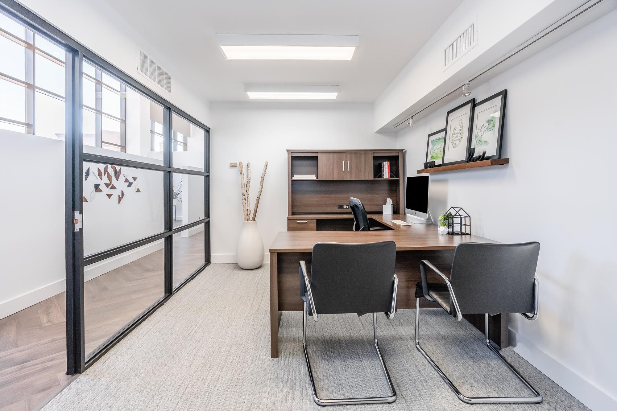 • High ceilings and natural light create an inspiring professional atmosphere.