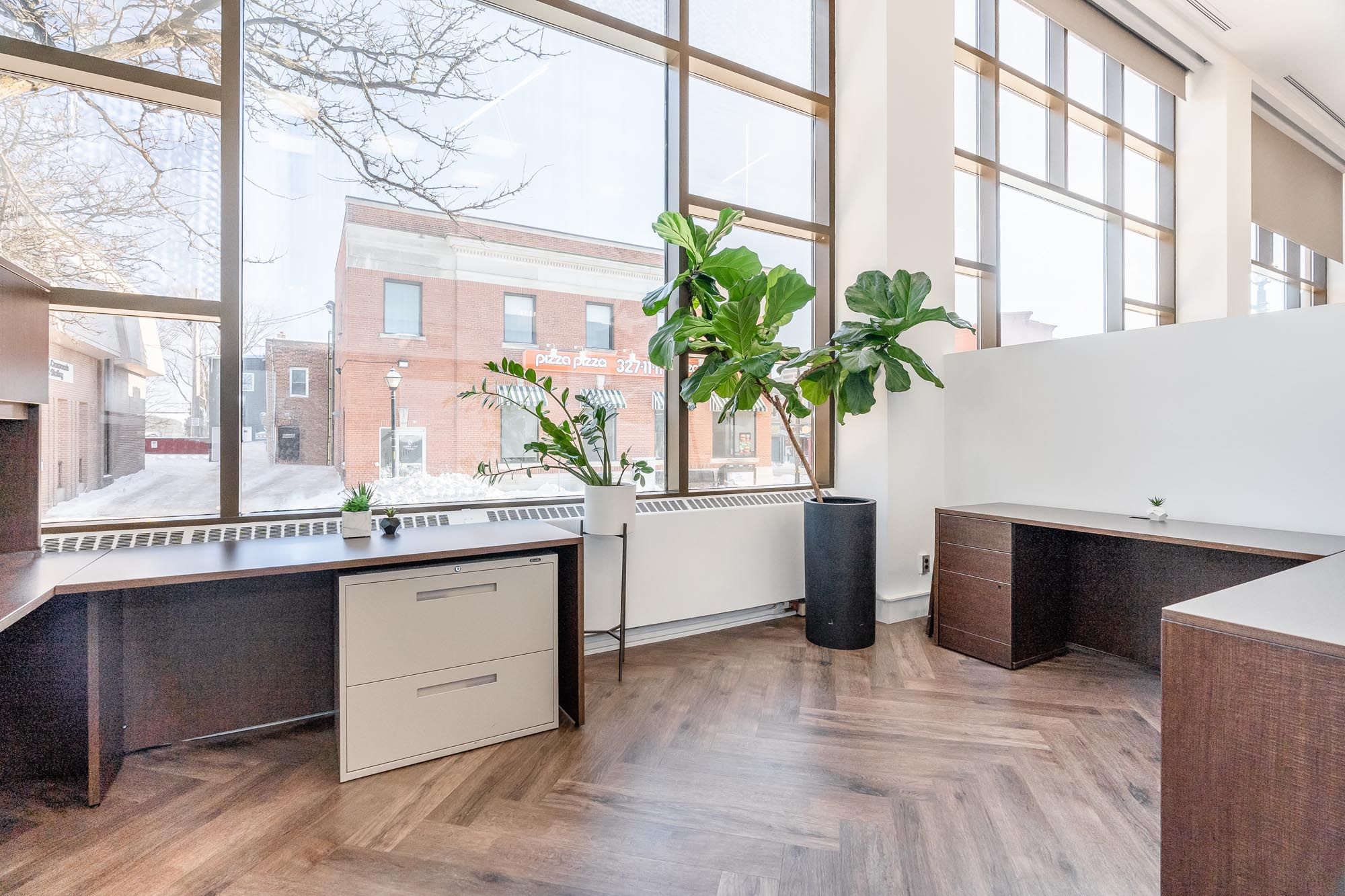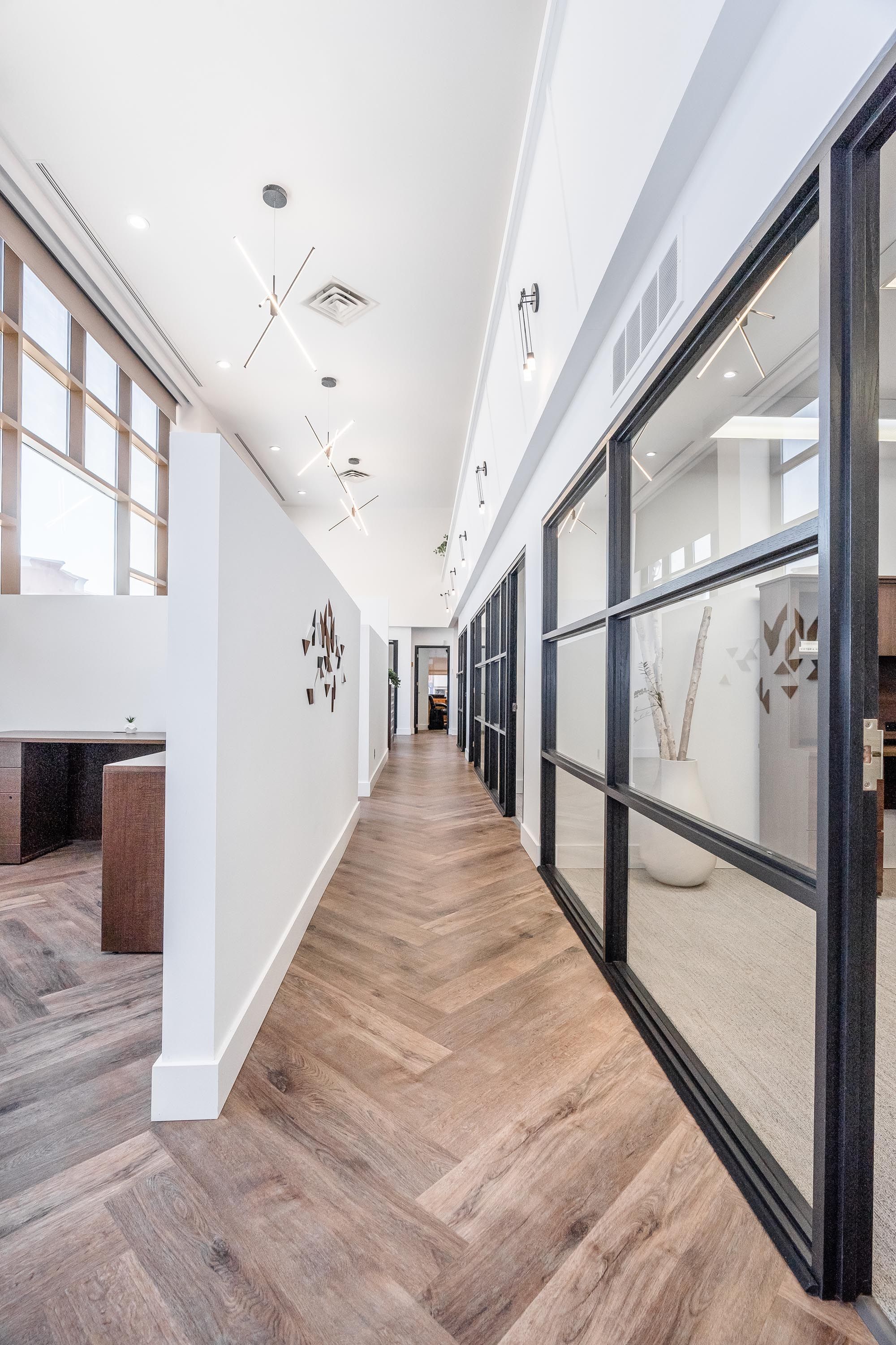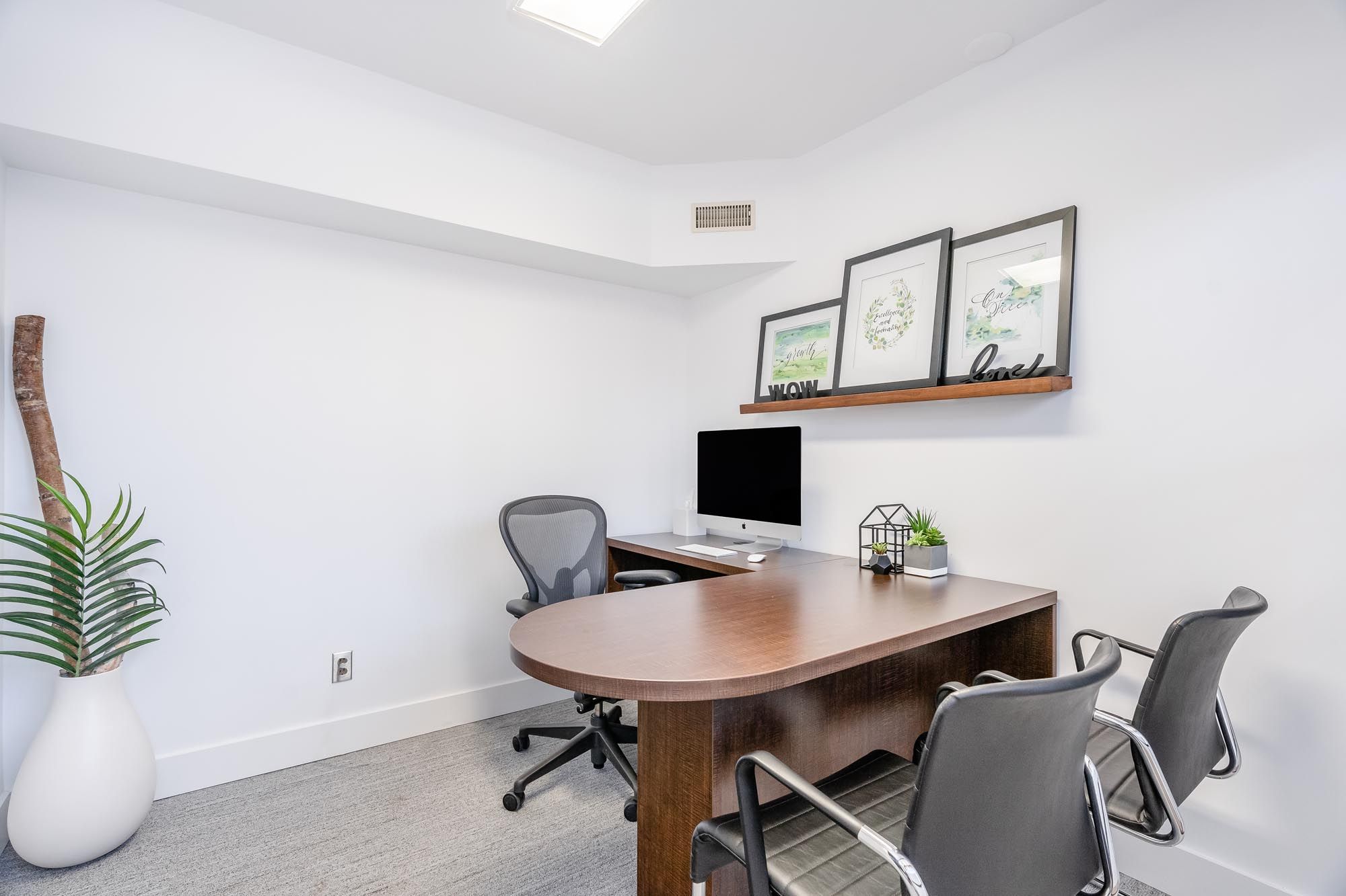 • High ceilings and natural light create an inspiring professional atmosphere.