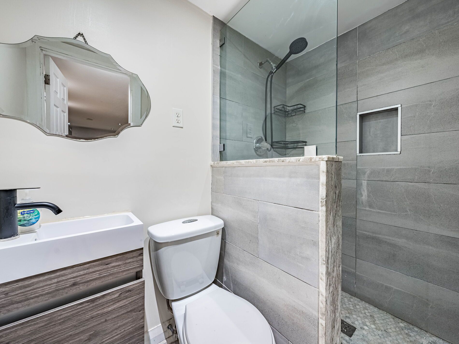 Welcome to 74 montrose avenue. This beautifully upgraded 3 bedroom semi- detached home located in one of toronto's downtown most desirable neighborhoods- the iconic trinity bellwood's. This prime location offers unbeatable convenience with transit, parks, schools, restaurants, offices, and everyday amenities just steps away, including the popular trinity bellwood's park. Enjoy the fully upgraded main floor with modern design. Engineered hardwood floors, smooth ceilings with pot lights, and a seamless open-concept layout that flows from the living and dining area into a gourmet kitchen featuring custom gray cabinetry with floor to ceiling, quartz countertops and backsplash, black stainless steel appliances, whirlpool oven with wifi pot filler, bar fridge. Staircase is fully upgraded with wrought iron spindles. Upstairs , spacious bedrooms with hardwood flooring offer comfort including a primary bedroom with custom-designed closet. The fully upgraded bathroom with walk-in shower features heated flooring ,offering comfort and style. The fully finished basement includes laminate flooring with a walkout features a 3 pcs bathroom, kitchenette, laundry room with lg washer (wifi)/dryer and utility sink. The living area offers excellent flexibility for extended family use , or additional income potential. This home comes with an energy-efficient rental tankless water heater for on-demand hot water. It has a sump pump. Electrical panel has been upgraded to 100 amps. Enjoy outdoor living with a private backyard fully interlock featuring both a patio and deck, perfect for relaxing or hosting guests. This gorgeous home also boasts a rare 1. 5 garage, a durable metal roof and quality upgrades throughout. A truly exceptional home in a vibrant, high- demand neighborhood- everything you need is right at your fingertips