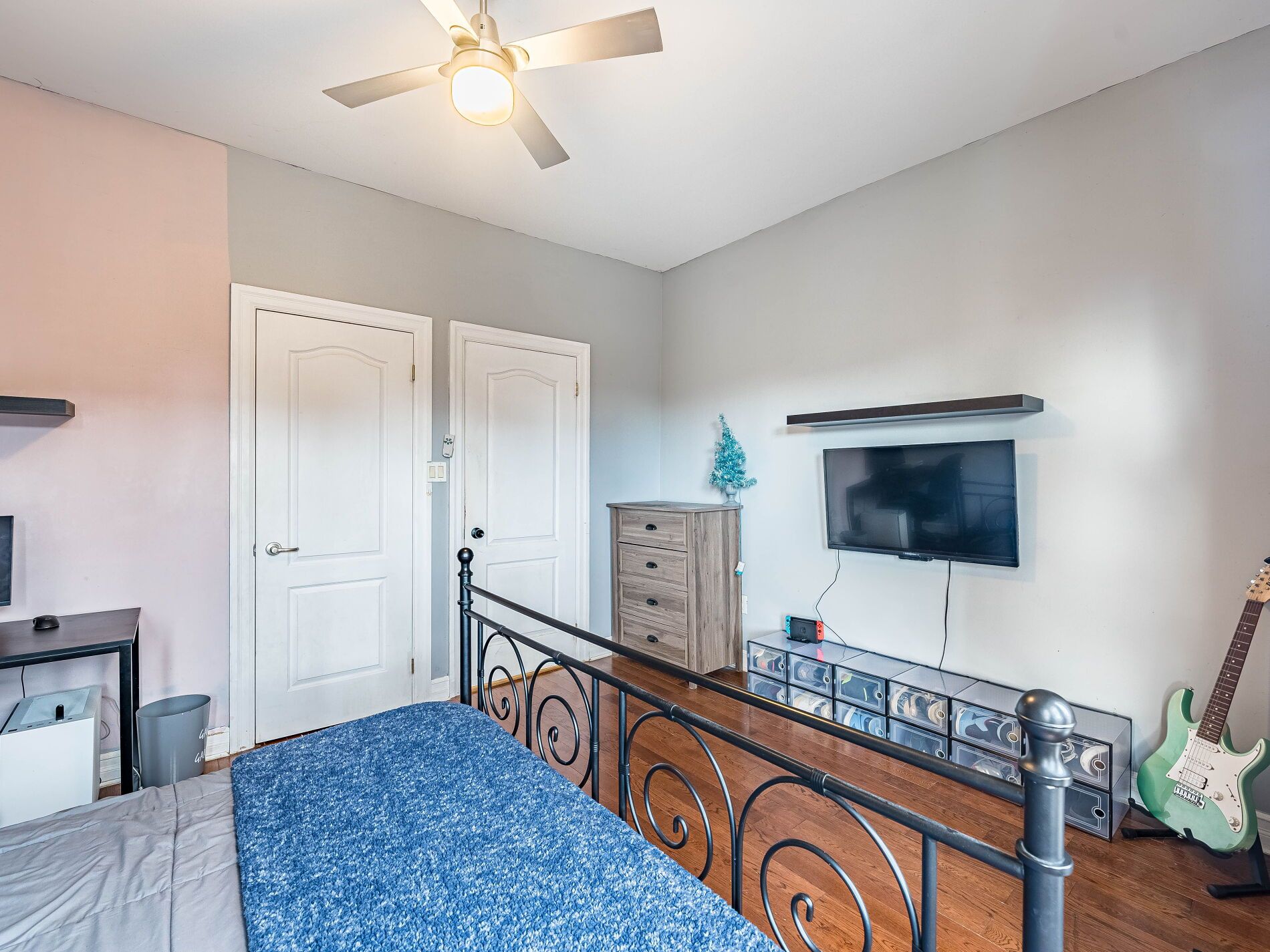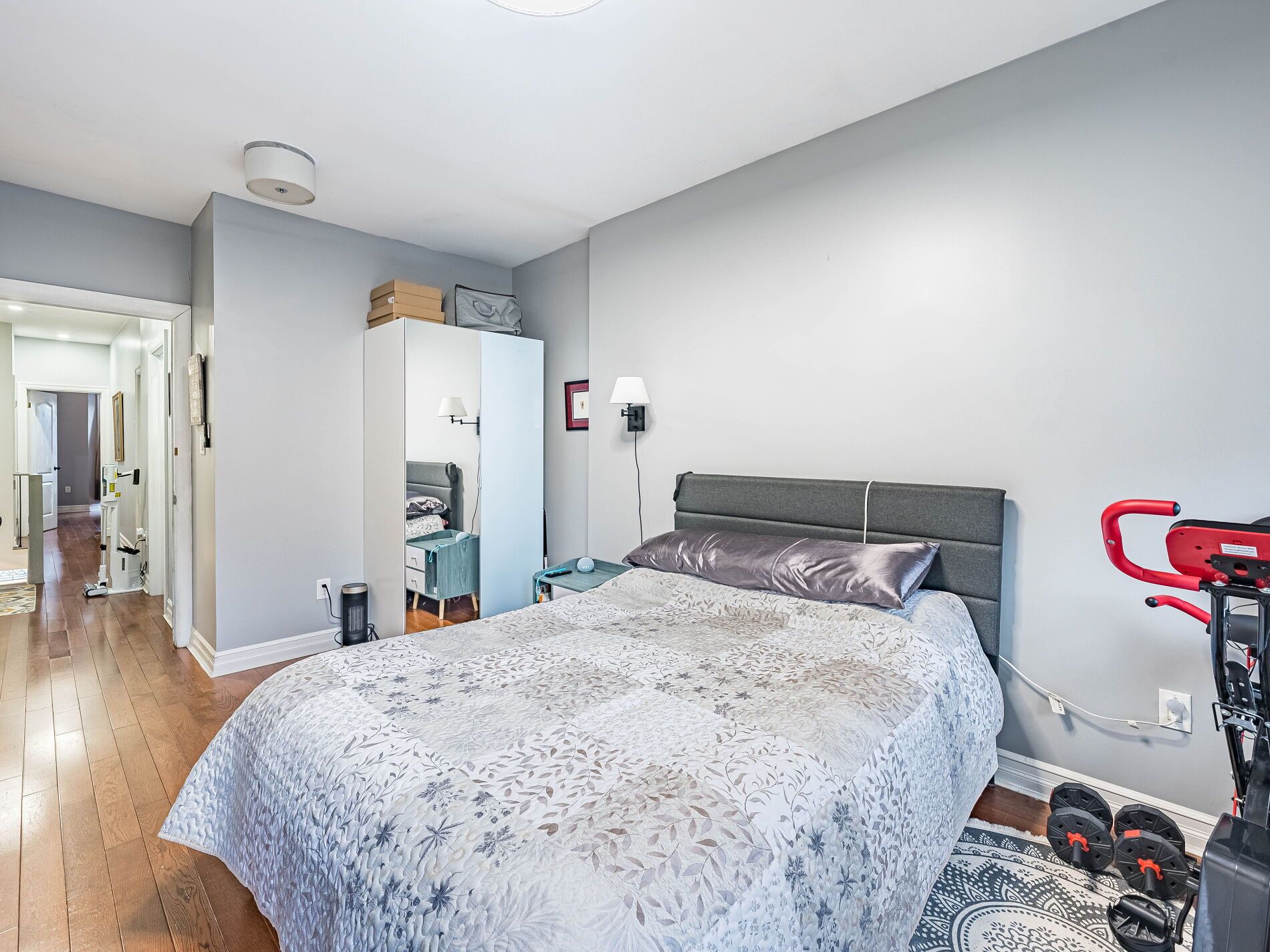 • Spacious upstairs bedrooms featuring hardwood and custom-designed closet.