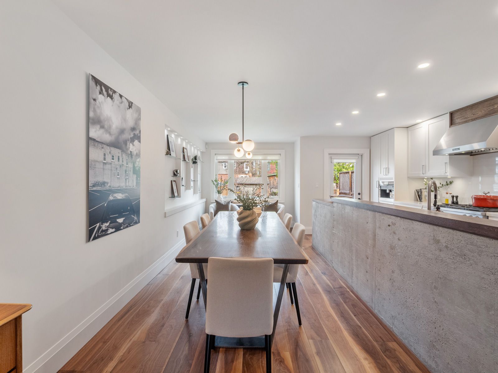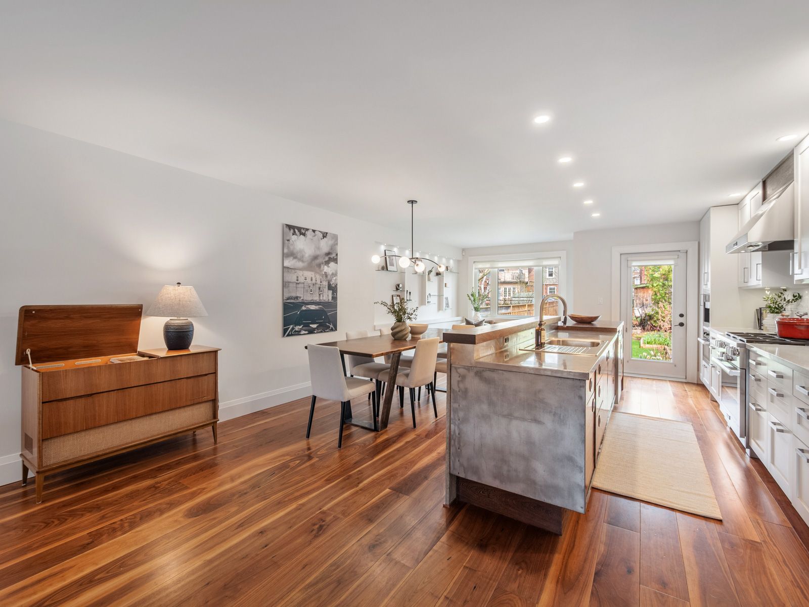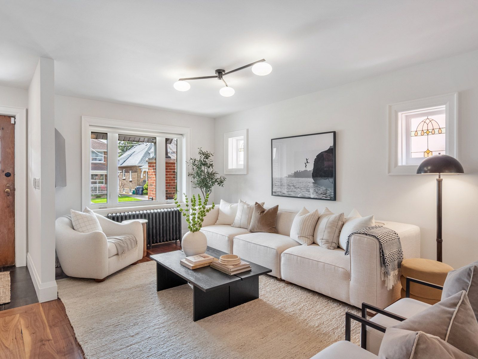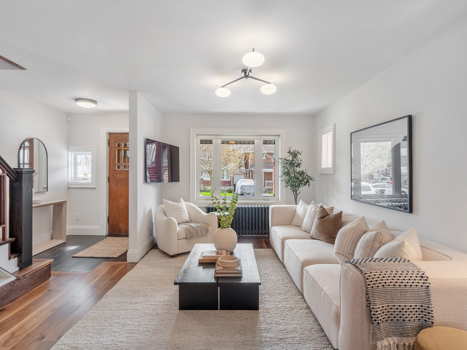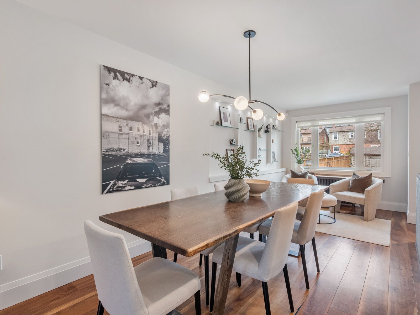 • Spacious main floor filled with natural light and rich hardwood floors.