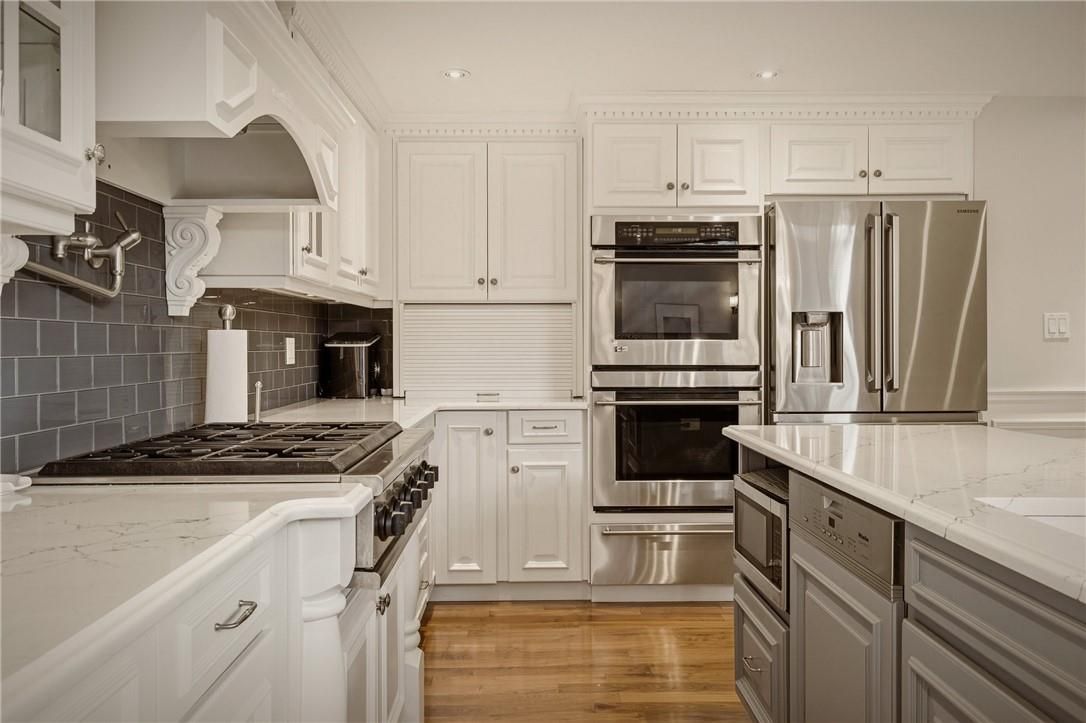 This is the kind of home people wait years for-quietly set along one of hamilton's most distinguished streets, set on an oversized, double-width lot and framed by an exceptional natural backdrop. With the royal botanical gardens quite literally at your doorstep, you're surrounded by lush forest, winding trails, and the beauty of cootes paradise just moments away. The home itself strikes a rare balance between character and contemporary comfort. Original details have been preserved and elevated, while thoughtful renovations have introduced a striking layout designed for modern living. At the centre of it all is a beautifully appointed kitchen with granite finishes, effortlessly connecting to an expansive family room where the dramatic ceiling height and curved wall creates a true sense of space and light. The main living areas feel both refined and welcoming, with detailed millwork, rich hardwood floors, and a statement fireplace anchoring the space. One of the home's most distinctive touches is the elevated library-an architectural feature that adds both character and function, overlooking the family room below. Upstairs, the bedrooms are generously proportioned and filled with natural light. The primary suite offers a walk-through w/i closet that opens to a spa-like ensuite, making everyday living feel effortless. The lower level has been fully finished with versatility in mind, offering an entertainment lounge, additional bedroom, full bathroom with in-floor heating, and a separate exercise area-ideal for growing families or hosting guests. Parking is never a concern here, with a wide driveway accommodating multiple vehicles in addition to a dble garage. All of this is set within the vibrant westdale community, where excellent schools, mcmaster university, and a charming village filled with cafés, dining spots, and everyday amenities,all within walking distance. It's a lifestyle location that's as connected as it is serene. Some photos virtually enhanced. Luxury certified