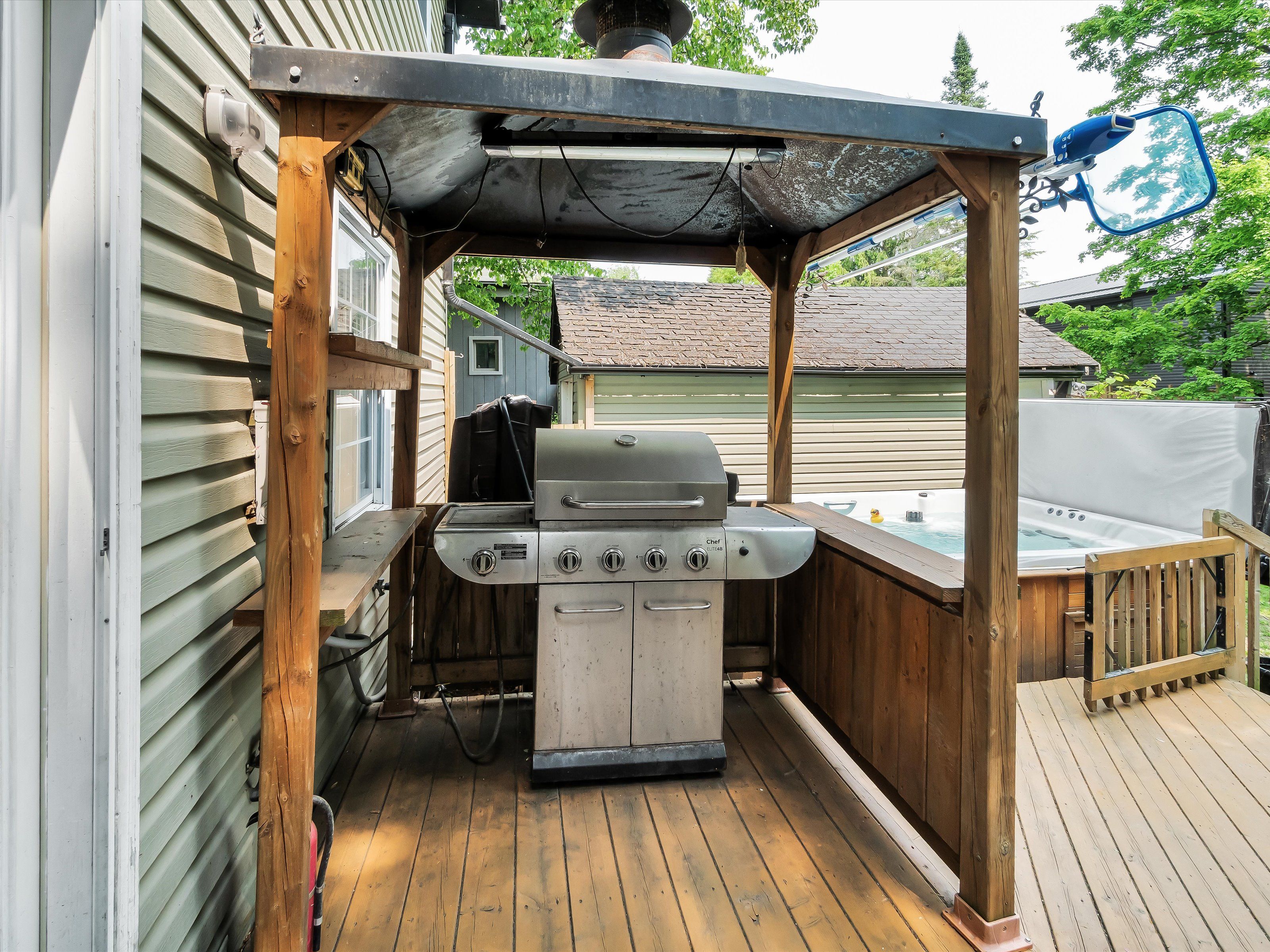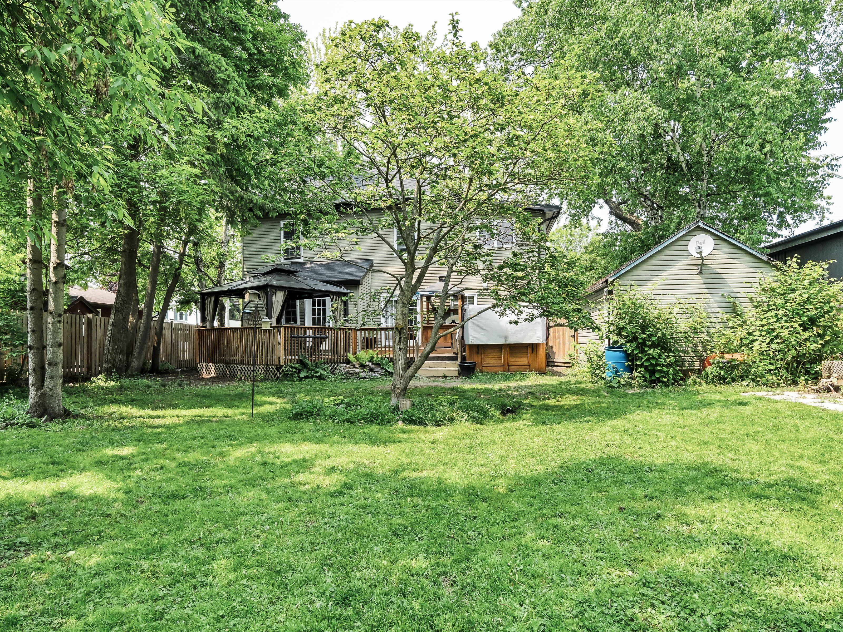 Character filled and spacious 5 bedroom, 2 bathroom home centrally located in the heart of bracebridge within walking distance to almost everything! This large home offers almost 2200 sq. Ft. Of living space and is perfect for large or blended facilities with the potential of a 6th or primary bedroom on the main level. Large semi open concept main floor layout with eat in kitchen, living room, walk in pantry, laundry, 3 piece washroom, family room (or 6th bedroom) and walkout to large cozy front covered porch and rear deck with gazebo. Upper level features 5 bedrooms and 1-4 piece bathroom. Lower level features a finished rec room and unfinished utility and storage room. Rear yard is fully fenced for the kids and pets and features a large deck for summer get togethers and bbq's and a kids treehouse and trampoline. Upgrades include shingles (2024), natural gas furnace (2017) and a/c (2022), washer (2017), dryer (refurbished 2025).