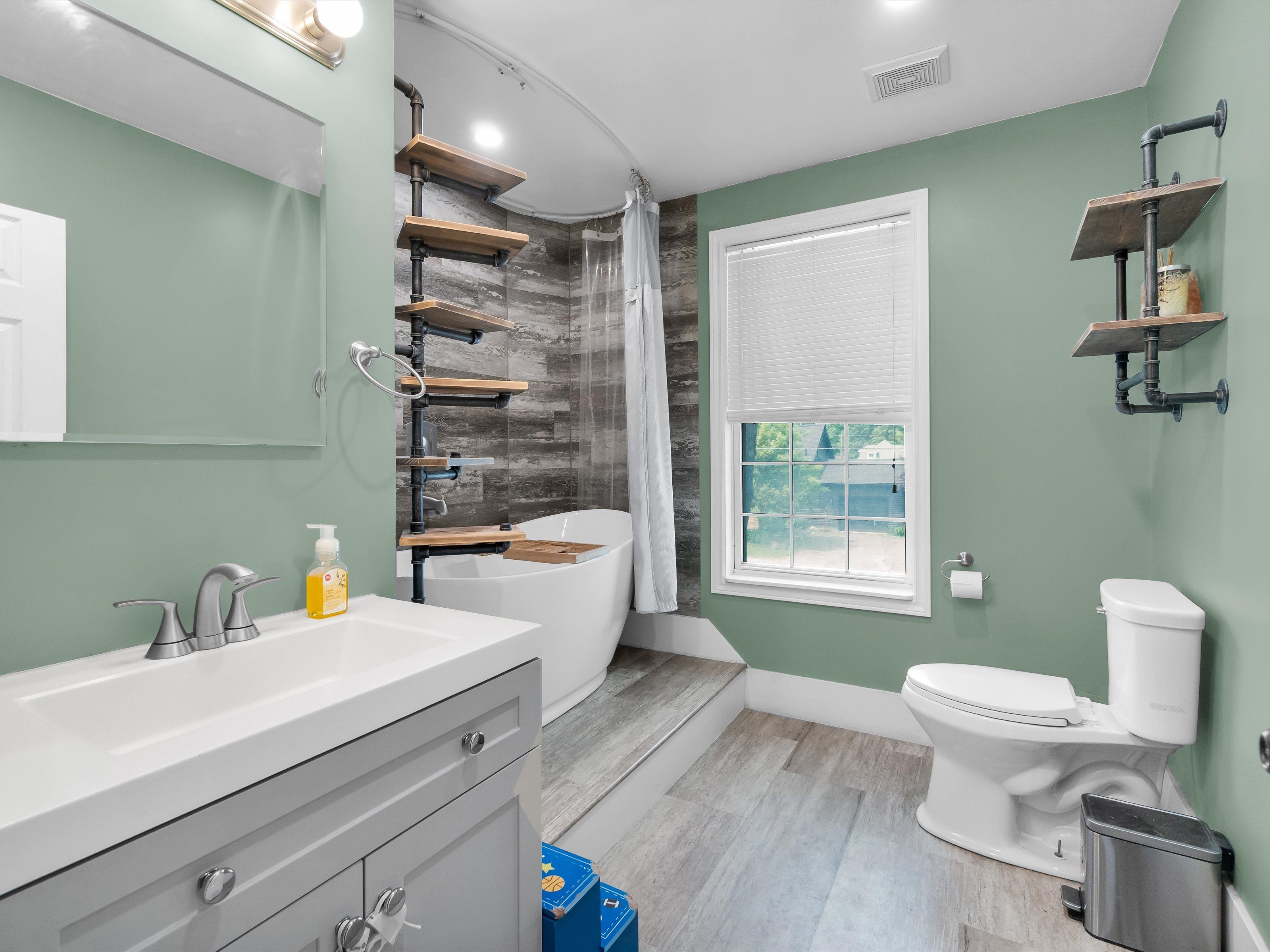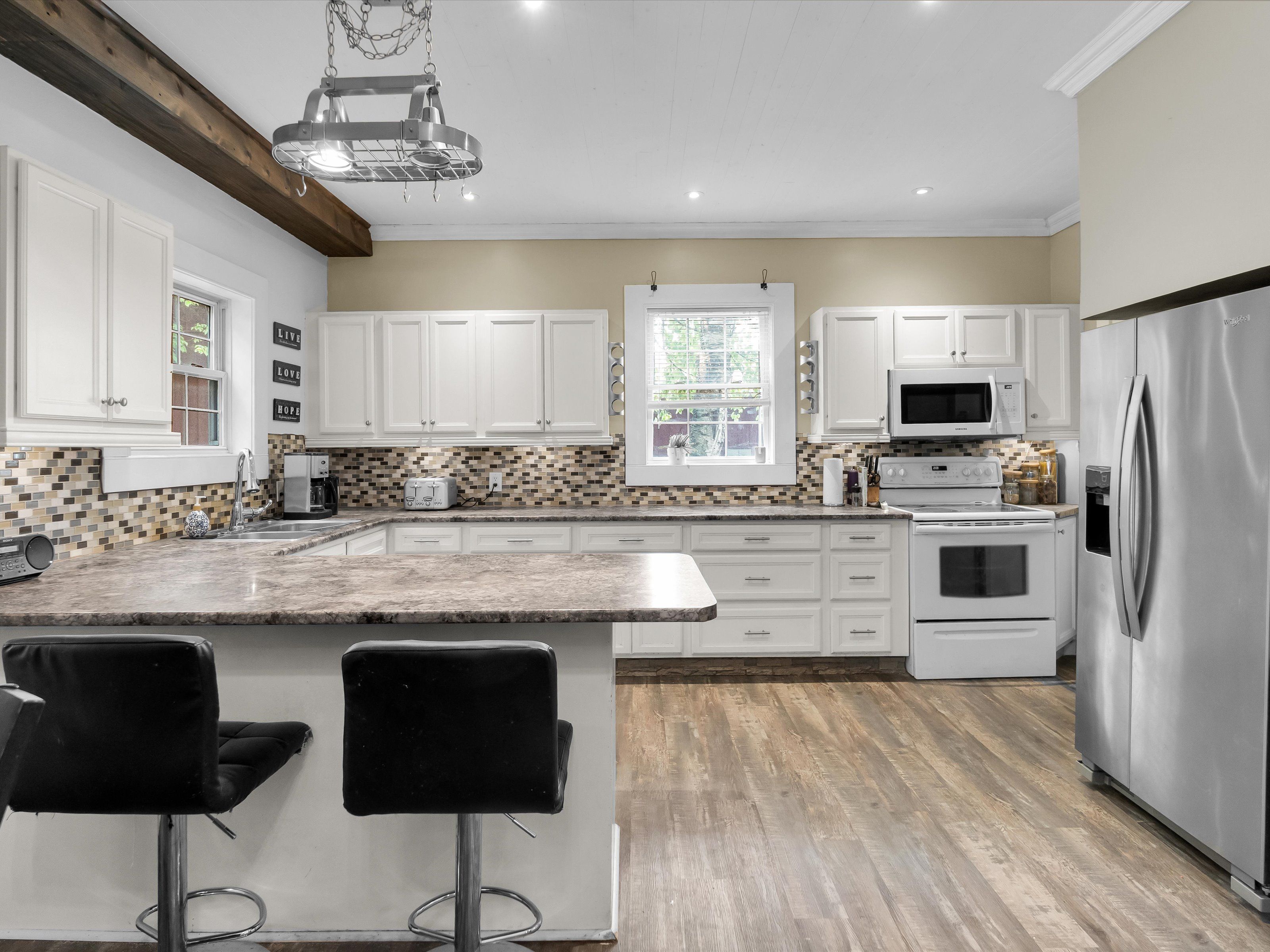 • Recent upgrades include new shingles, furnace, A/C, and modern appliances.