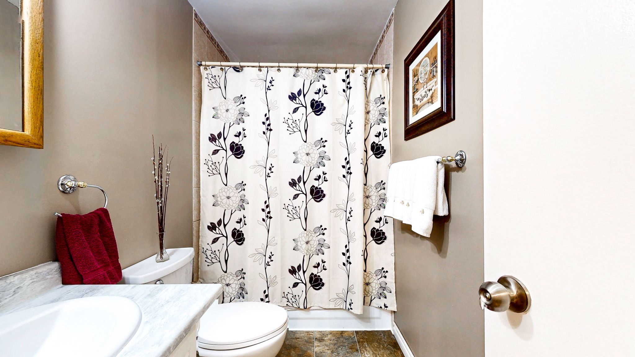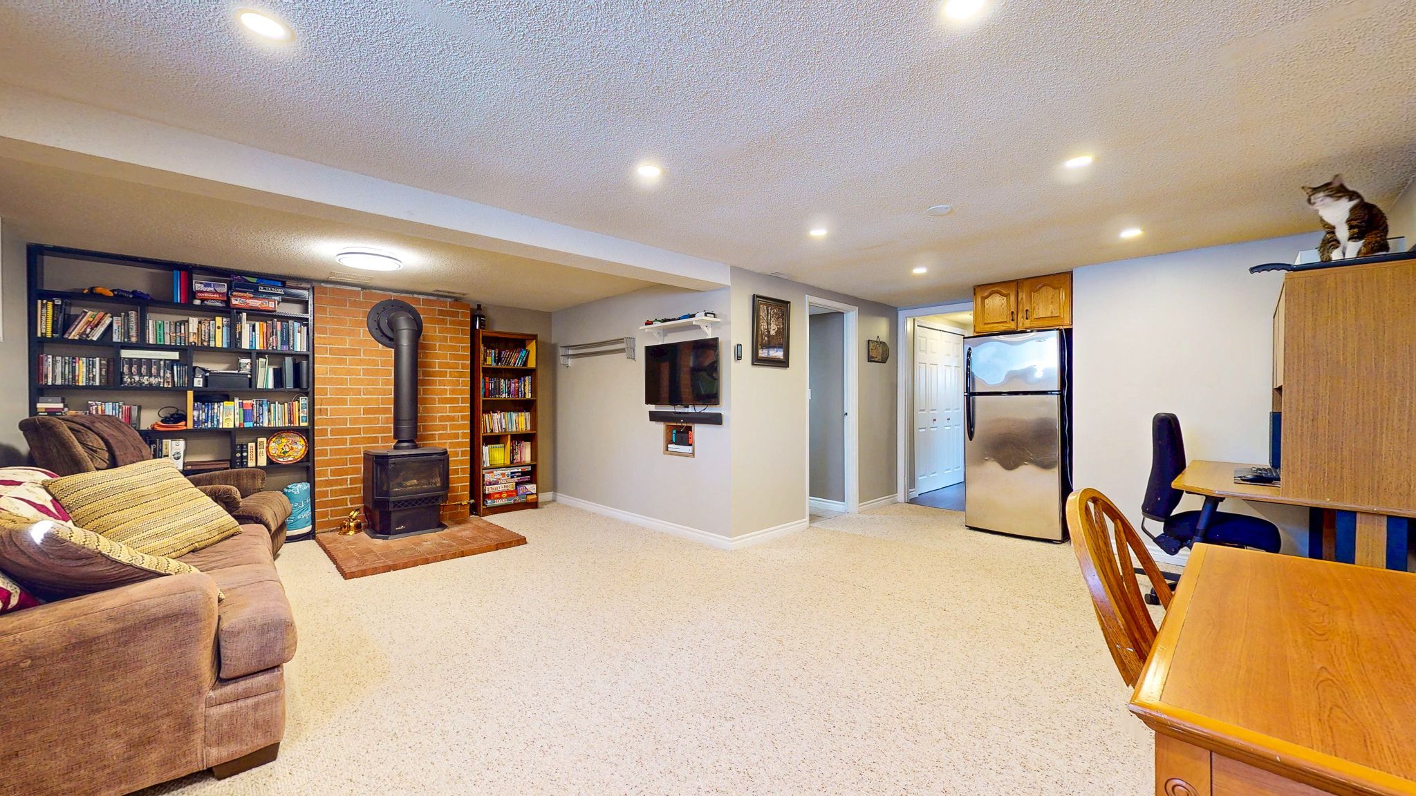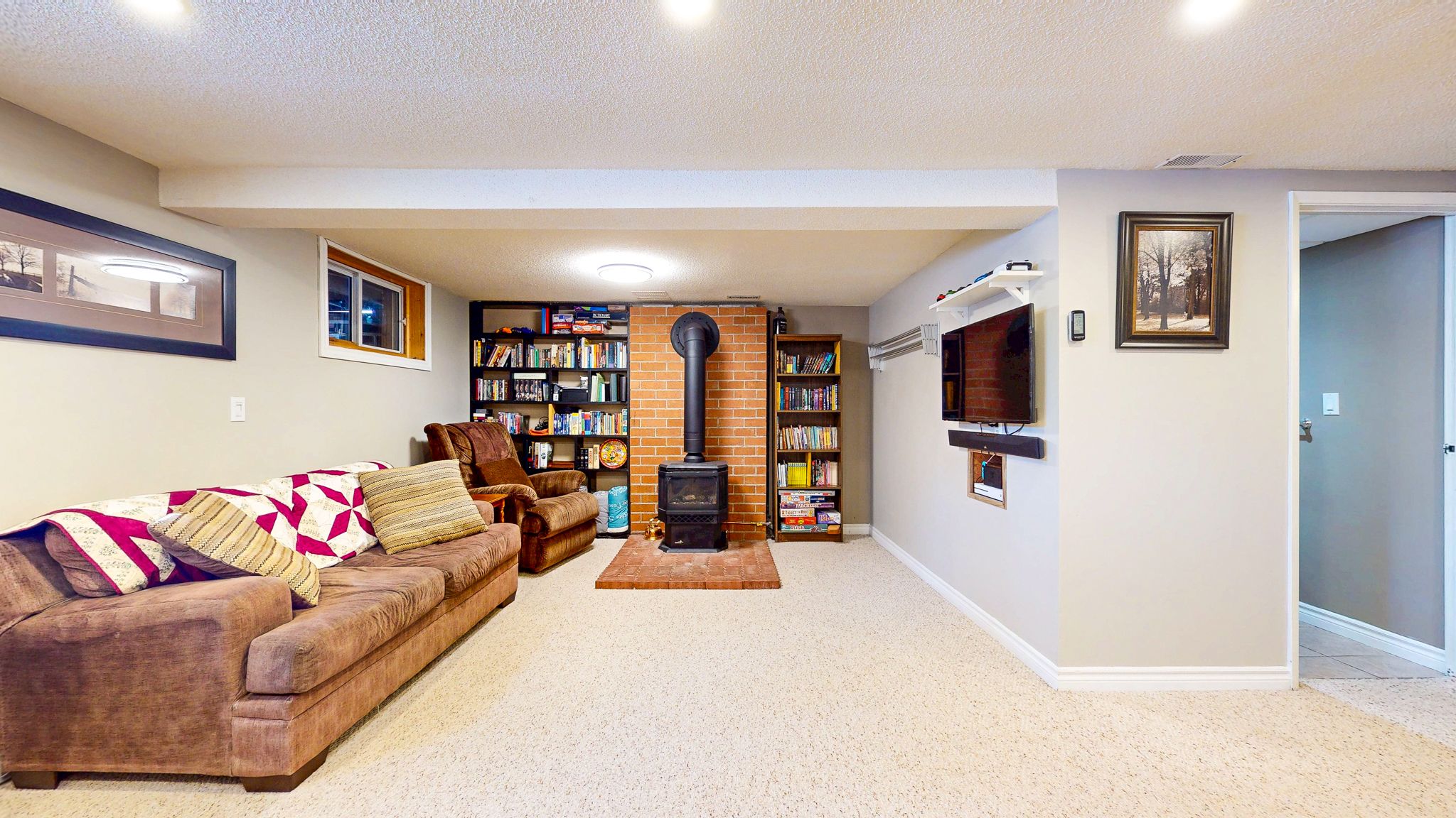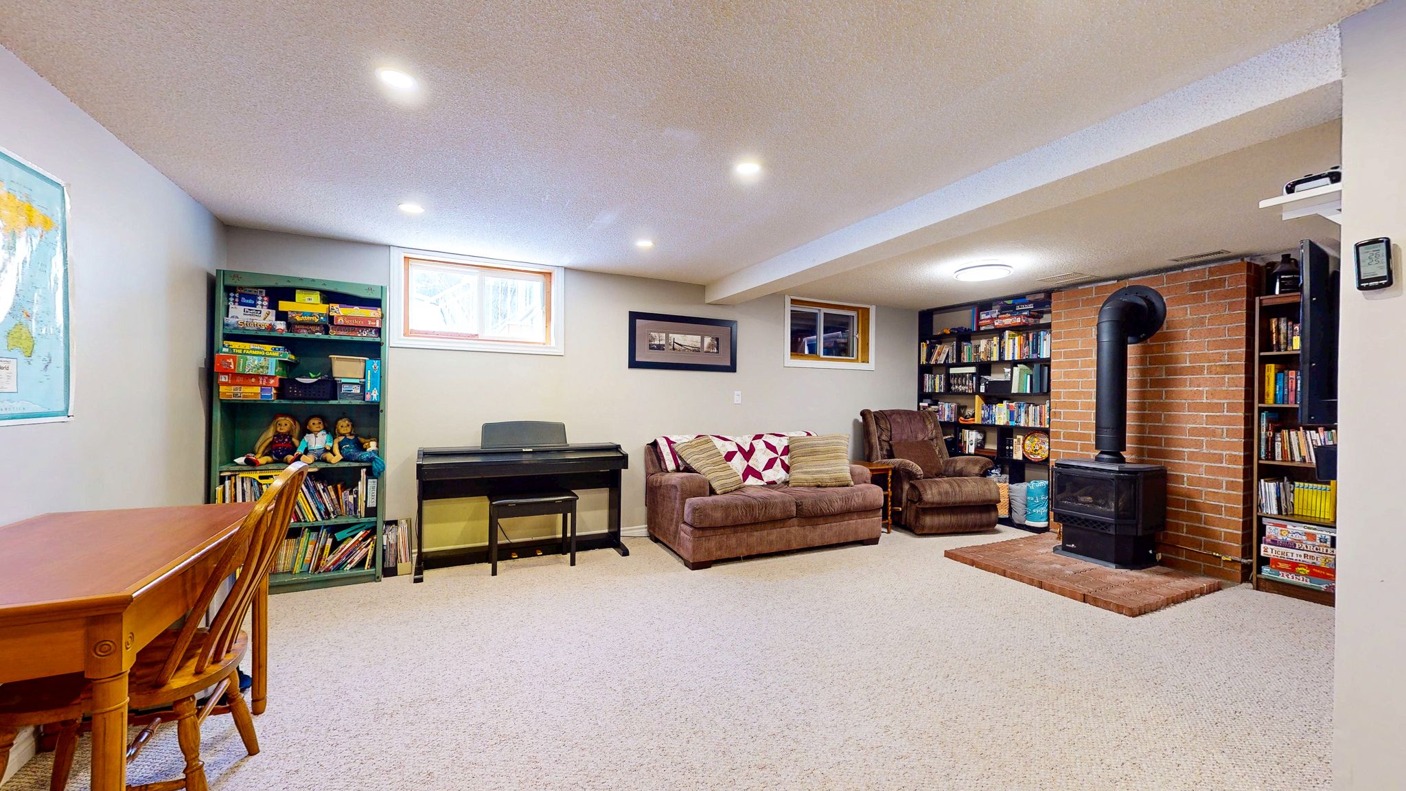 • Finished basement with spacious rec room and cozy gas stove.