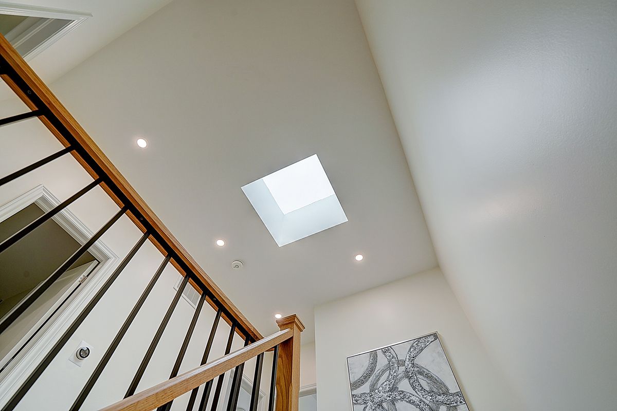 • Bright living space with 9 ft ceilings and a skylight throughout.