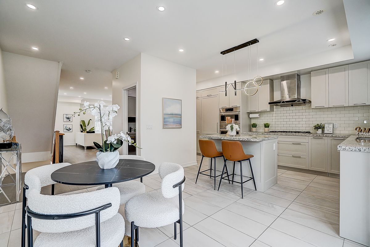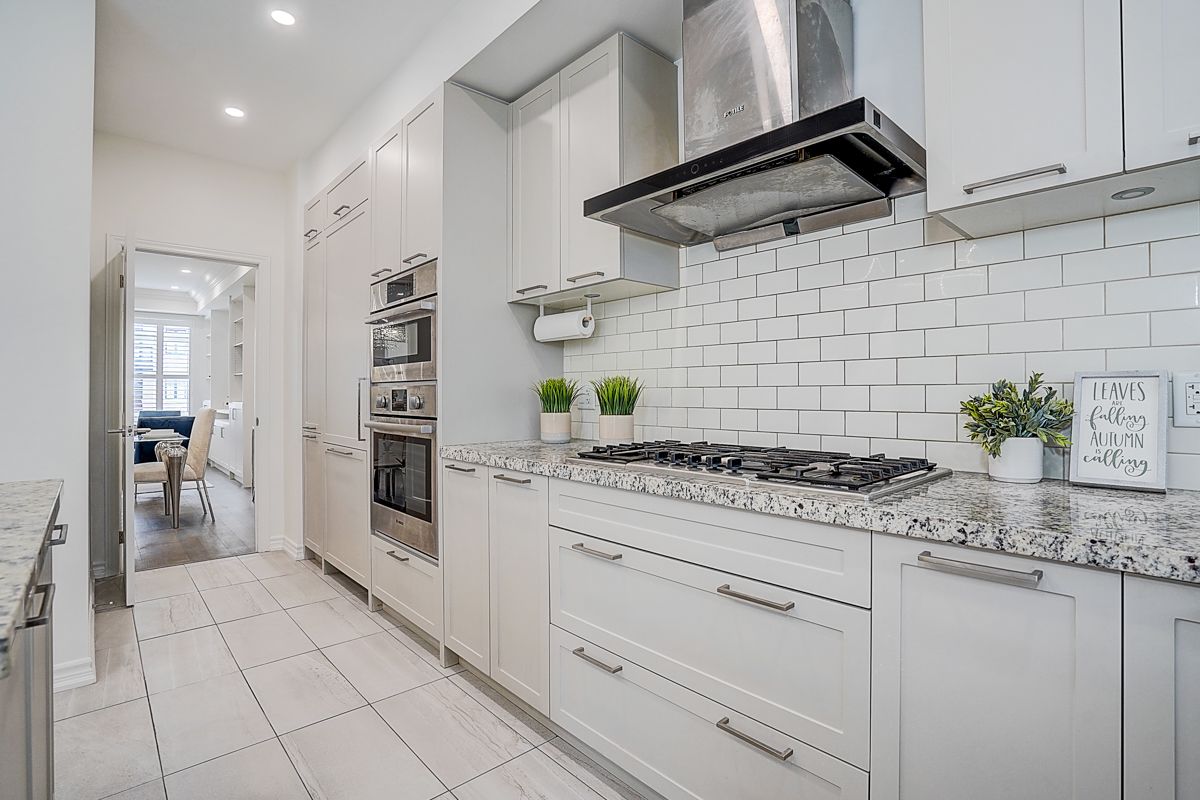 Amazing double car garage w 4 parking spaces luxury freehold th in the heart of downtown markham. Elegant living space with 9 ft ceilings throughout, skylight, upgraded wood floors, smooth ceilings granite kitchen counter top, kitchen island, b/i high end bosch appliances, gas cook top,oak stairs w iron picket handrails, overlooking a spacious breakfast area large enough to use as a formal dining room, with a walk-out to a huge private terrace equipped with a bbq gas line, perfect for entertaining. Premium lot facing to the park, lot of sunshine, finished basement w 3pc bath, big terrace; located in prime unionville with unbeatable convenience-steps to whole foods, icbo, panera bread, bmo, rbc, vip cineplex, top restaurants, shopping and public transit, and minutes to hwy 404/407. Highly coveted school zone including top-ranked unionville hs.