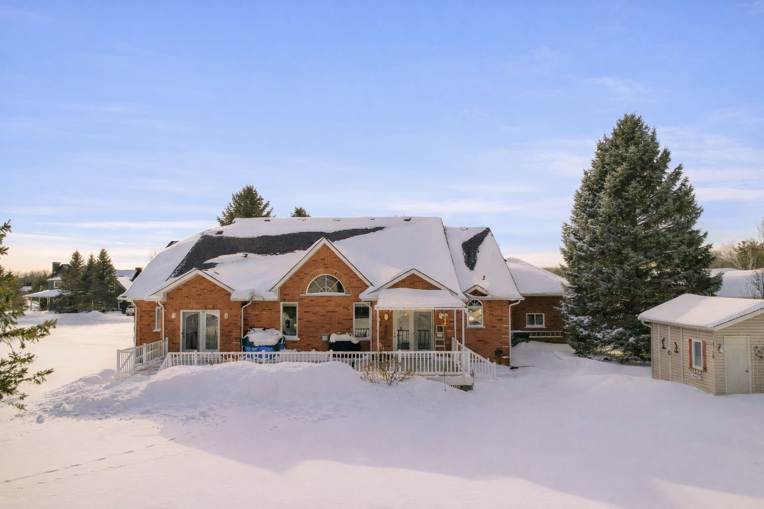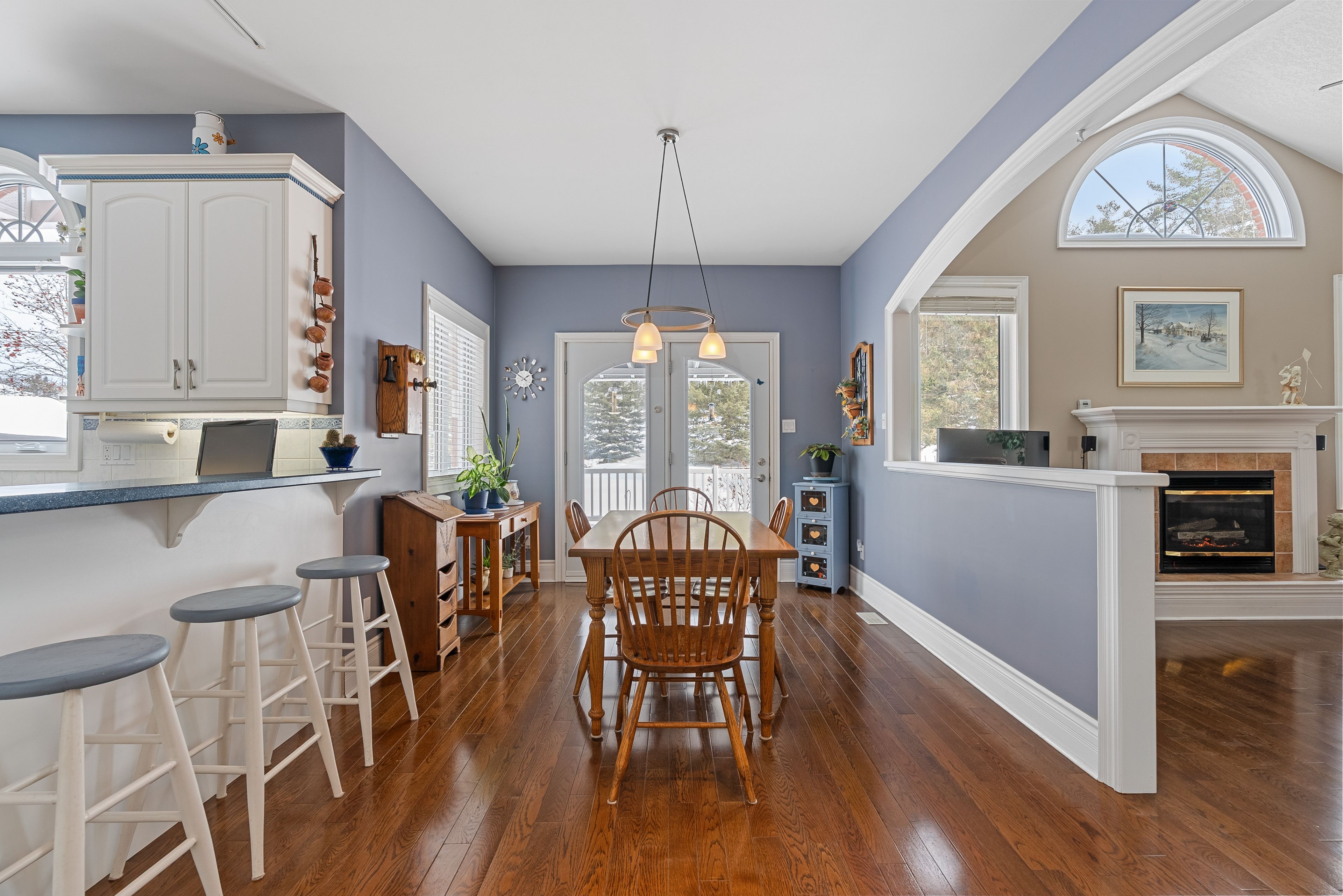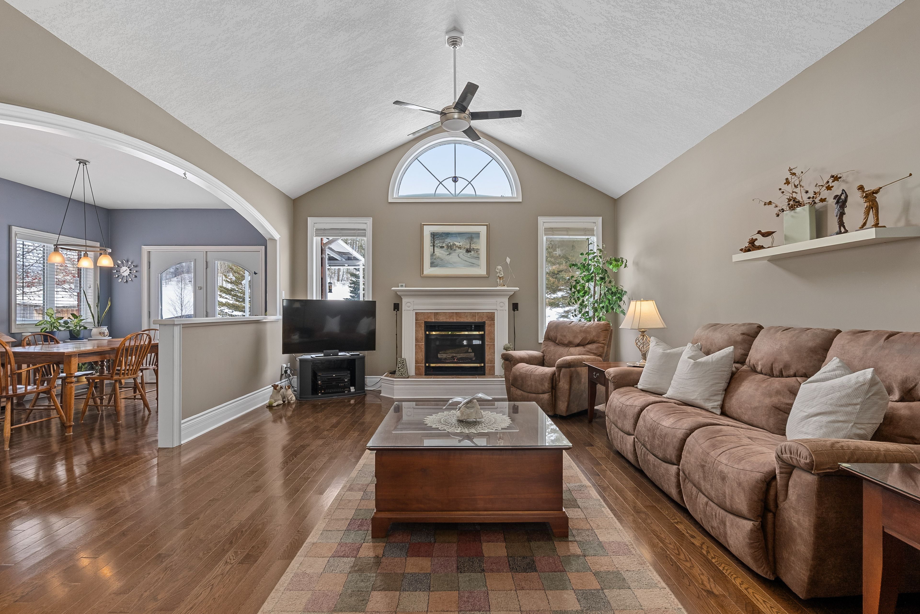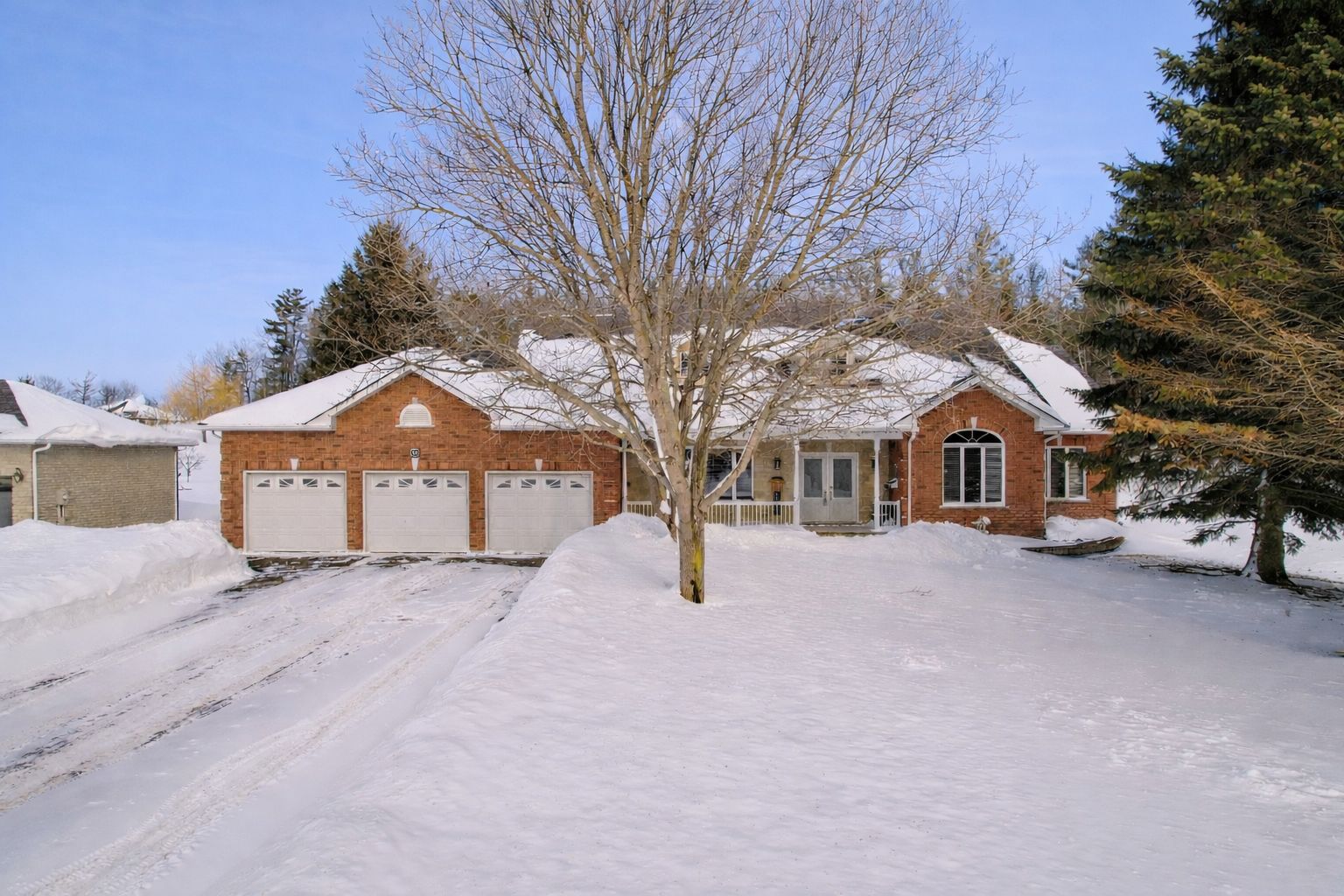 Located in the prestigious wasaga sands community, this sprawling bungalow offers generous living space, a functional layout, and an oversized lot ideal for families and entertaining. Set on a rare double-deep lot, the property features a rolling lawn, mature trees, a firepit area for outdoor gatherings, and an additional storage shed. The main floor is bright and open with large windows, a cathedral ceiling, and a gas fireplace in the great room, creating a comfortable and inviting central living space. The layout includes three plus one bedrooms, providing convenient one-floor living for families and guests. The spacious kitchen offers ample seating and workspace, along with a breakfast area that opens to the expansive back deck covered with a large awning. The primary bedroom and ensuite also walk out to the back deck. A large, separate formal dining room with a picture window provides an ideal space for hosting meals or could be used as additional living space. The fully finished basement adds significant space, including a large recreation room, dedicated gym area, bar, a bedroom, bathroom, office area, and ample storage-perfect for entertaining, extended family and guests, and additional workspace. The basement also offers direct access to both the backyard and the garage. For ease of living, the triple car garage features interior entry to the mudroom, walk-down access to the basement, and plenty of additional parking in the front driveway. Thoughtfully built in 2000 and meticulously maintained by the same family, this home is a fabulous option for someone seeking space, comfort, and flexibility in a quiet, established neighbourhood close to trails, beaches, and local amenities.