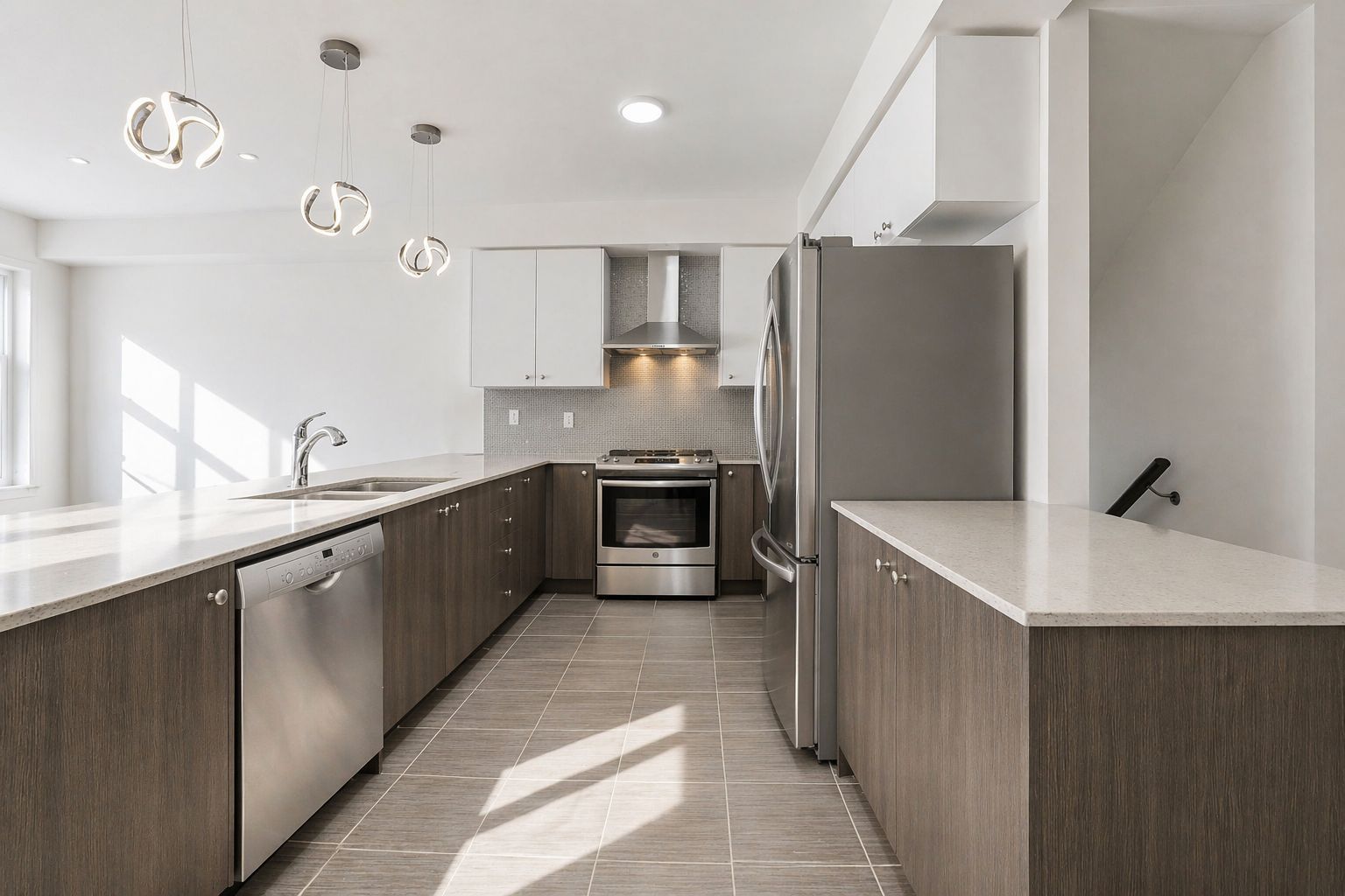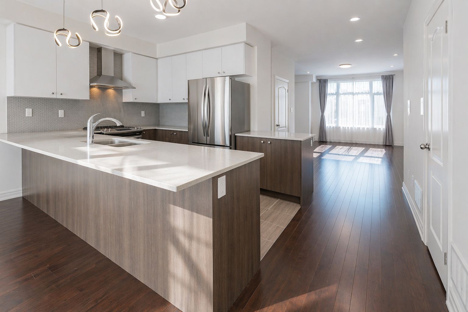 • Modern open concept kitchen with stylish pot lights.